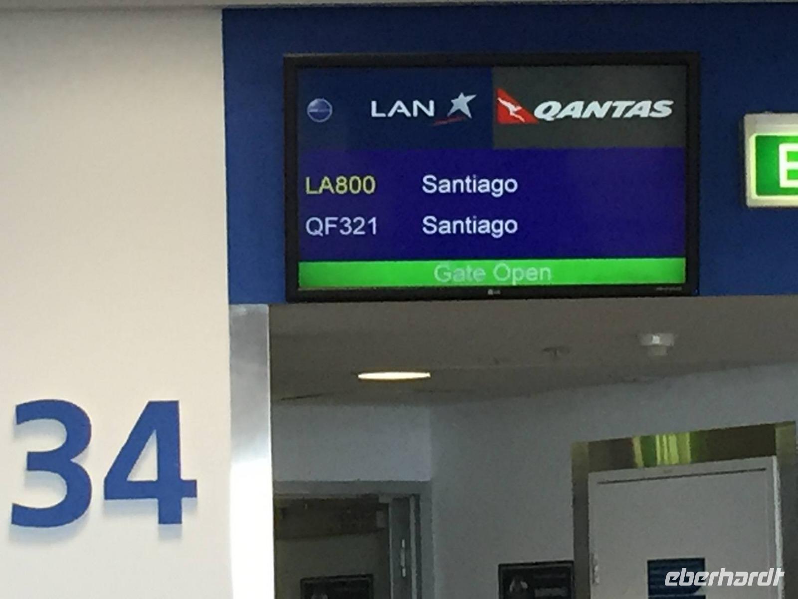 Nach dem Frühstück fahren wir zum Flughafen, verabschiedeten uns von Uli, die uns Sydney und seine Umgebung toll und allumfassend in kürzester Zeit in unsere Herzen verewigt hat und waren nun etwas aufgeregt - unser längster Flug und Reisetag stand bevor. Auf dem Ticket stehen 16,5 Flugstunden. Nächster Halt Santiago de Chile!