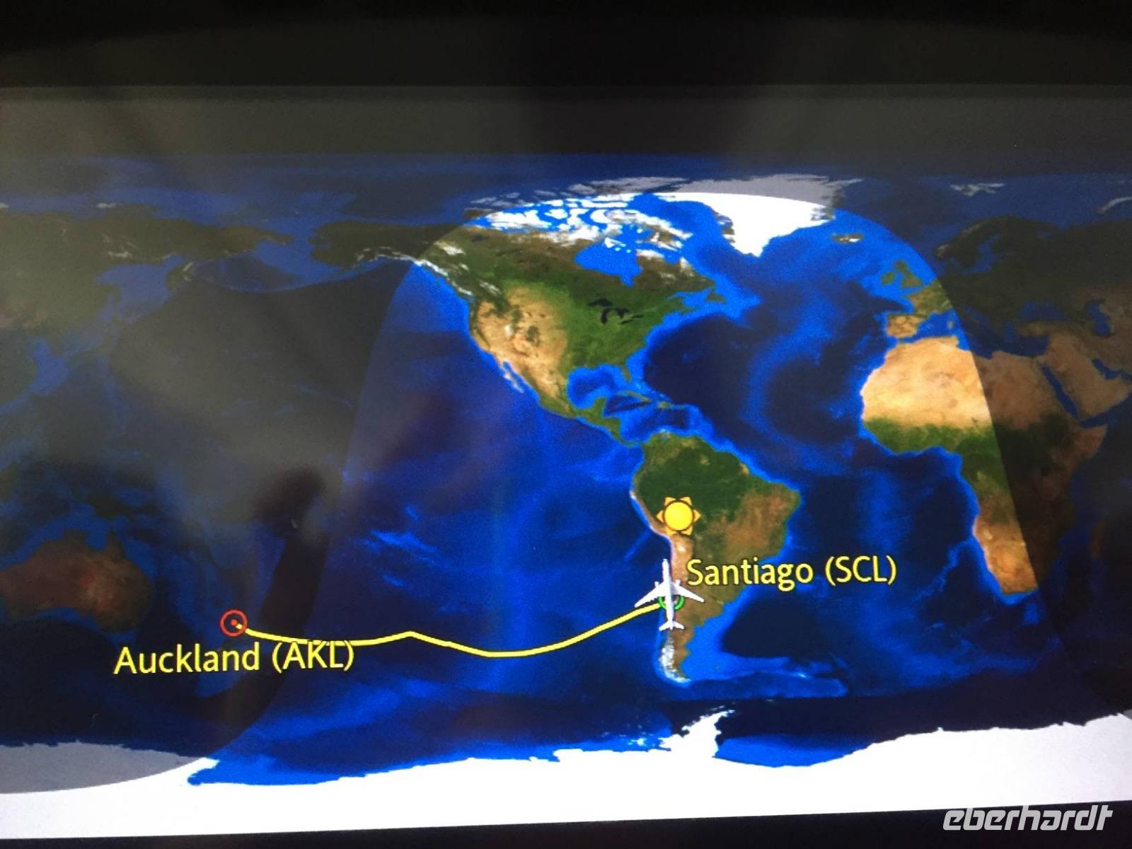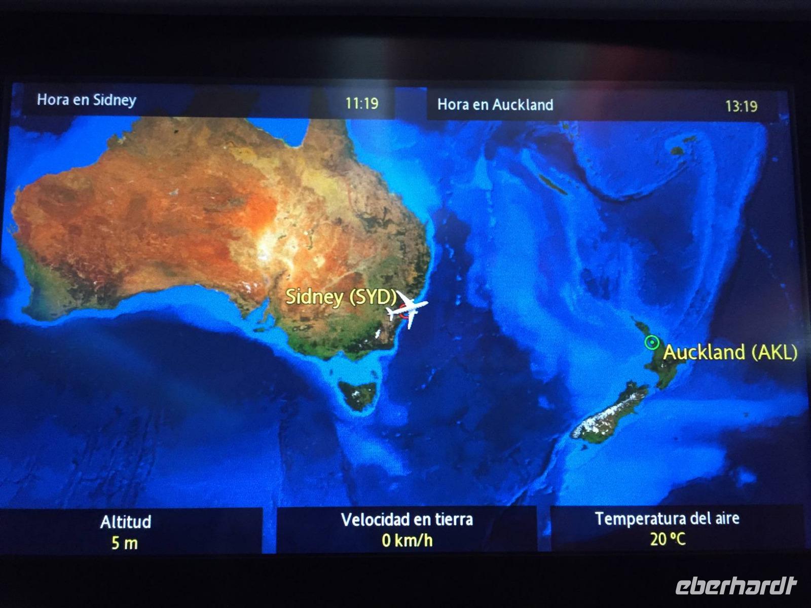 Doch zunächst landeten wir nach knapp drei Stunden erst einmal in Neuseeland, genauer in Auckland. Die 90 Minuten Aufenthalt wurden wir gut beschäftigt: wir verließen den Flieger, Paßkontrolle, Handgepäck und wir wurden durchleuchtet und dann ging es weiter ... mit demselben Flieger - auf demselben Platz. Die ersten 4,5 Stunden waren also geschafft?