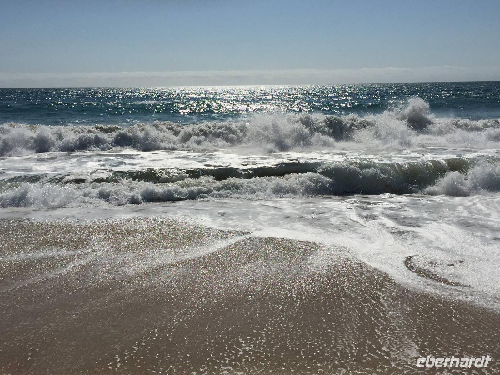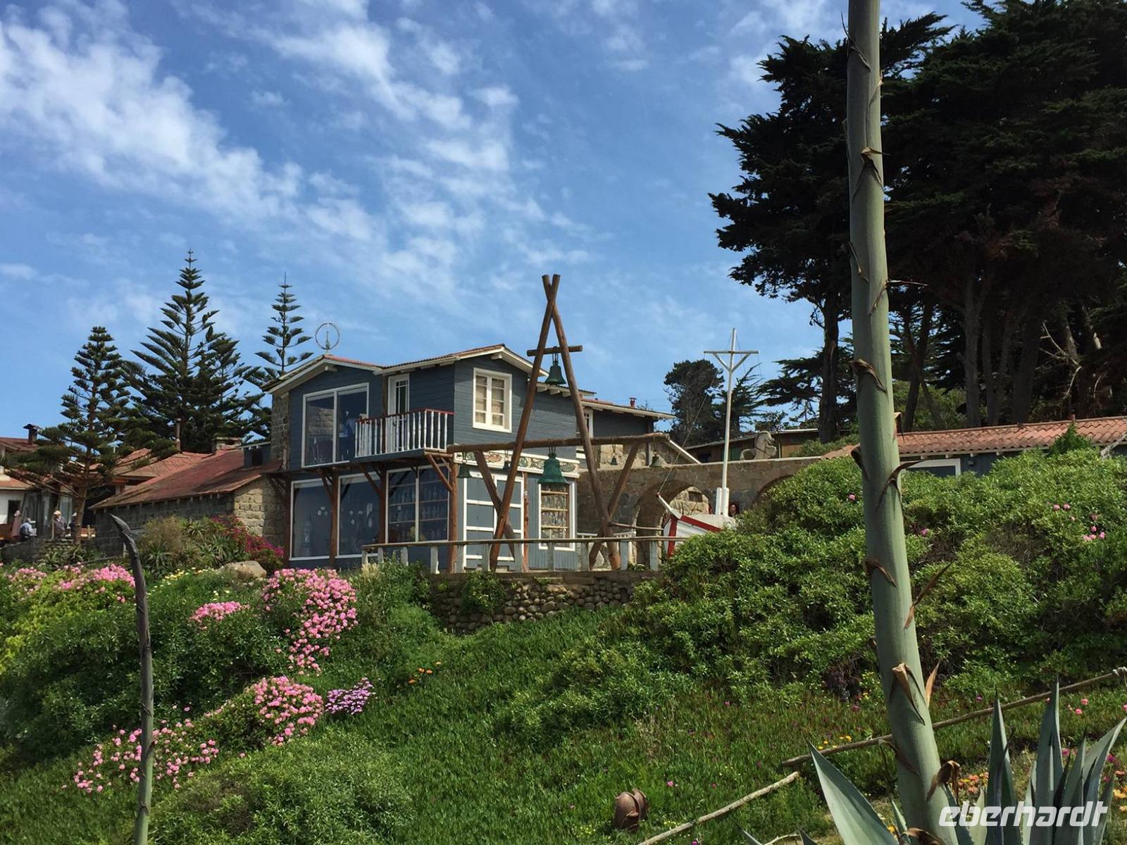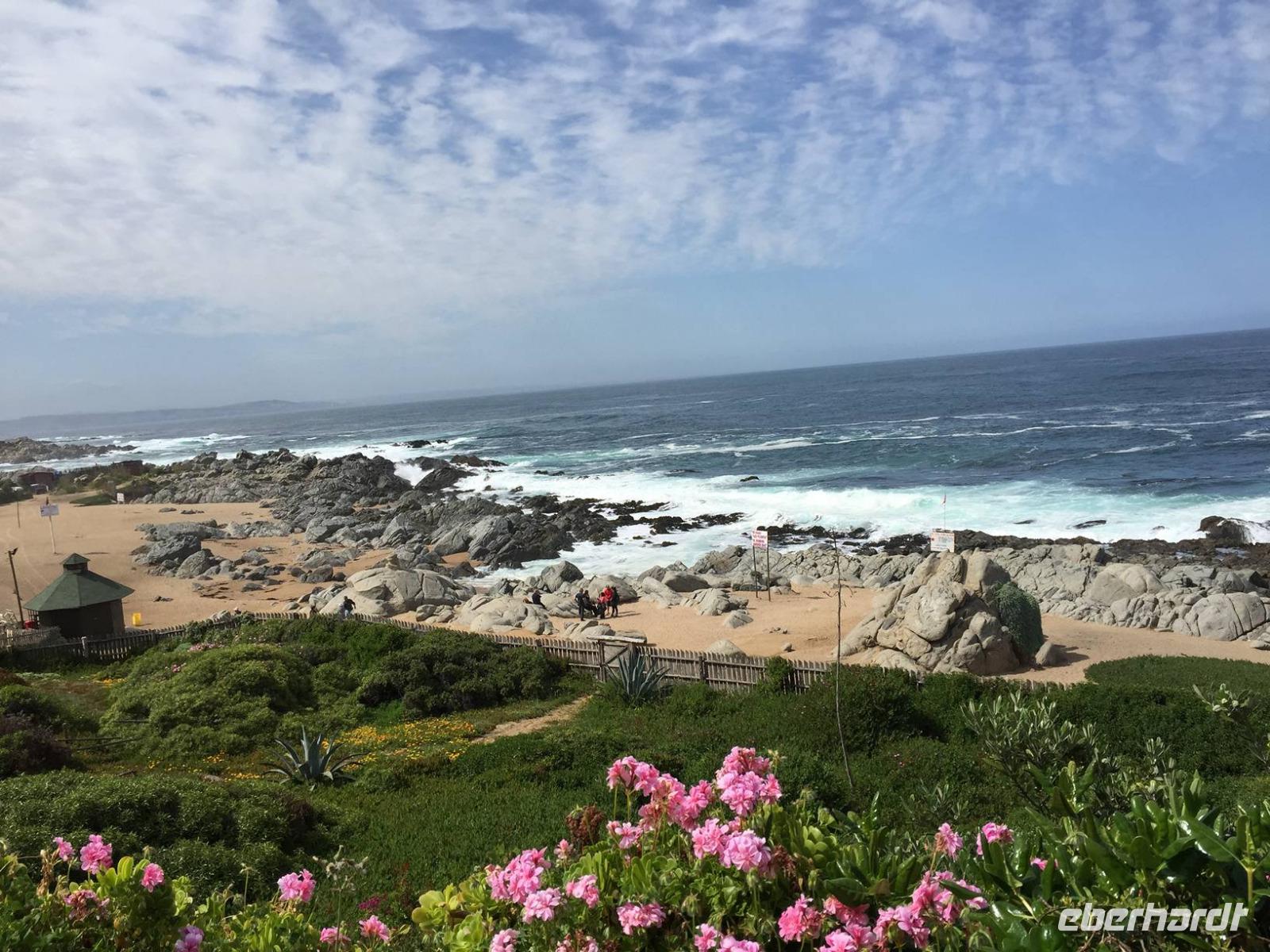 On allen Räumen aus den herrlichen Blick über den blühenden Garten zum Meer. Danach spazierten wir zum Strand und hielten unsere Füße in den Pazifik.