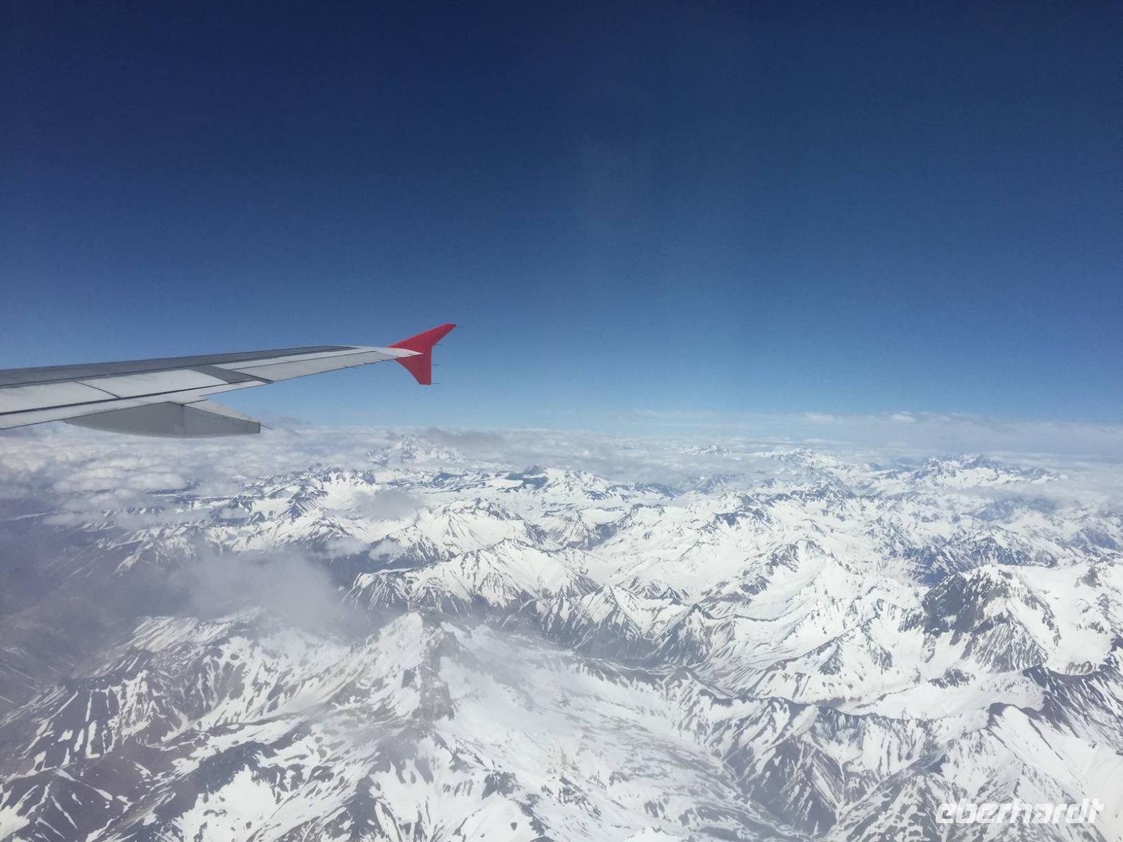 Weitere 12 Stunden später sahen wir unter uns die Anden und erreichten damit Chile. Ortszeit 14:00 Uhr ... Um 11:30 Uhr sind wir in Sydney losgeflogen. So erleben wir den 08.11.2015 quasi doppelt.