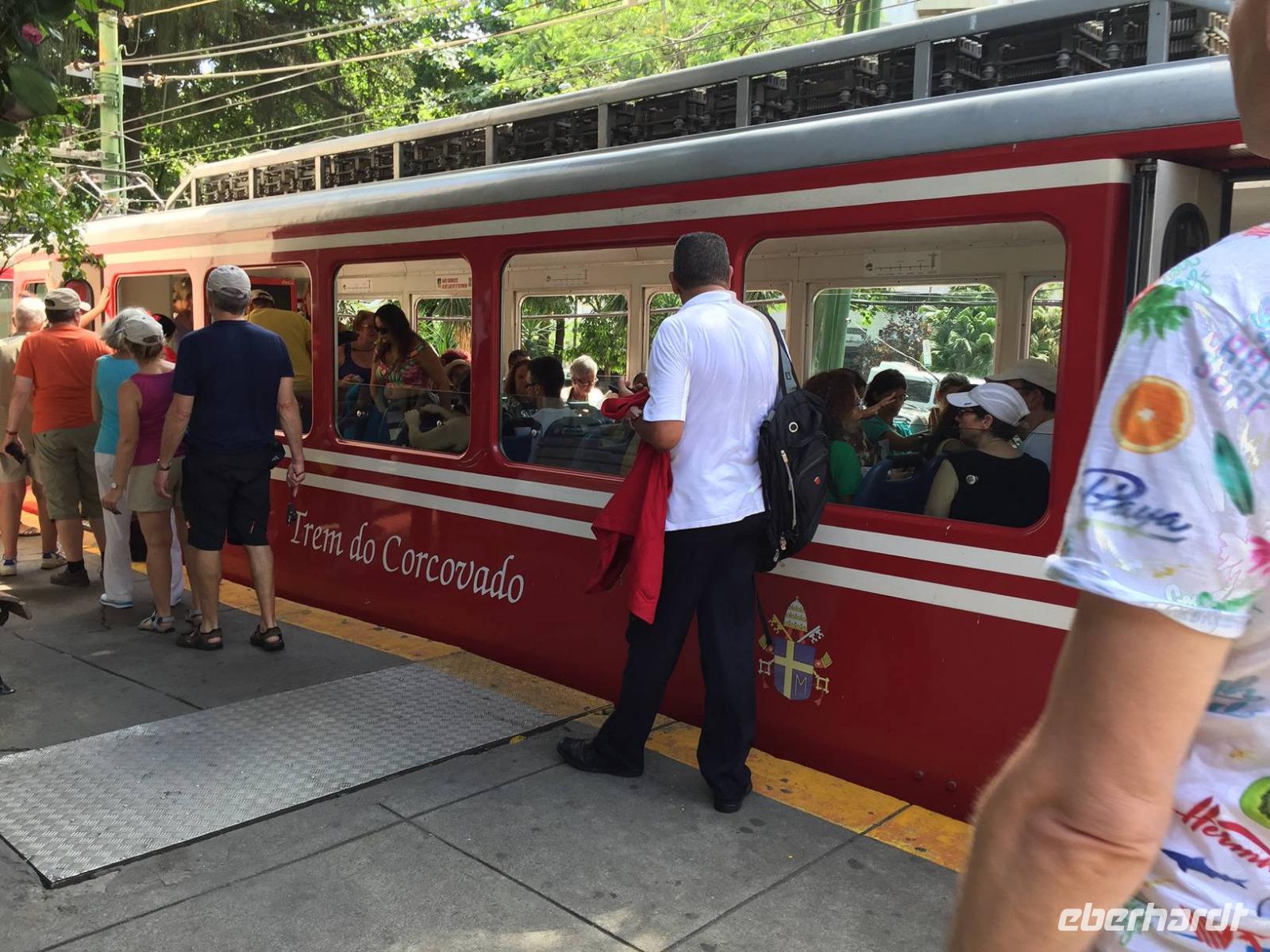 Einige von uns genossen noch vor dem Frühstück ein Bad im Atlantik an der zur frühen Morgenstunde leeren Copacabana. Nach dem Frühstück starteten wir hoffungsvoll unser heutiges Programm - hoch auf den Zuckerhut und auf den Corcovado mit der berühmten Christusstatue wollen wir, mal sehen, ob uns das Wetter wohlgesonnen ist. Carlos begrüßt uns musikalisch mit „Guten Morgen Sonnenschein" und das als Brasilianer mit Schweizer Dialekt. Da kann nur alles gut werden?