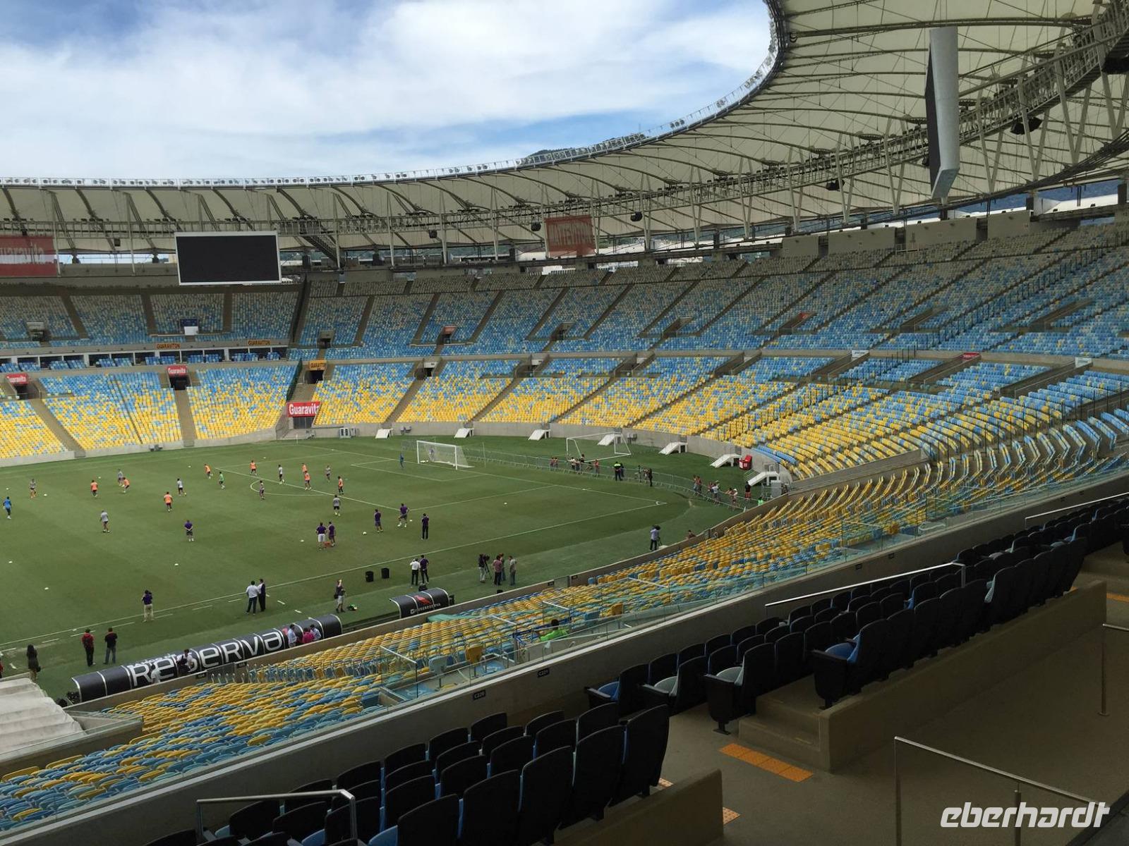 das Fußballstadion „Maracana" seit 2014 nennt. Wir machen zunächst einen Fotostopp auf der alten Seite des Stadions und alle sind schon etwas enttäuscht, da man was anderes erwartet hat ?. Wieder einsteigen und dann auf der anderen Seite halten, aussteigen ... und Überraschung: wir haben Eintrittskarten und dürfen rein! Wir sehen den Siegerball, die Umkleide, sitzen auf der Pressetribüne und betreten natürlich den heiligen Rasen, wo unsere Jungs am 13.Juli 2014 vor knapp 75.000 Zuschauern im Stadion den WM-Titel holten. Nach dieser tollen Überraschung fahren wir zum Flughafen, verabschieden uns mit etwas Wehmut von unserem Carlos und checken ein zum Nachtflug nach Miami.