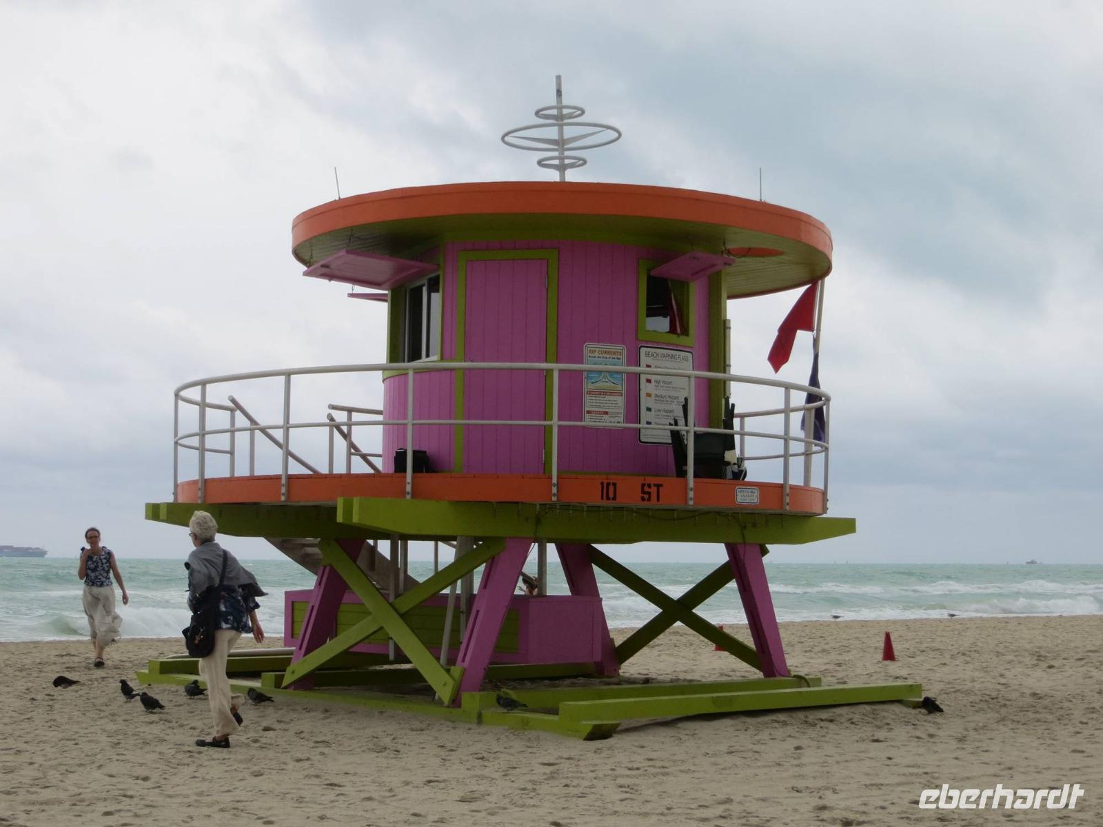 Nach 9 Stunden Flug erreichen wir am sehr frühen Morgen Miami. Draußen stürmt, regnet und donnert es. Die Stimmung ist bei der Landung bei uns und allen Passagieren gedrückt, da leider kurz vor der Ankunft ein Fluggast verstarb. Geduldig warten wir weit über eine Stunde auf dem Rollfeld, bis alle polizeilichen Untersuchungen abgeschlossen sind, dann dürfen wir den Flieger verlassen. Der Flughafen ist nahezu menschenleer um diese Uhrzeit. Wir werden gebeten, die Einreisekontrolle zunächst am Automaten zu absolvieren, werden wir aber dann doch alle an die Schalter gebeten. Es geht doch relativ zügig und ohne Komplikation. Draußen wartet schon Marita auf uns, die schon von dem Unglück gehört hatte. Wir fahren direkt zum wunderschönen „Grand Beach Hotel" direkt am Miami Beach, beziehen unsere größenmäßig sehr großzügigen Zimmer, alles in weiß möbliert und sinken für 1-2 Stunden in die sehr bequemen Betten. Bevor wir uns um 10:00 Uhr wieder mit Marita treffen, stärken wir uns bei einem wirklich leckeren Frühstück. Als wir dann unsere Stadtrundfahrt starten stürmt es draußen immer noch und es ist ungewöhnlich regnerisch für diese Jahreszeit. Wir fahren u.a. zum Miami South Beach, bummeln über den berühmten Ocean Drive, besuchen im Kubanischen Viertel einen Zigarrenshop und schauen den alten Herrn beim Dominospielen zu .... Danach verlassen wir Miami und fahren in Richtung Cap Cavaneral. Wir übernachten heute im „Doubeltree by Hilton" Hotel am Cocoa Beach, denn morgen wollen wir zur NASA!