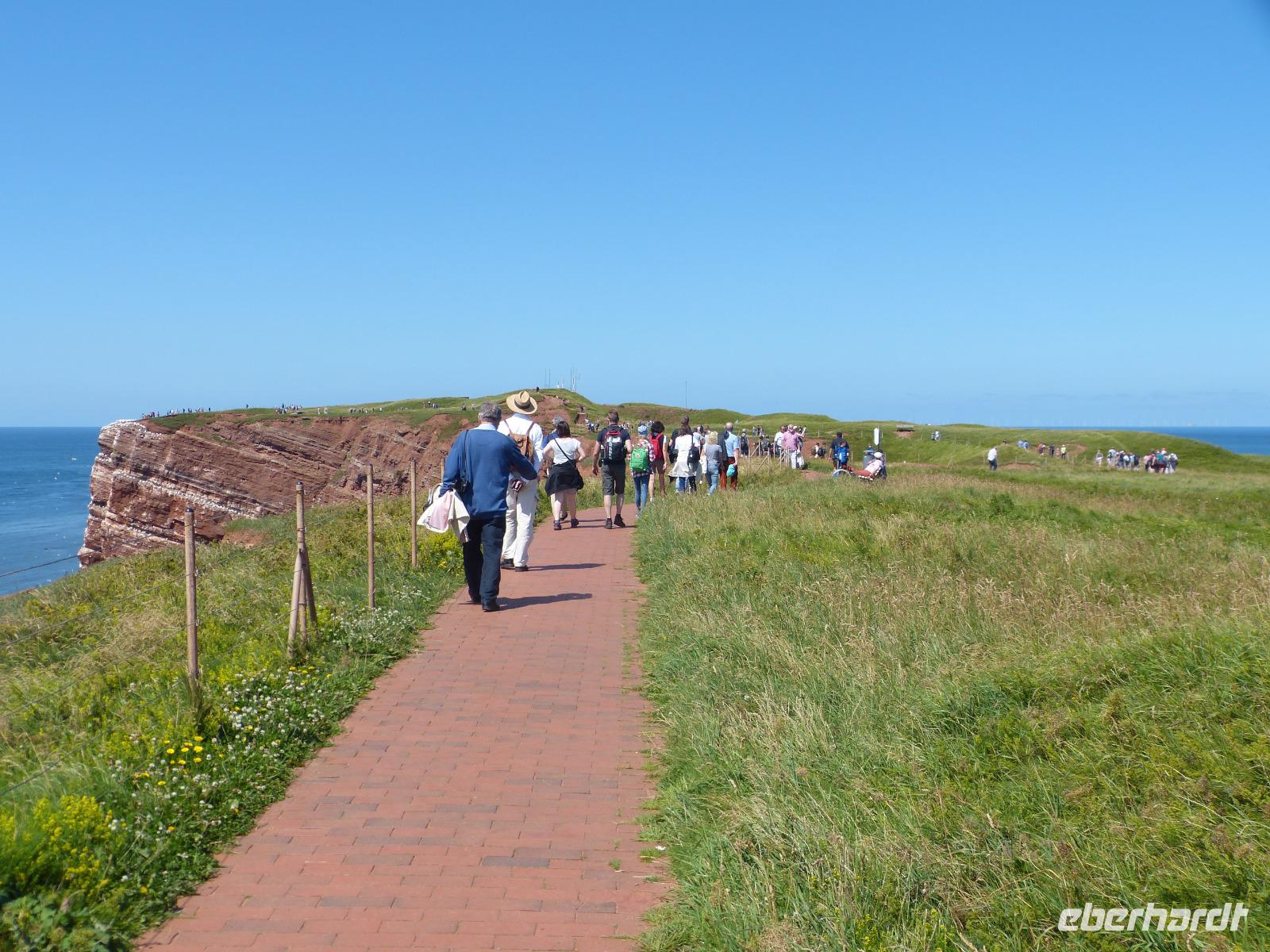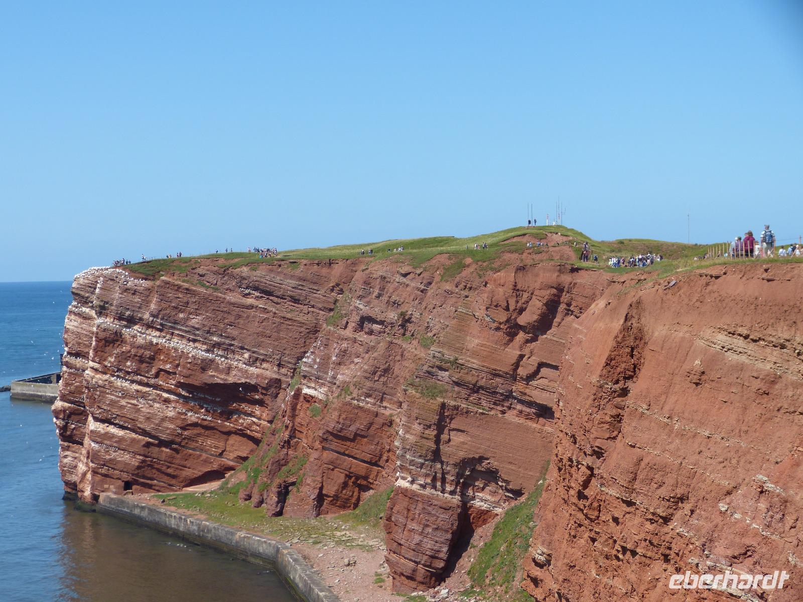 Einige Gäste hatten sich für eine Dünenwanderung mit Robbenbeobachtung interessiert. Der Rest der Gruppe erkundete auf der Hauptinsel das Oberland mit dem berühmten Klippenrandweg. An der 48 m hohen „Langen Anna" vorbei, kann man über 2000 Brutpaare der Trottellumme auf schmalen Felsabsätzen in den Lummenfelsen beobachten.