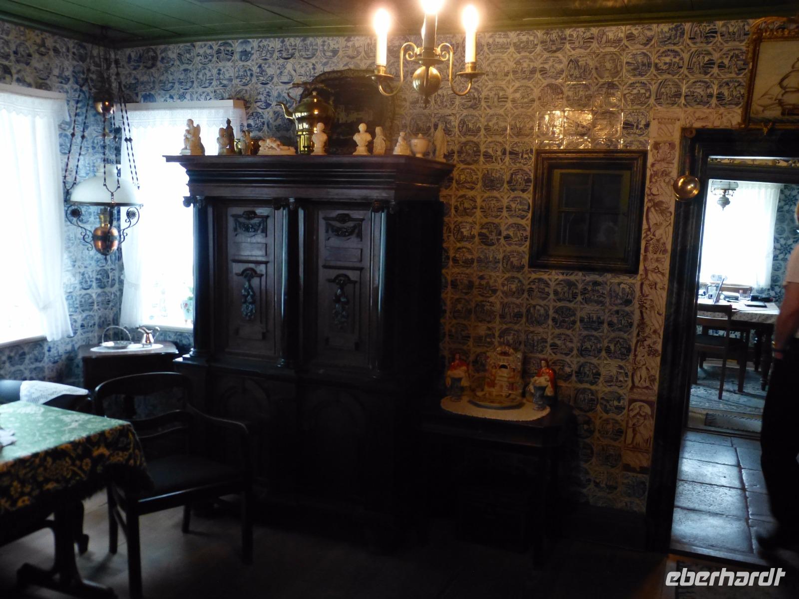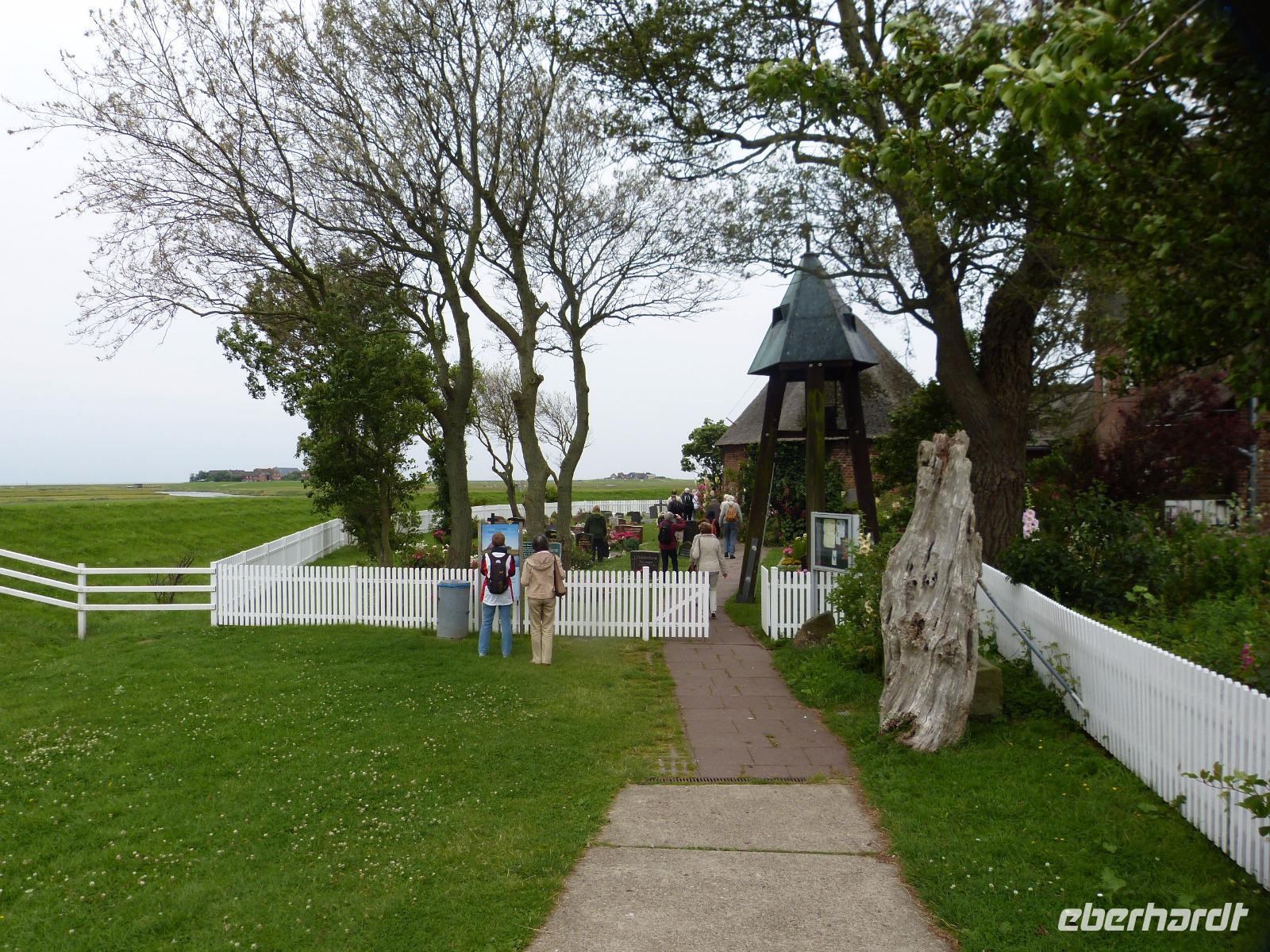 Im Hafen warteten schon 2 Kutschen auf uns und wir fuhren zunächst zur Kirchwarft. Warft ist die Erhöhung einer Hallig, auf der Wohnhäuser stehen und die immer wieder den kommenden Fluten trotzen. Nach Besichtigung der Johanniskirche und dem dazugehörigen Friedhof fuhren wir weiter zur Hanswarft. Dort besuchten wir das Sturmflutkino und sahen in einem Film, welche Naturgewalten von Wasser und Sturm ausgehen können. Auch der Königspesel, eine Friesenstube aus dem 18. Jahrhundert mit vielen alten Möbeln vermittelte uns die Wohnkultur der Seefahrer.