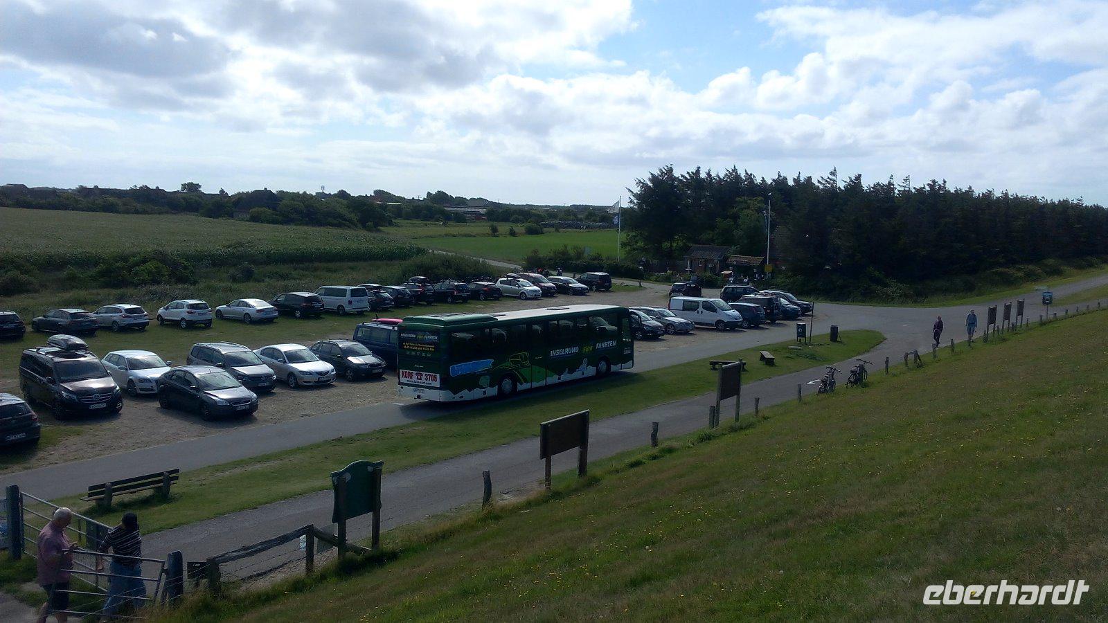 11 km langen Damm zur Insel Rømø, um von hieraus mit der Fähre nach List auf Sylt zu kommen. Schon von der Fähre aus haben wir einen Blick auf den "Ellenbogen" bevor wir in List anlegen. Von hieraus beginnen wir unsere Rundfahrt. Wir fahren mit unserem Bus durch das Listland, ein Naturschutzgebiet mit großen Dünen auf denen wir die blühende Heide bewundern. Weiter führt uns unsere Fahrt fast durch die gesamte Insel. Wir durchqueren erst einmal Westerland um zur Düne-Rantum zu gelangen. Hier planen wir einen kurzen Stopp und spazieren hoch auf die Düne und haben einen schönen Blick auf den Strand. Danach fahren wir zurück in das Nordseeheilbad Westerland, dem Hauptort von Sylt. Wir flanieren die Friedrichstraße, den Boulevard mit vielen Geschäften entlang und lassen uns auch den frischen Fisch munden. Die Insel hat noch mehr zu bieten und durch eines der schönsten Orte wollten wir spazieren. Aber leider war der Ort für uns gesperrt. Es ist Keitum, früher der Hauptort auf Sylt. Einen letzten Stopp unserer Rundfahrt widmen wir List, der nördlichsten Gemeinde Deutschlands, bevor wir wieder auf die Fähre gehen. Wir haben Zeit den Ort zu erkunden und auch bei Gosch die Fischbrötchen zu probieren. Gegen 17.00 Uhr verlassen wir wiederum mit der Autofähre die Insel. Herr Erichsen überrascht uns noch mit einen Abstecher zur Sandbank von Rømø. Problemlos können wir mit dem Bus diese Fläche befahren. Für uns ist es ein Erlebnis. Ein sehr schöner Tag und die erste Begegnung mit einer Insel in Nordfriesland gehen zu Ende.