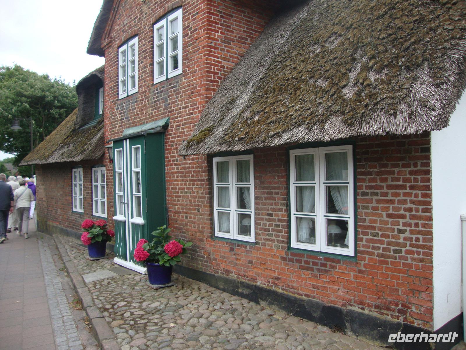 Zum Sommeranfang besuchten wir die "friesische Karibik", Föhr. Die Insel erreicht man mit der Fähre von Dagebüll nach Föhr in rund 50 Minuten. Am Hafen stand der Bus zur Inselrundfahrt bereit. Die Rundfahrt ist immer ein besonderes Erlebnis. Leider regnete es den ganzen Vormittag. In Süderende besuchten wir die Kirche und auch die mit einem Lebenslauf versehenen Grabsteine. Am Deich war der Regen so heftig, wir beschlossen nicht auszusteigen. Unser Reiseleiter berichtete umfangreich über das Leben auf Föhr. Nach zwei Stunden endete unsere interessante rundreise am Hafen. Gegen 14.00 Uhr lösten sich die Regenwolken auf und wir hatten die Gelegenheit Wyk individuell zu erkunden. Um 16.30 Uhr fuhren wir mit der Fähre zurück nach Dagebüll, wo uns Pano mit unserem Reisebus schon erwartete. Rechtzeitig zum Abendessen trafen wir im Hotel "Thomas" in Husum ein.