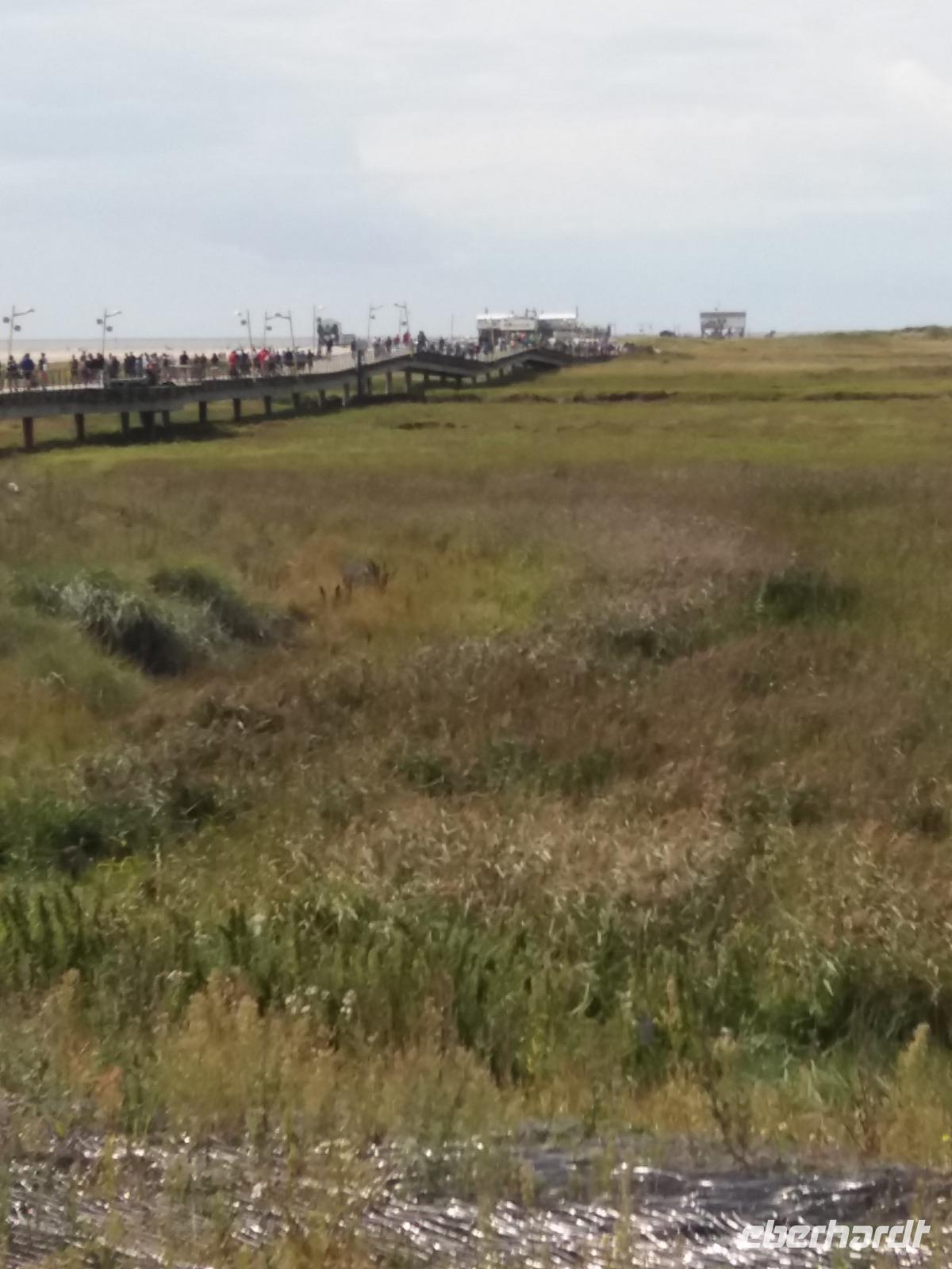 Alle Wassersportarten, Drachensteigen oder Strandsegeln...alles machbar hier.Viele von uns gingen auf dem langen Holzsteg, ca. 800m, der zum Meer führt und das bei totalem Sonnenschein.... Urlaubsfeeling pur.Neben Gesundheit und Wellness steht im Ortsteil St. Peter Bad mit seinen zahlreichen Geschäften, Cafes und Restaurants hinter dem Deich lebhaftes Urlaubstreiben im Mittelpunkt.