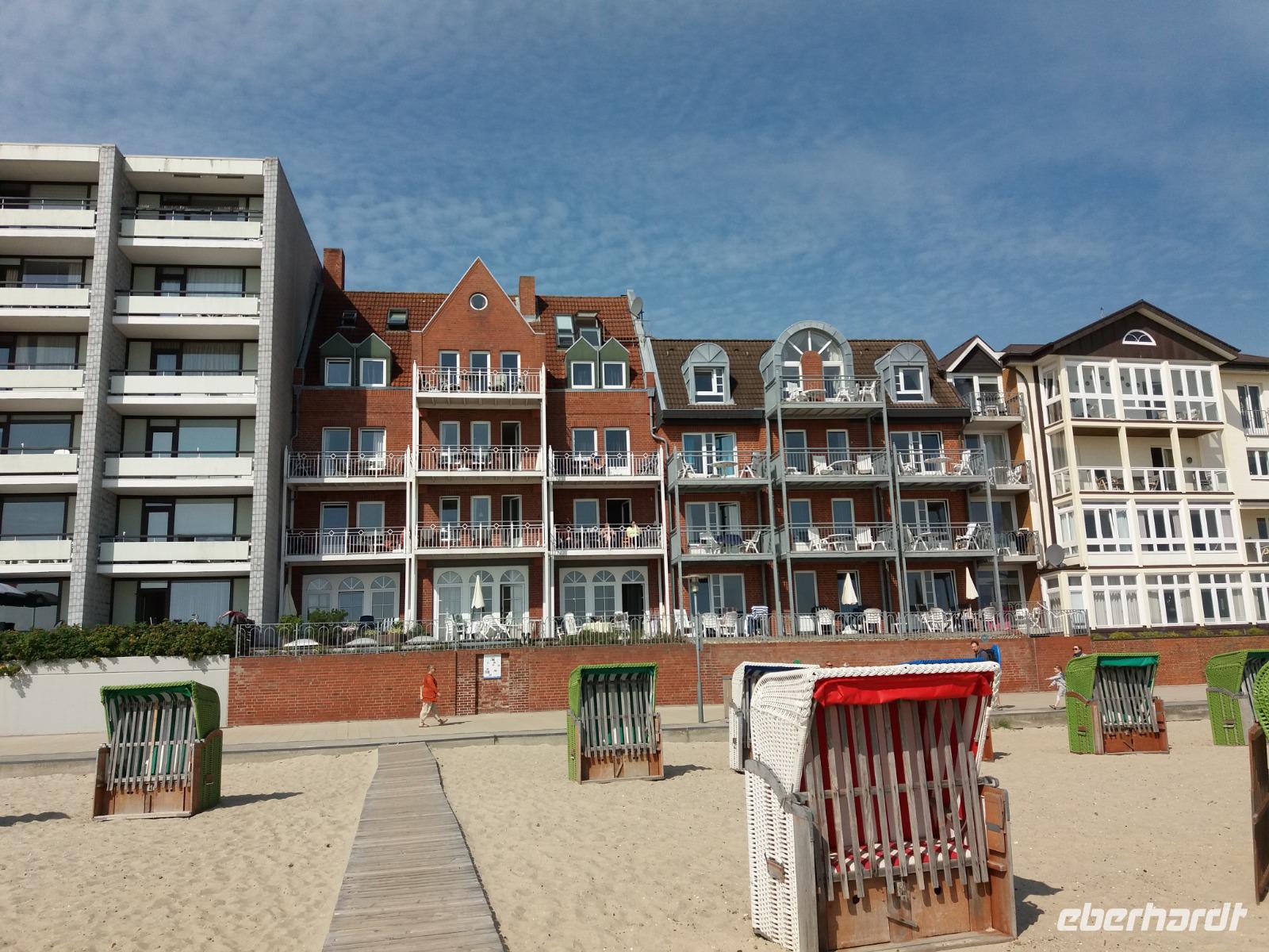 Mach einer kaufte kleine Andenken, aß ein Fischbrötchen oder genoss die leckere Friesentorte. Zahlreiche Geschäfte und Cafe's säumen die Strandstrasse. Nicht vergessen sollte man in die kleinen Gassen zu gehen. Verwinkelt und liebevoll restaurierte Häuser mit einer Blumenpracht von Hortensien sind zu sehen.Der Strand so nah und kilometerlang... Weißer Sand - die Friesische Karibik, liebevoll genannt.