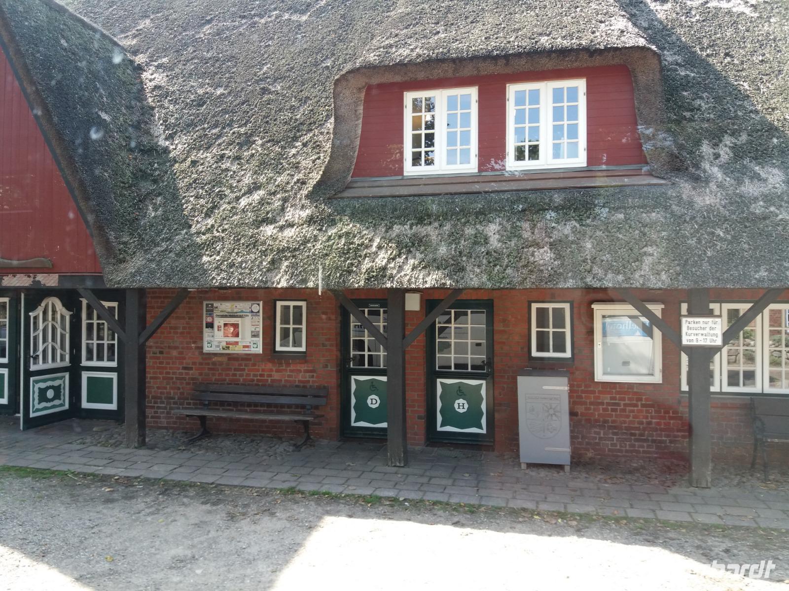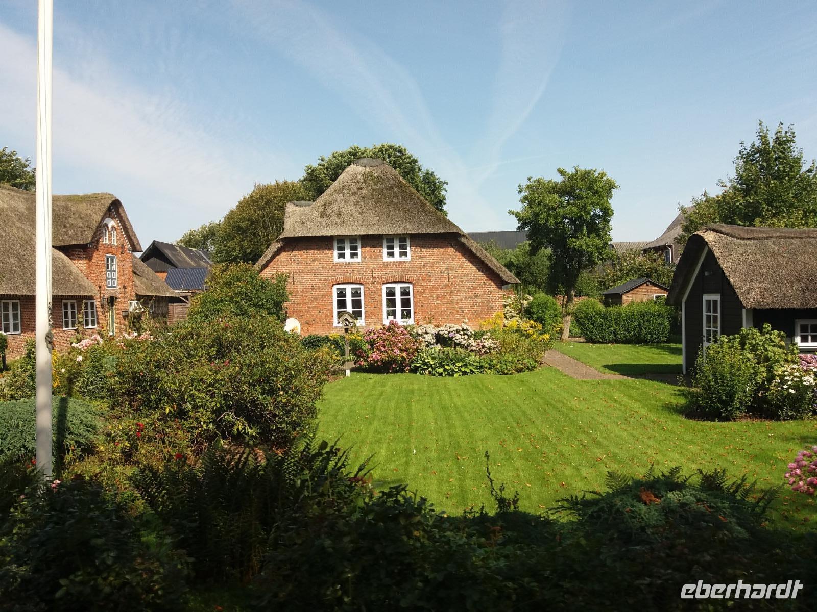 also siedlungsfähiges Land. Auch hier gibt es sehr schöne, oft reetgedeckte Häuser in den idyllisch gelegenen Dörfern. An den alten Hauseingangstüren erkennt man an der Farbe den Beruf. Blaue Tür = Fischer Grüne Tür = Landwirt