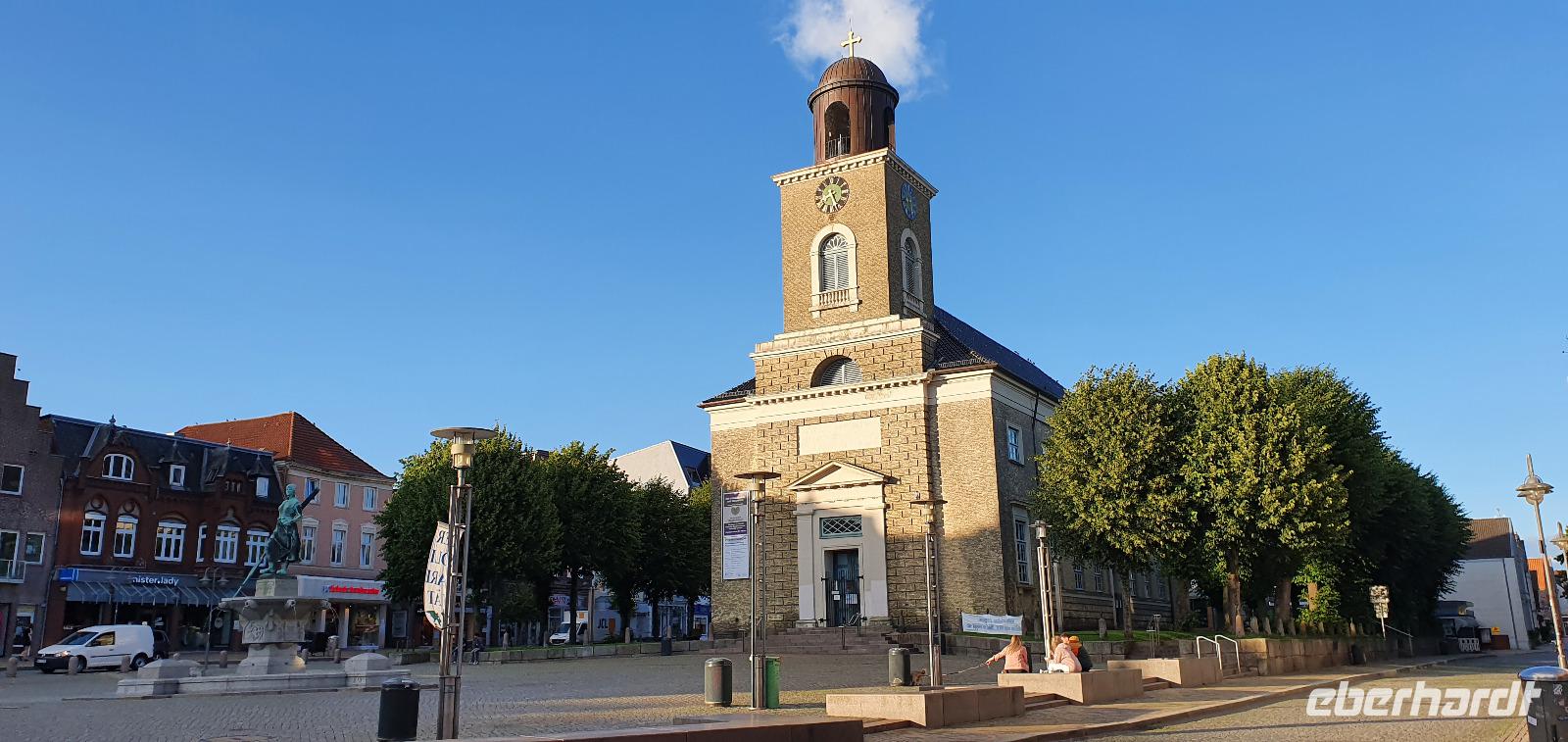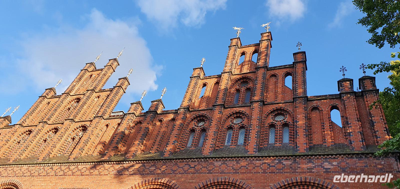 Ein schlichter protestantischer Bau, wesentlich kleiner als sein Vorgängerbau und auch in der Ausstattung eher klassizistisch als barock. Unübersehbar die Liebe der Architekten zu Griechenland und griechischen Säulen. Immerhin sind die ja Symbol für solide und dauerhafte Werke. Hier erfahren wir noch viel über die Stadt und ihre Geschichte, die Menschen, die hier lebten und schon war es Mittag. Ausgerüstet mit einem Übersichtsplan für weitere Sehenswürdigkeiten verabschiedeten wir uns voneinander. Wer wollte, der folgte meiner Einladung nach