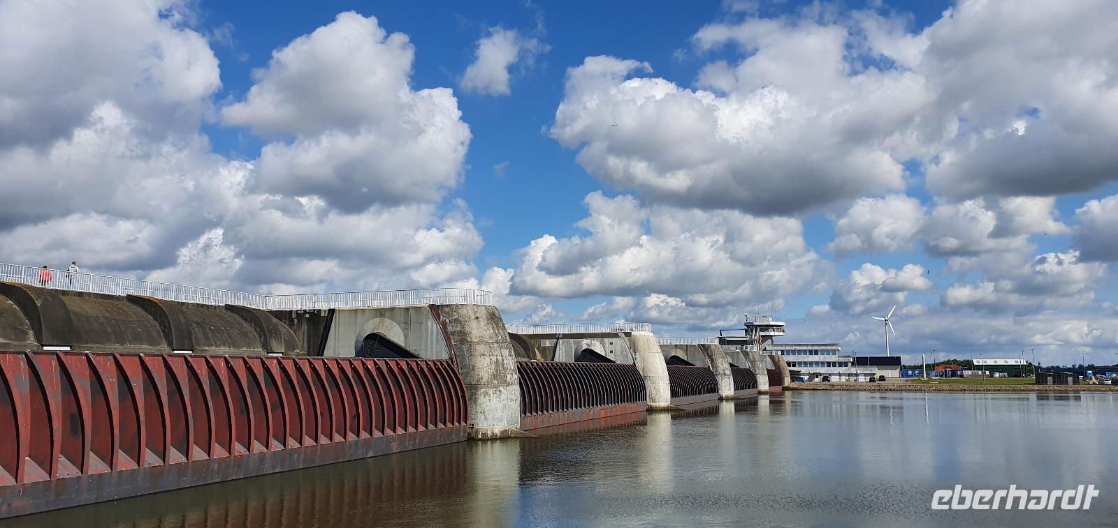 Es trennt die Eider, den größten Fluss Norddeutschlands, von der Nordsee. Die Fluttore sind 14 Meter hoch und 50 Meter lang- das wollten wir uns nun genauer ansehen. Beeindruckt spazieren wir auf der Krone entlang und erleben auch, wie die Straße geöffnet wird, um die Schiffe zur Nordsee zu lassen bzw. umgekehrt. Also warten wir geduldig, bis die Straße wieder frei ist und steuern unser nächstes Ziel an: