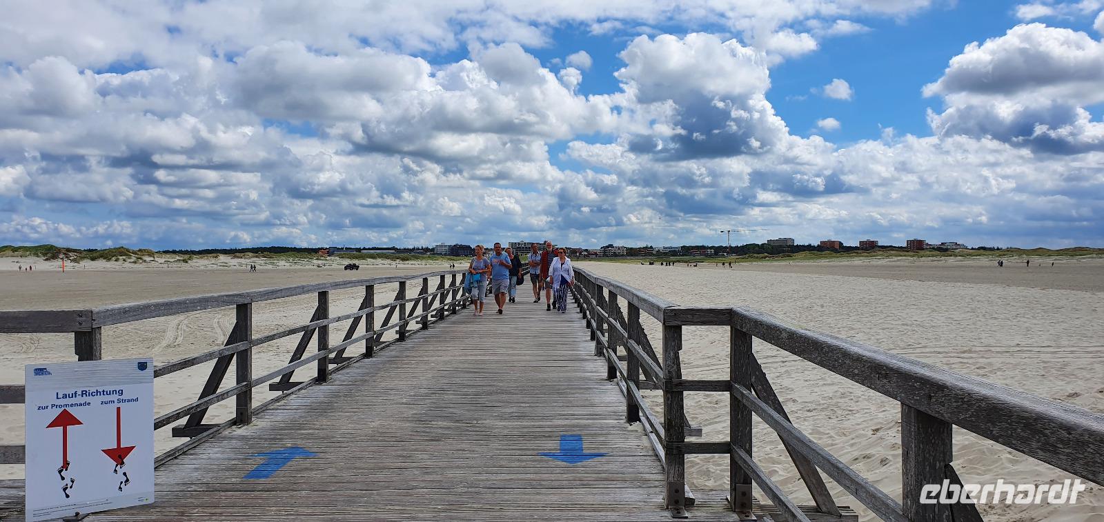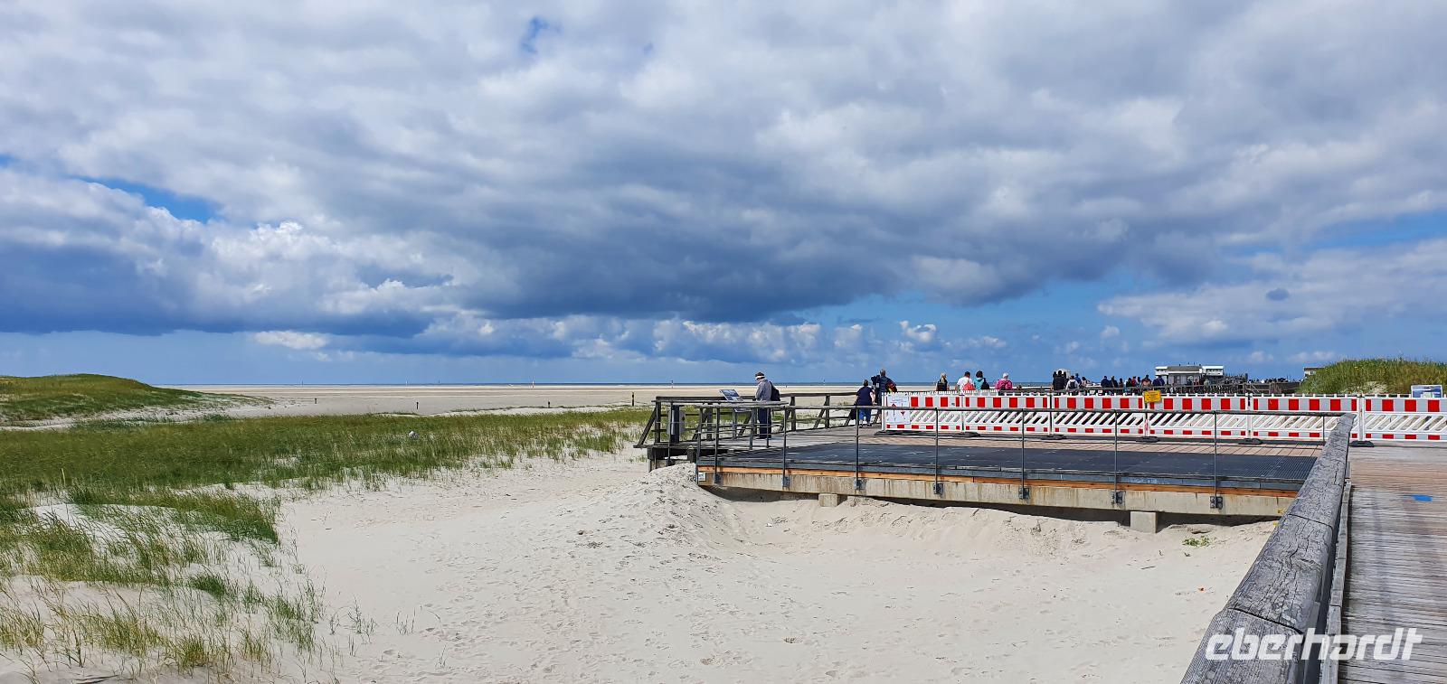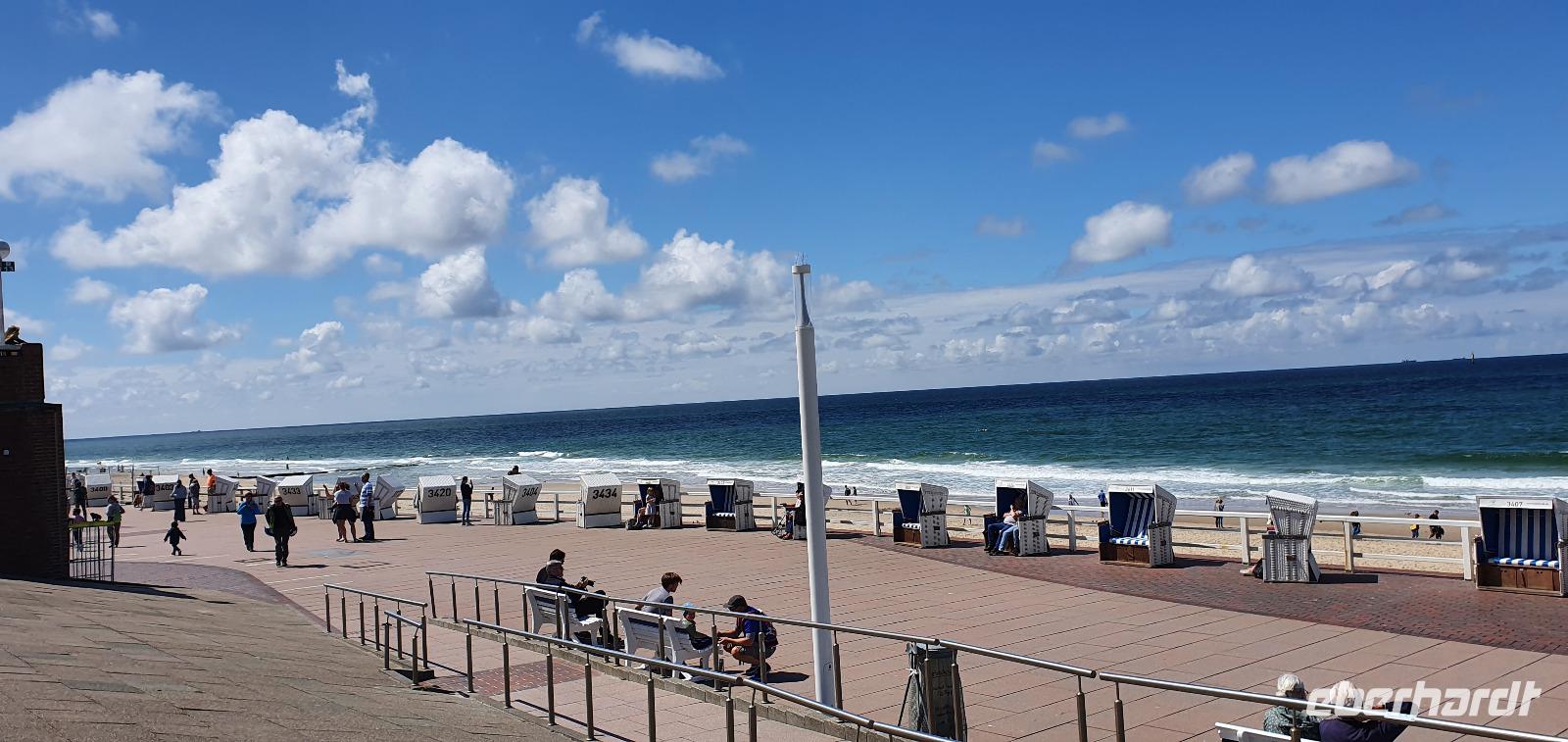 Auch hier ließen uns Straßensperrungen Umwege fahren, bis wir unseren Bus am Fernsehturm parken konnten. Ungefähr 10.000 Einwohner hat Westerland, ein Mehrfaches an Touristen jeden Tag. 5 Millionen sind es auf Sylt jedes Jahr- soviel wie die gesamte dänische Bevölkerung. Wir mischen uns jedenfalls darunter und verbringen eine entspannte Mittagspause hier. Dann ging es weiter, vorbei an Sylts schmalster Stelle. Hier ist die Insel nur 600 Meter breit. Und die Nordsee holt sich immer mehr Land. Zwar wir immer wieder Sand angebaggert, aber der ist so schnell wie er aufgespült wird auch wieder in den nächsten Fluten verschwunden. So ist absehbar, dass Sylt bald geteilt sein wird. Wir passieren