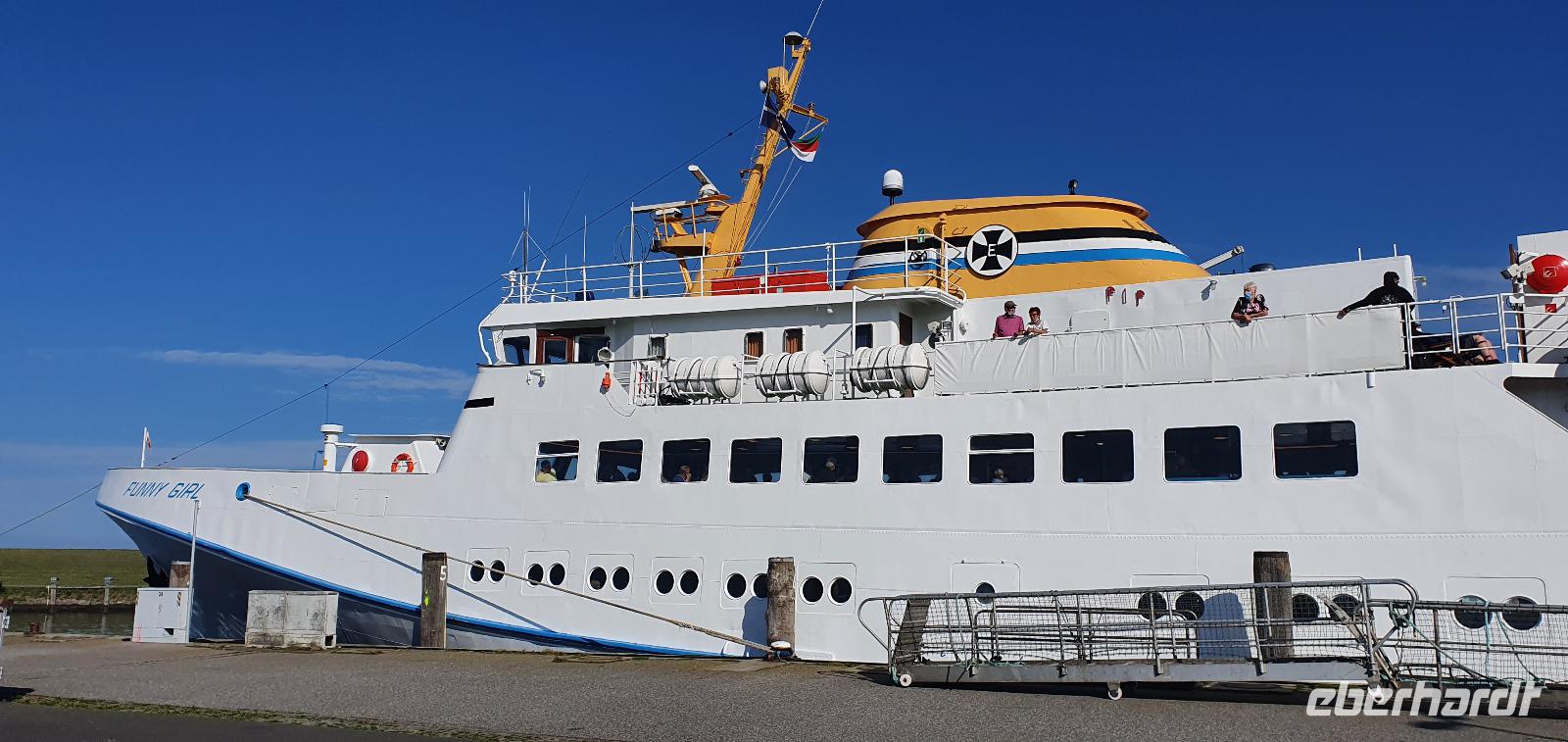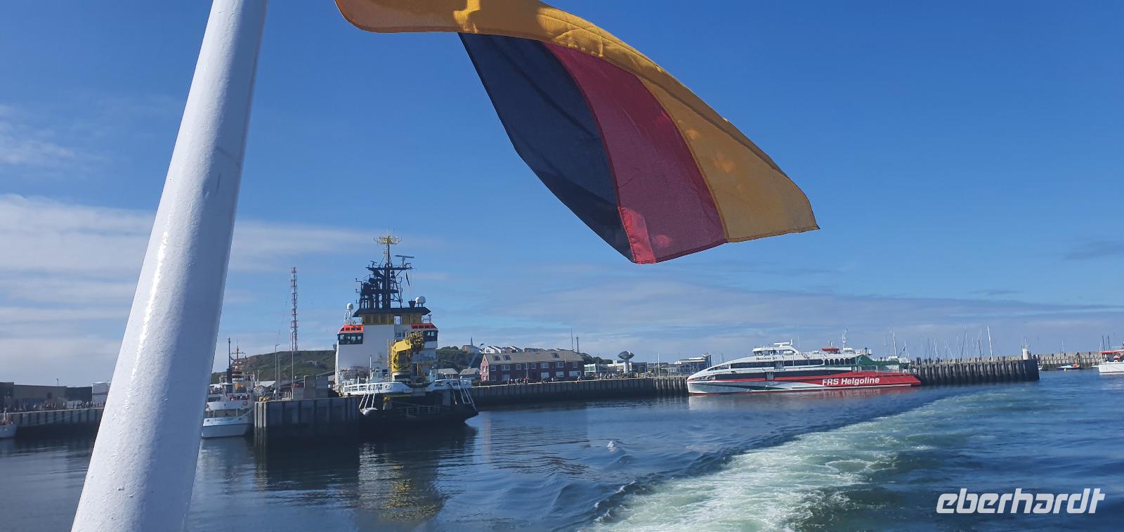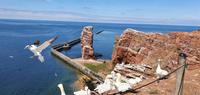 Wieder frühstücken wir heute im zeitigen Durchgang ab 06:45 Uhr. Pünktlich 8 Uhr brechen wir nach Helgoland auf. Hierfür benötigen wir eine "Einreiseerklärung", die jeder bei mir abgibt. Zunächst geht es nach Büsum zum Helgolandkai. Hier wartet schon unsere Fähre, die "Funny Girl" auf uns. Sie bringt uns in knapp 3 Stunden auf die einzige Hochseeinsel Deutschlands. Das bis dato übliche Ausbooten, d.h. der Umstieg in kleinere Börteboote, um an Land zu kommen, entfällt leider wegen Corona, ein kleines Abenteuer weniger. So fährt also unsere "Funny Girl" direkt in den Anlegerhafen von