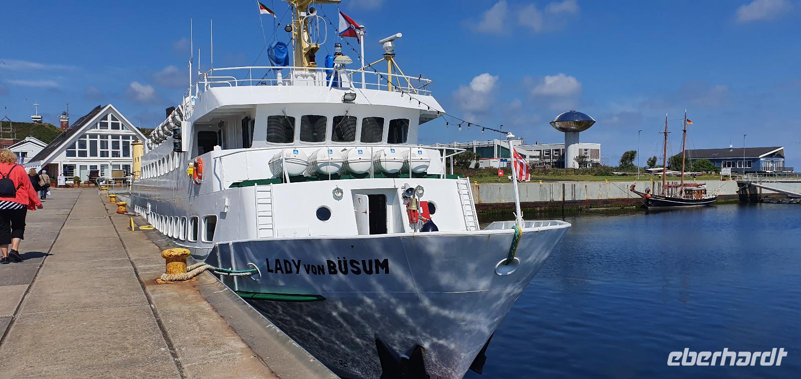 Heute besuchen wir die Königin der Halligen: Hallig Hooge. Wieder starten wir um 8 Uhr, unsere Fähre geht heute von Strucklahnungshörn, das ist eine gute halbe Stunde mit dem Bus. Pünktlich sind wir am Anleger und können auf unser MS "Adler Express". Die benötigt eine reichliche Stunde bis Hooge, vorbei an weiteren Halligen wie Südfall, Hamburg Hallig, die über einen Damm vom Festland aus erreichbar ist und die kleinste Hallig: Habel. Hier gibt es weder fließend Wasser noch Strom. Die Vogelbeobachtungsstation hier ist die einzige Einrichtung. Vorbei an der Hallig Gröde und an Langeness, die ihren Namen von ihrer Form hat: "lange Nase". Dann erreichen wir