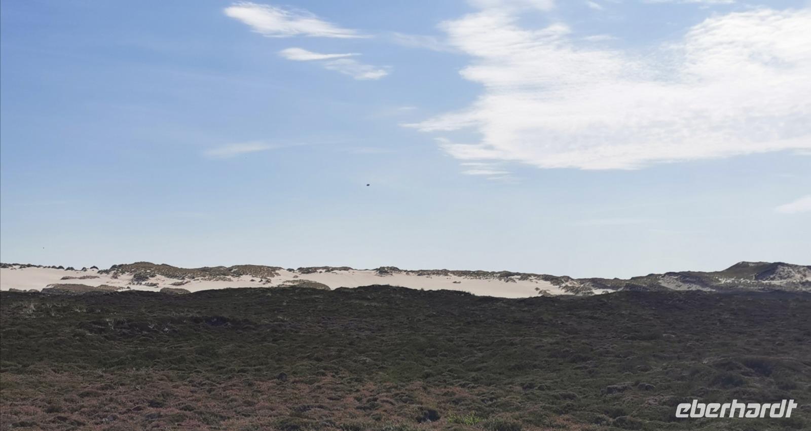 Hilke erklärt uns, daß der Sand der Dünen vom einstmals aus China eingeführten Strandhafer gehalten wird, seine Wurzeln reichen bis in 14 Meter Tiefe. Dann geht es vorbei am Naturschutzgebiet. Die Wanderdünen sind sind bis zu 52 Meter hoch. Sie dürfen von Menschen nicht betreten werden, nur die Schafe dürfen von hier aus den Blick zur Nordsee genießen.