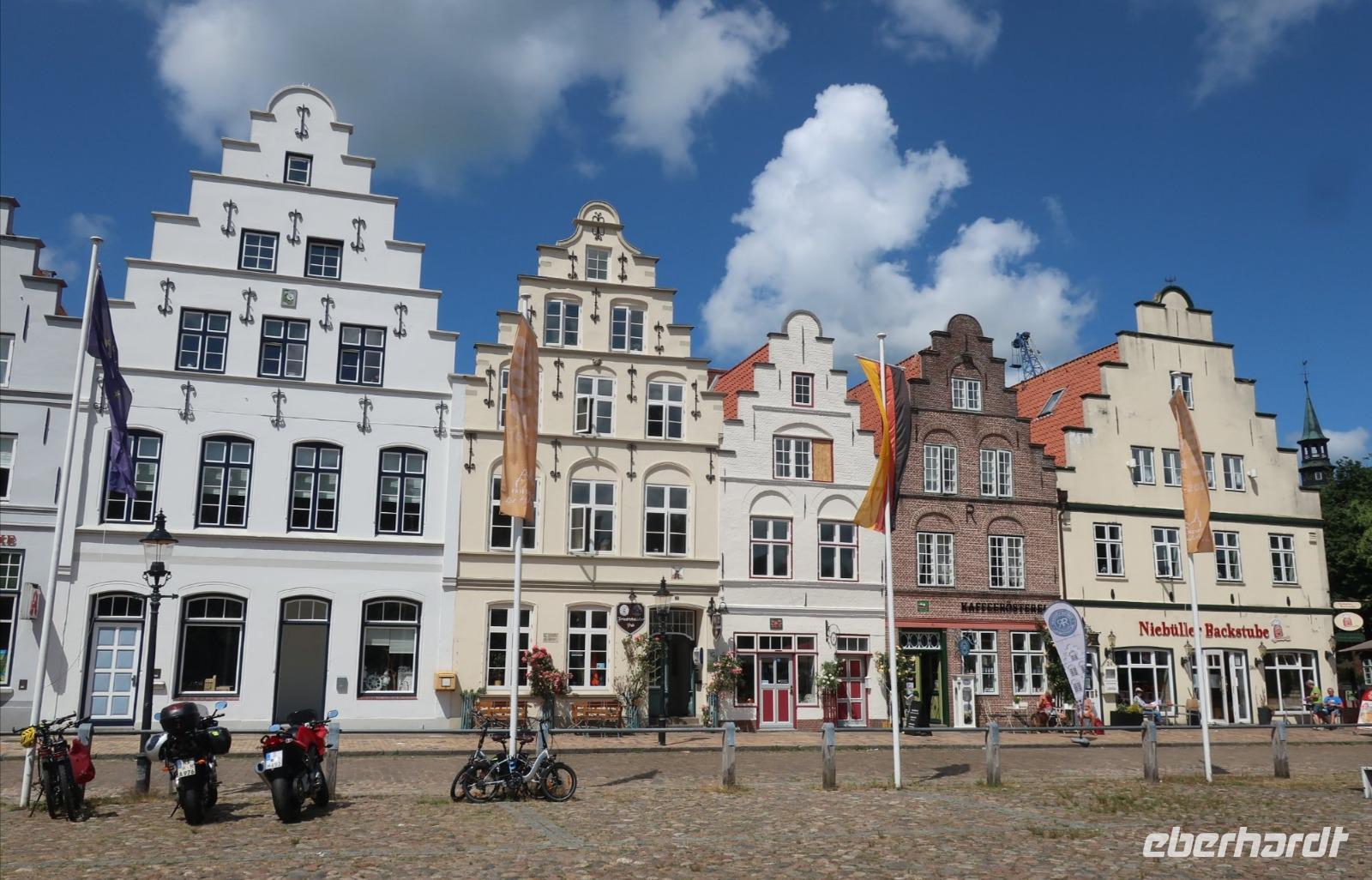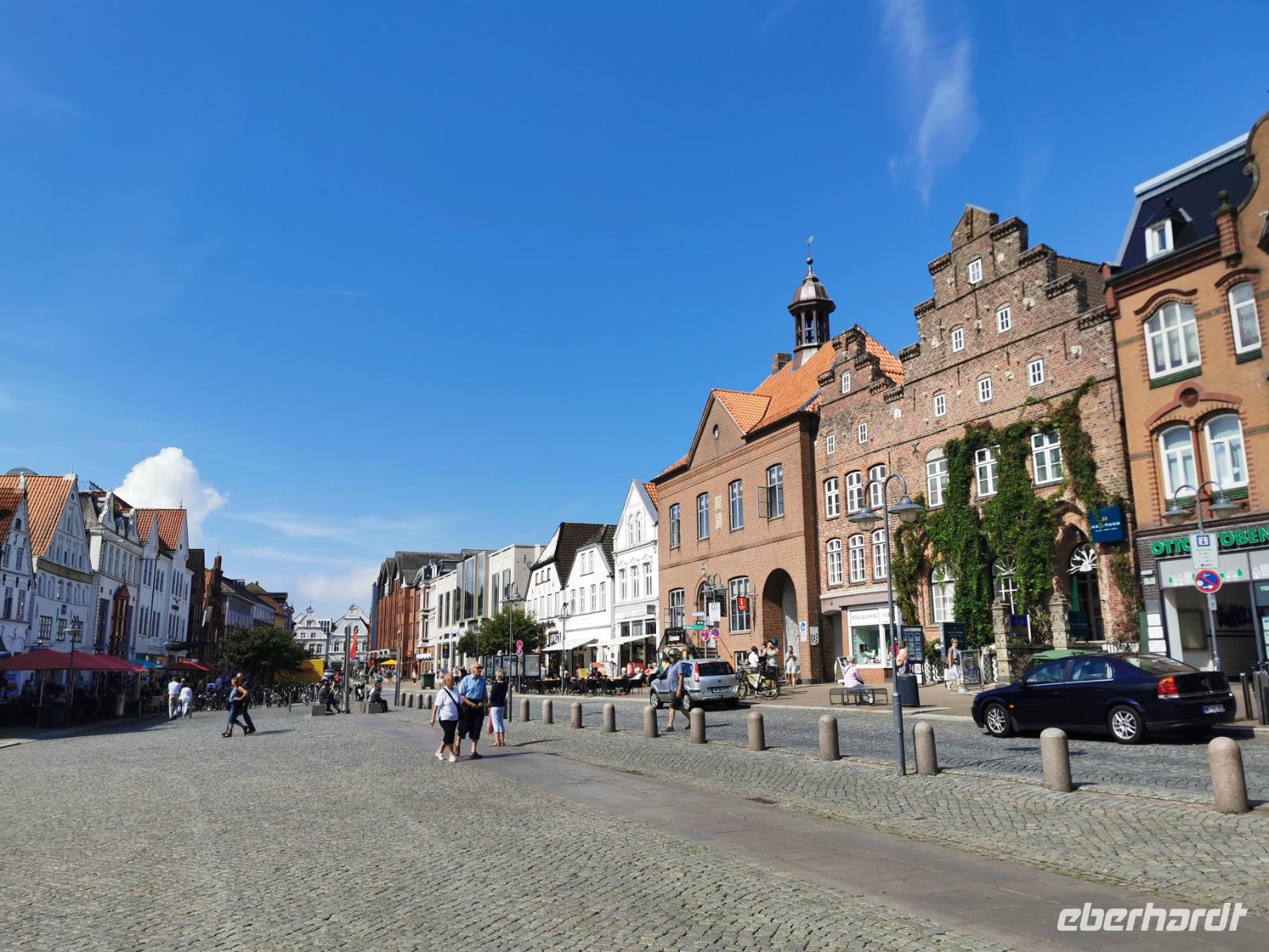Heute gehts direkt vom Hotel los zum Stadtrundgang durch Husum. Am Binnenhafen steht der Flutpfahl, an dem wir andächtig die verschiedenen Markierungen bestauen. Wir können uns gar nicht vorstellen, wie hoch die Fluten einst gestiegen sind. Danach spazieren wir zum Hafen, den alten Speichern, die heute zu Geschäften, Kulturzentren und Wohnungen umgebaut worden sind. Am Theodor Storm Haus zitiert ein Gast ein Gedicht des Schriftstellers. Storm liebte die Blumen und verabredete sich zu Zeiten "wenn die ... blühen". Daher gibt es neben dem Stormarchiv einen wunderschönen Garten. Auf unserem Spaziergang zum Zentrum sehen wir noch sein Wohn- und Geburtshaus.