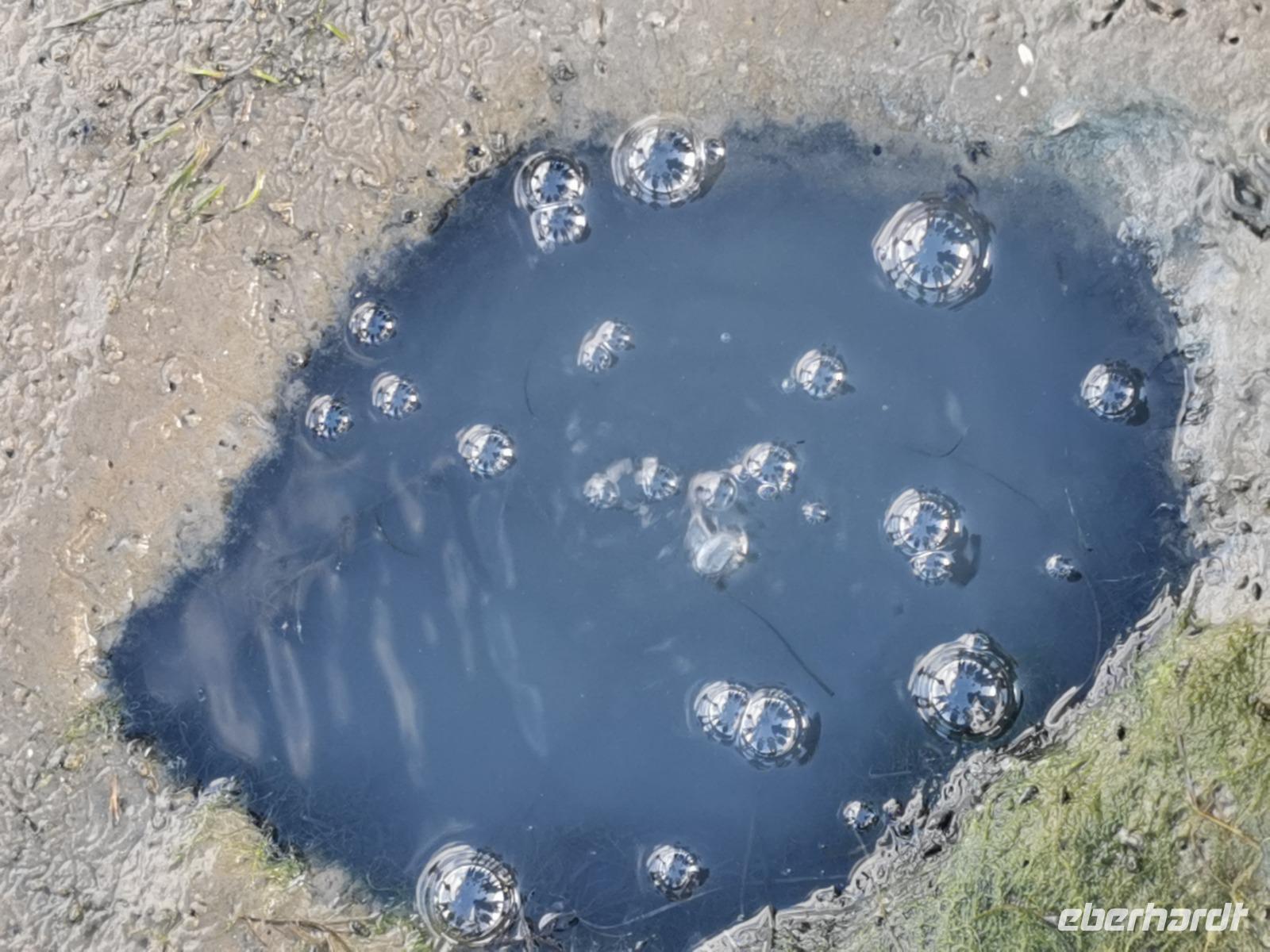 Am Schöpfwerk Dunsum schließlich legen wir eine kleine Pause ein. Daniel erklärt uns, dass der Unterschied zwischen Ebbe und Flut hier beachtliche 2,90 Meter beträgt. Wattwanderungen sind auch hier sehr beliebt, man kann sogar von Föhr bis nach Amrum wandern. Allerdings sollte man das nicht ohne kundigen Wattführer tun. Das Wasser ist für Laien unberechenbar.
