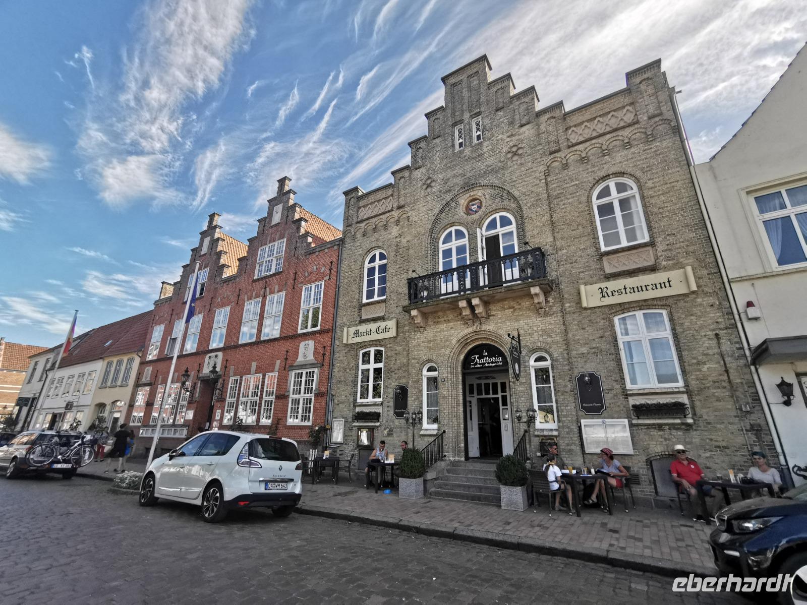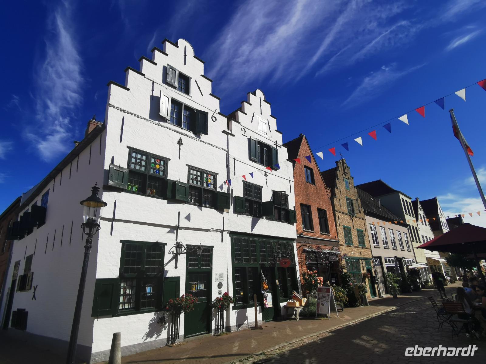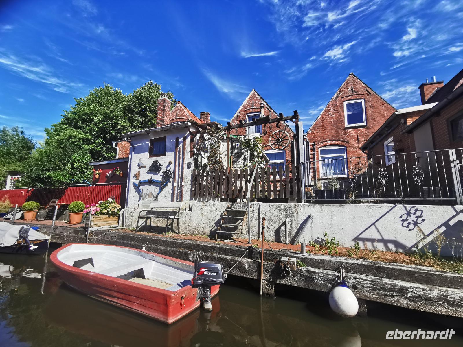 Am Schiffsanleger steigen wir in das Boot ein und fahren beim schönsten Sommerwetter auf der Treene hinaus zur Eider, beide Flüsse treffen sich in Friedrichstadt. Im Anschluß fahren wir hinein in die Holländerstadt, oder das Amsterdam des Nordens, wie Friedrichstadt auch genannt wird. Die Fahrt durch die Stadtkanäle ist bezaubernd schön und unser Schiffsführer unterhält uns mit Anekdoten und Wissenswertem. So sehen wir viele geschichtsträchtige Häuser, ehemalige Kirchen, genauso wie farbenfrohe Gärten und Bootsanleger. Viel zu schnell ist unsere Fahrt zu Ende und wir beschließen, noch etwas zu Fuß durch das Zentrum zu bummeln.