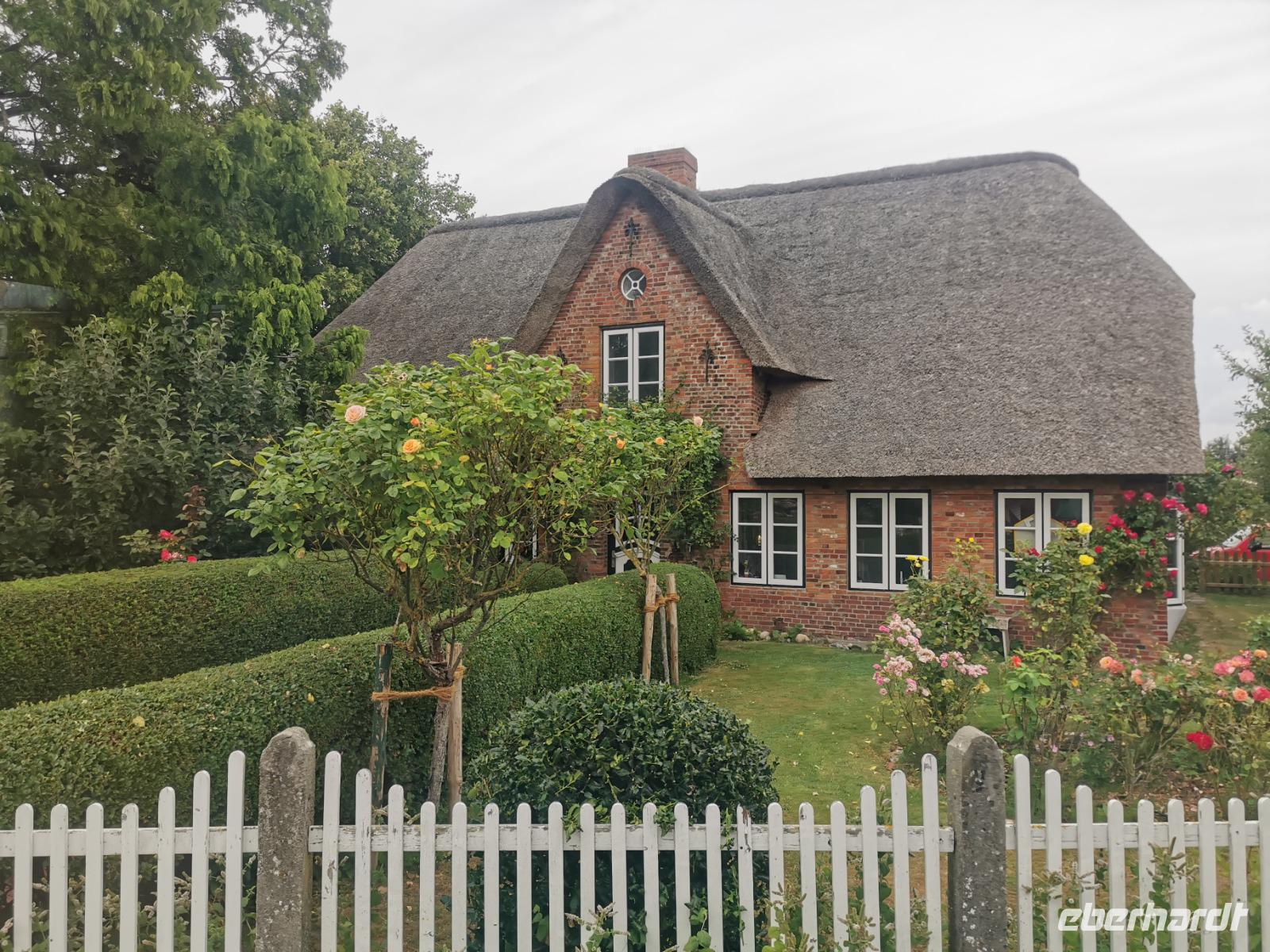 In Nieblum sehen wir das wohl schönste Dorf hier auf der Insel. Wie auf der Postkarte reihen sich hier die Reeddachhäuser pittoresk aneinander und wir wären gern hier geblieben.