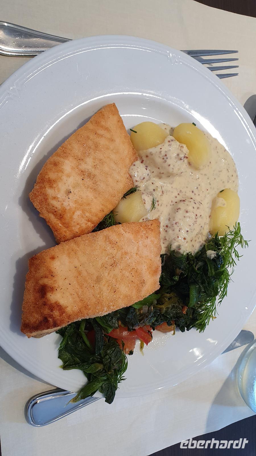 Noch im Bus gab es die Schlüssel zum Einchecken und dann hieß es frisch machen denn ich hatte zu einem kleinen Spaziergang rund um unser Hotel eingeladen. Bei strahlendem Sonnenschein konnten wir schon einmal durch die Hohle Gasse gehen (die es hier wirklich gibt) und dem Schloß - zumindest dem Tor zum Schloss - einen Besuch abstatten. Über den Marktplatz ging es dann zurück zum Binnenhafen und der liegt in unmittelbarer Nähe unseres Hotels. Später dann trafen wir uns zum Abendessen im Hotel und wurden mit köstlichem Lachs, Salaten und Braten verwöhnt. So klang ein langer Tag wunderbar aus.