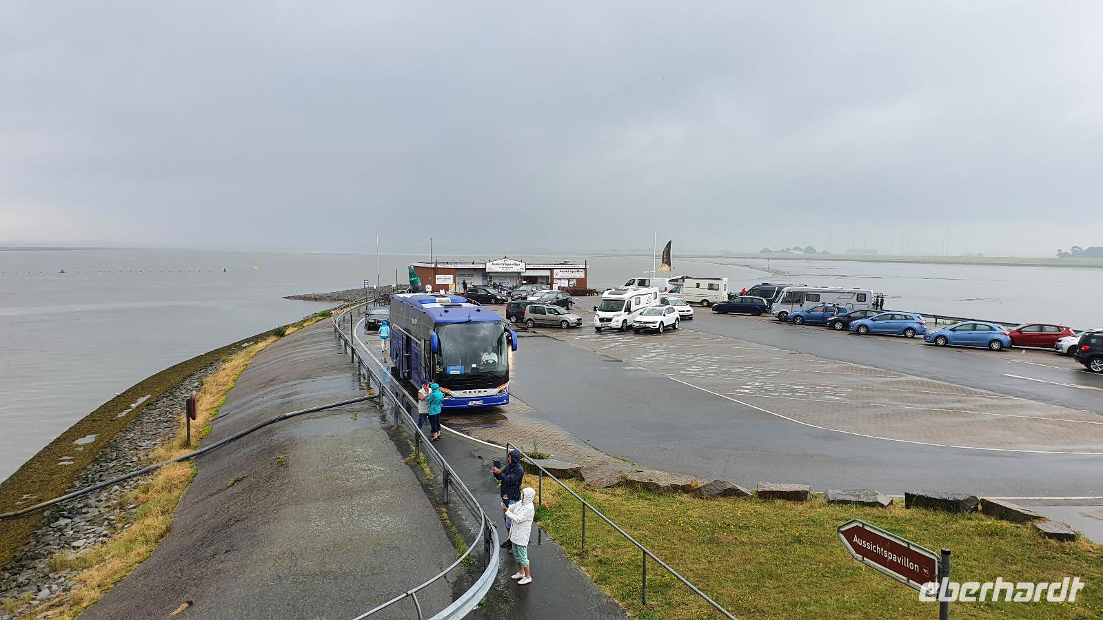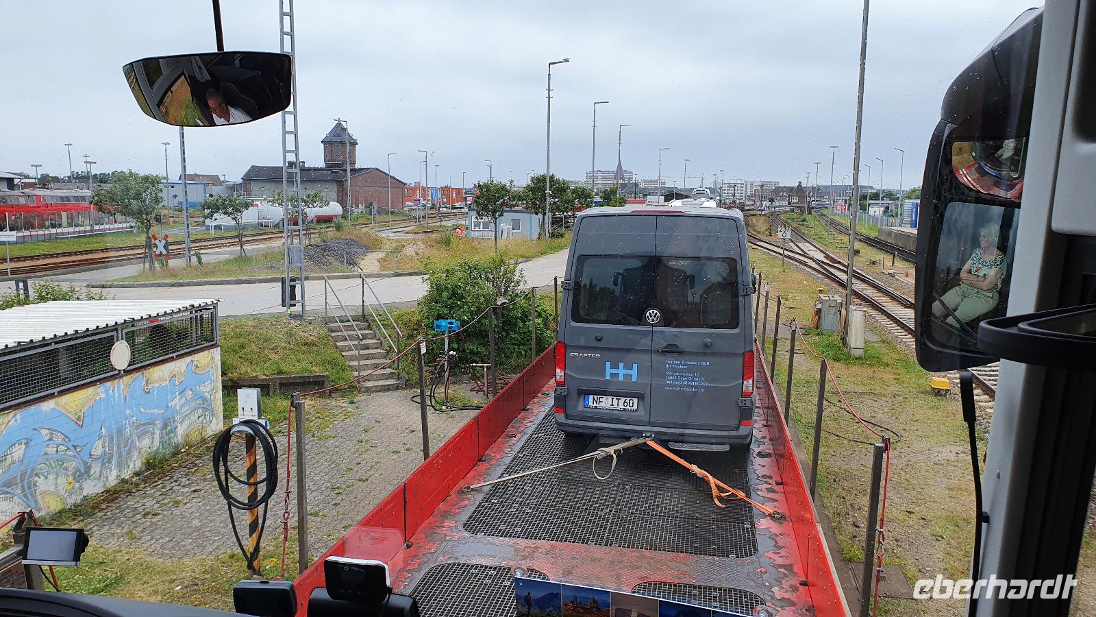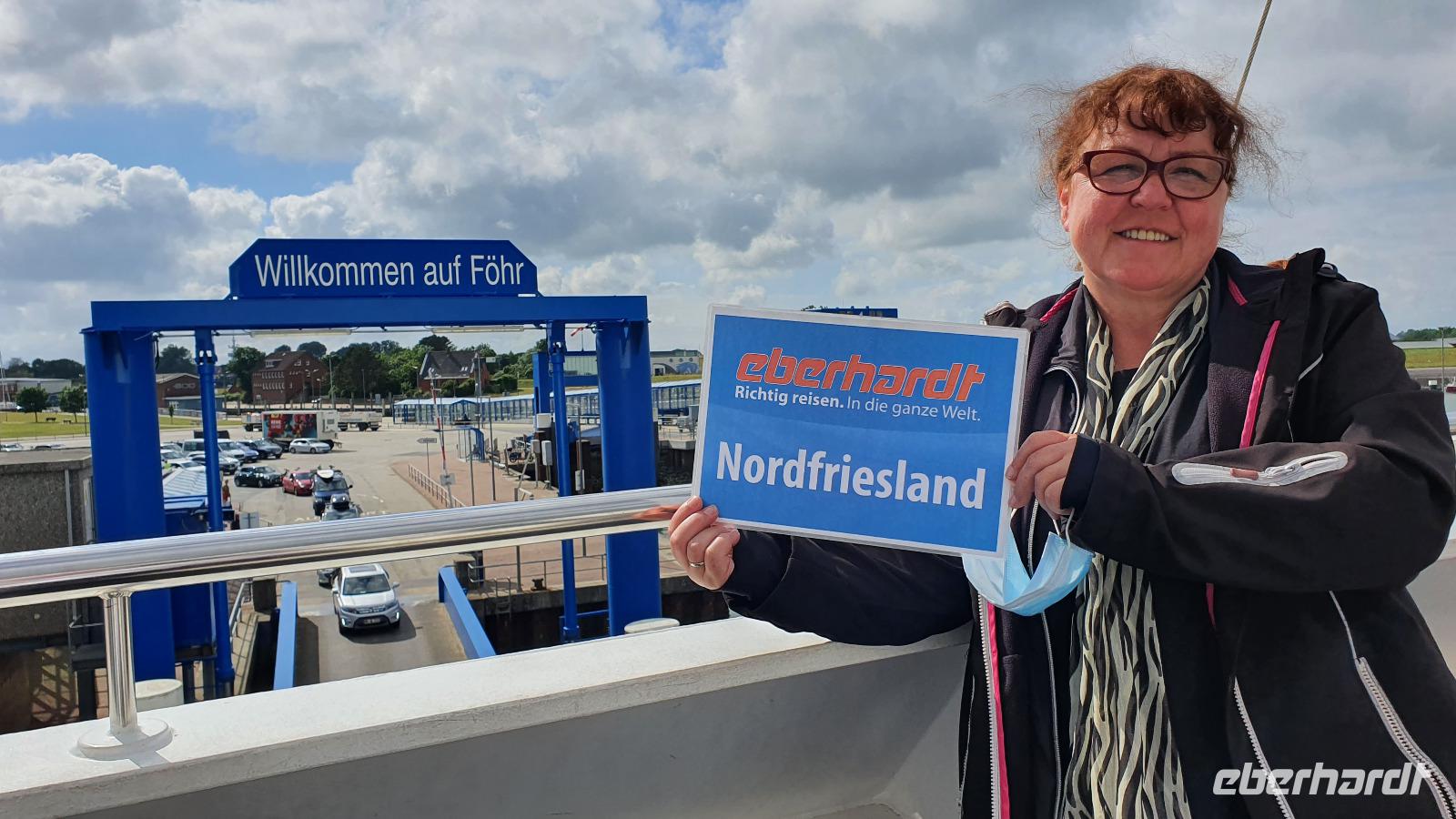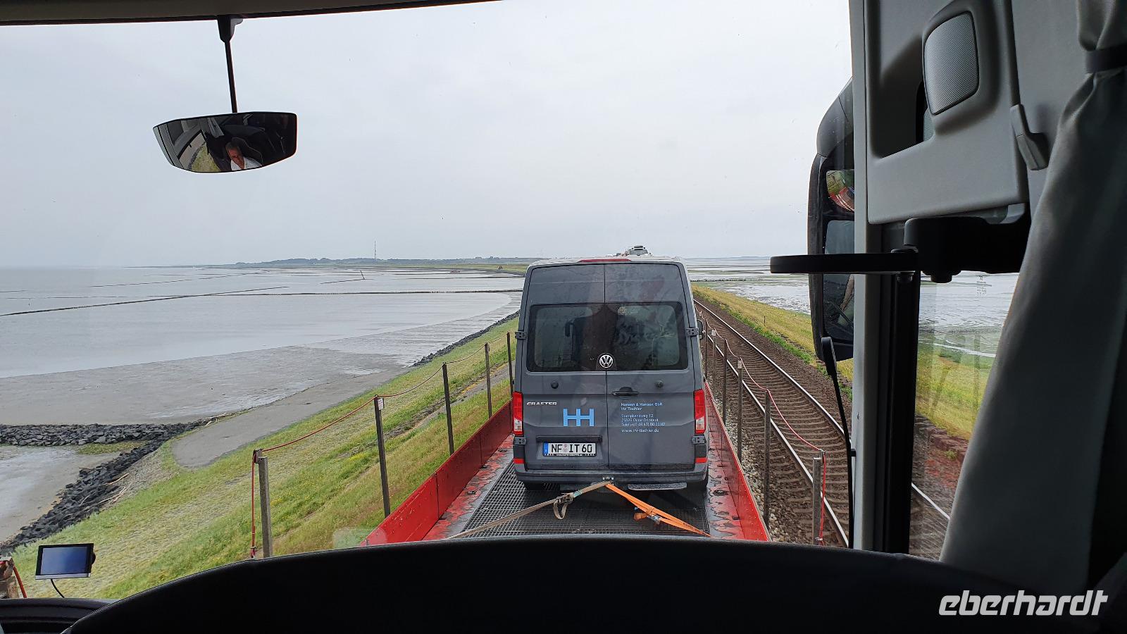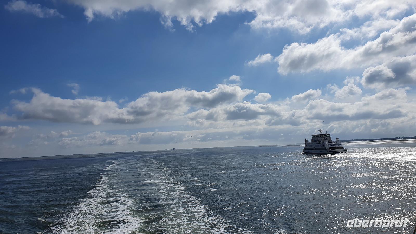 erreichen wir über den Autodamm, der die Insel mit dem Festland verbindet- immerhin über 10 Kilometer. Hier darf natürlich ein Abstecher zur größten Sandbank des Nordens nicht fehlen und unser Busfahrer Andre genießt es sichtlich, mit dem Bus auf dem Sand entlang zu fahren. Weiter geht es zum Fährhafen. Mit ein wenig Verspätung kommt auch unsere Fähre und los geht s. Auf der Fähre können wir den Bus verlassen und jeder genießt die ruhige Überfahrt nach