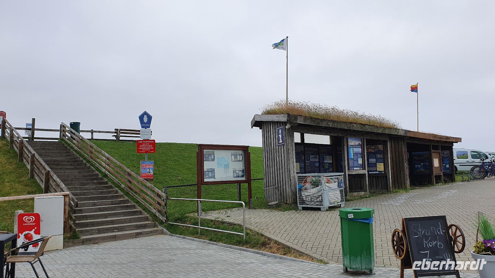 Also stiegen wir hinauf, wer wollte nahm die Treppen, die anderen liefen die Straße entlang. Schon bald hatten wir eine atemberaubende Sicht. Der Hafen unter uns, die Düne und natürlich das Meer. Auch das Wetter spielte wieder mit und wir hatten Gelegenheit für tolle Fotos. Viele nutzten die Informationspunkte am Wegesrand um mehr über Piraten, Geologie, die Vogelwelt oder auch die Geschichte der Insel zu erfahren. Höhepunkt für viele dann der