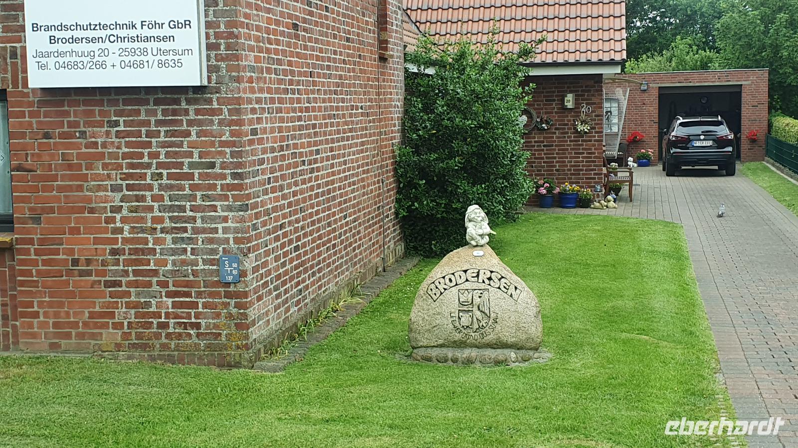 Am Schöpfwerk hier können wir aussteigen und auf dem Damm haben wir eine tolle Fernsicht. Wir können bis Sylt schauen, sehen den Hörnumer Leuchtturm und auch Amrum sehen wir. Beliebt sind Wattwanderungen hierher, aber die sollten nur unter kundiger Führung erfolgen. Weiter geht unsere Fahrt durch Utersum. Hier sitzen lustige Gesellen auf den Steinen und in den Einfahrten: Föhrer Trolle. Sie beschützen Haus und Hof- aber wehe, man hatte es sich mit ihnen verscherzt, dann trieben sie dolle Streiche und Schabernack. Auf dem Weg nach Witsum schließlich sehen wir Grabhügel, die hier noch erhalten sind. Sven verrät uns auch das Rezept des Föhrer Nationalgetränks: des Föhrer Manhatten: weißer Martini+ roter Martini+Whisky, das ganze im Verhältnis 1:1:1- wohl bekomms. In