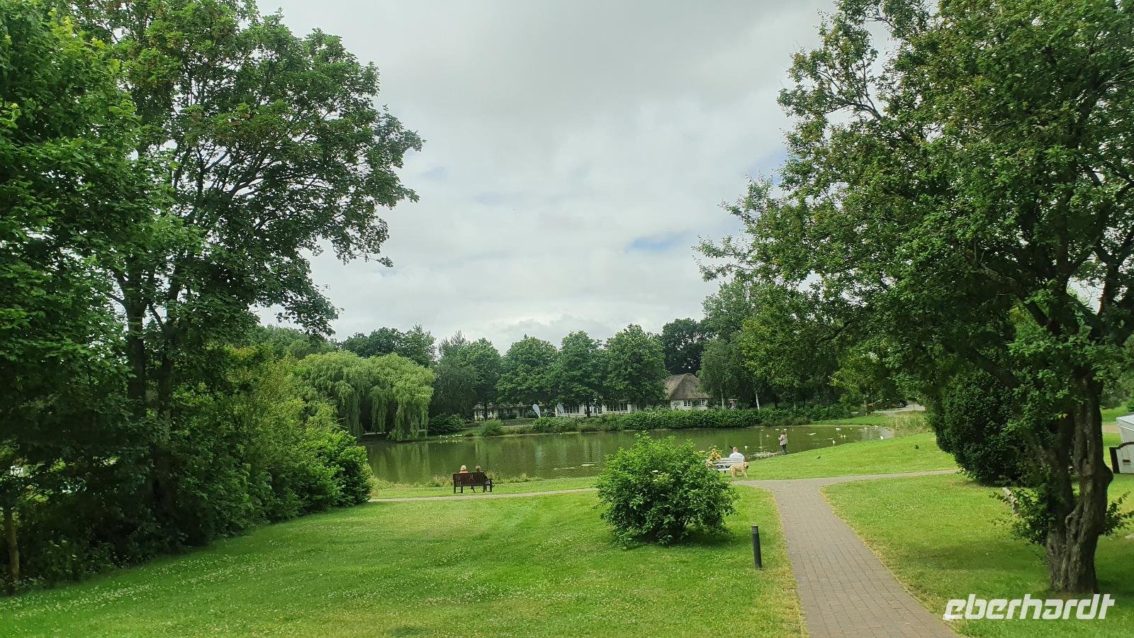Eigentlich ein Sammelbegriff für mehrere Orte. Seit man in den 50er Jahren bei Bohrungen nach Wasser Schwefel fand ist es auch ein Heilbad, das einzige Nordseeheilbad. Wir stoppten in St. Peter Bad. Gemeinsam spazierten wir zur Promenade. Und nun konnte jeder sselber entscheiden, was er/sie sehen wollte. Einige spazierten auf den Holzbrücken hinunter zum Strand, andere bummelten ein wenig oder holten die verpasste Mittagspause nach. Alle genossen die Landschaft ringumher, die Dünen waren begrünt worden und so bleibt der Sand dort, wo er hingehört- und nicht in der Luft, der Kleidung oder gar den Zähnen. Der Wettergott meinte es gut mit uns, er schickte zwar ein wenig Gewittergrollen vorbei, dabei blieb es aber und wir konnten die Zeit hier richtig auskosten. Gerne wären wir länger geblieben aber die Zeit war schon weit fortgeschritten und so machten wir uns auf den Weg Richtung Husum. Hilke wählte aber nicht die Schnellstraße sondern eine schönere Strecke- die durch das Katinger Watt. So erfuhren wir vom Naturschutzgebiet, den Wildvögeln, die hier leben oder durchziehen und konnten auch noch einmal einen der Haubarge hier sehen. Damit endete dieser Ausflug und wir bedankten uns herzlich bei Hilke für die zwei Tage, die wir mit ihr ihre Heimat entdecken konnten. Die Test- Gruppe stattete dem Test-Center noch einen Besuch ab, für Helgoland morgen brauchen wir einen negativen Test, der nicht älter als 24 Stunden sein darf. Zum Abendessen trafen wir uns dann und wieder verwöhnte uns die Küche des Hotels mit leckeren Speisen.