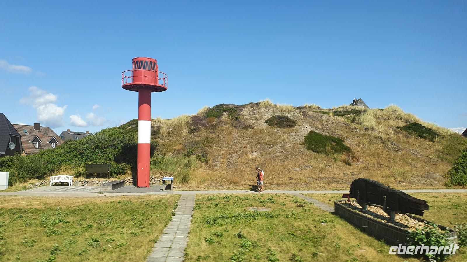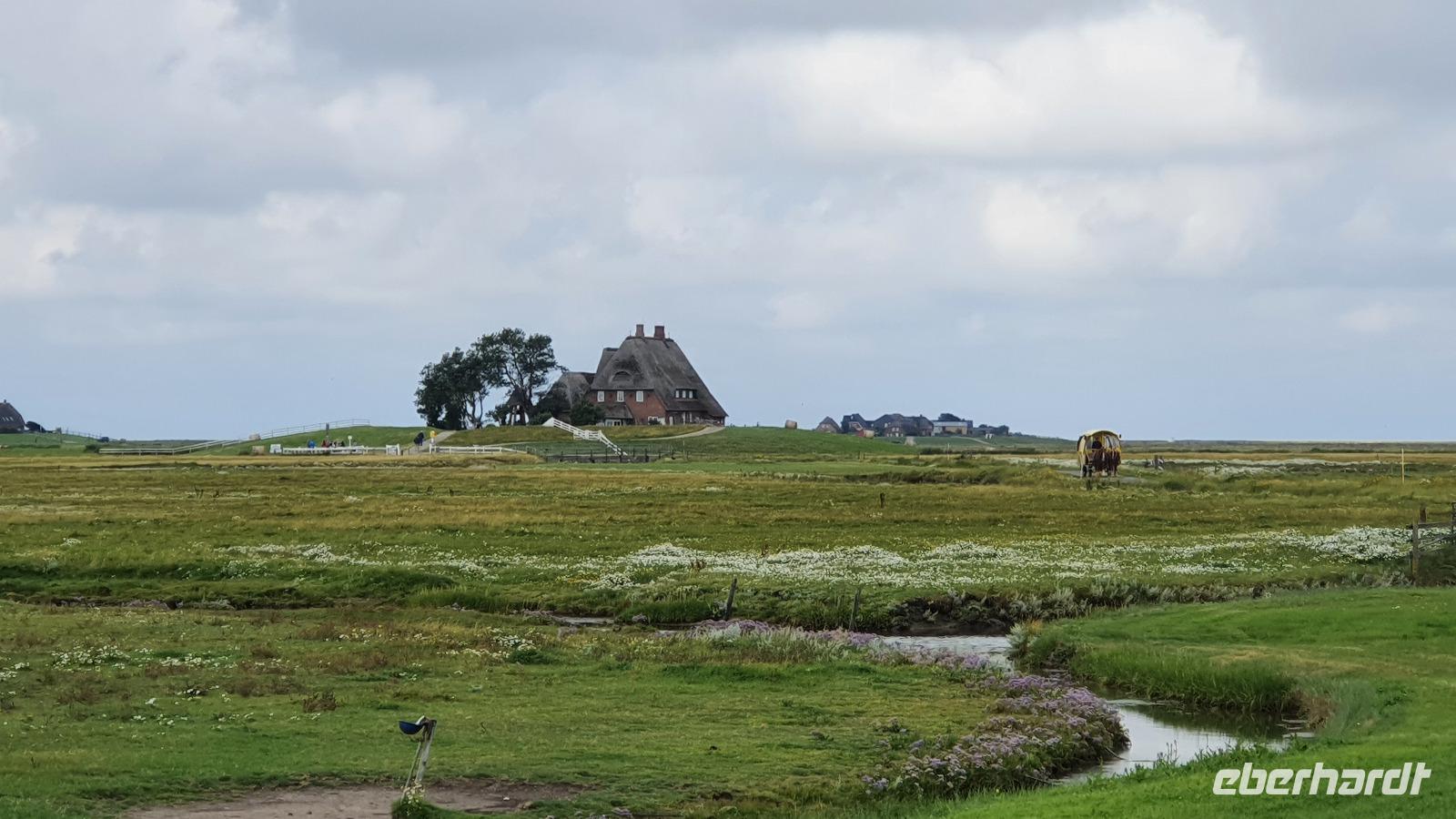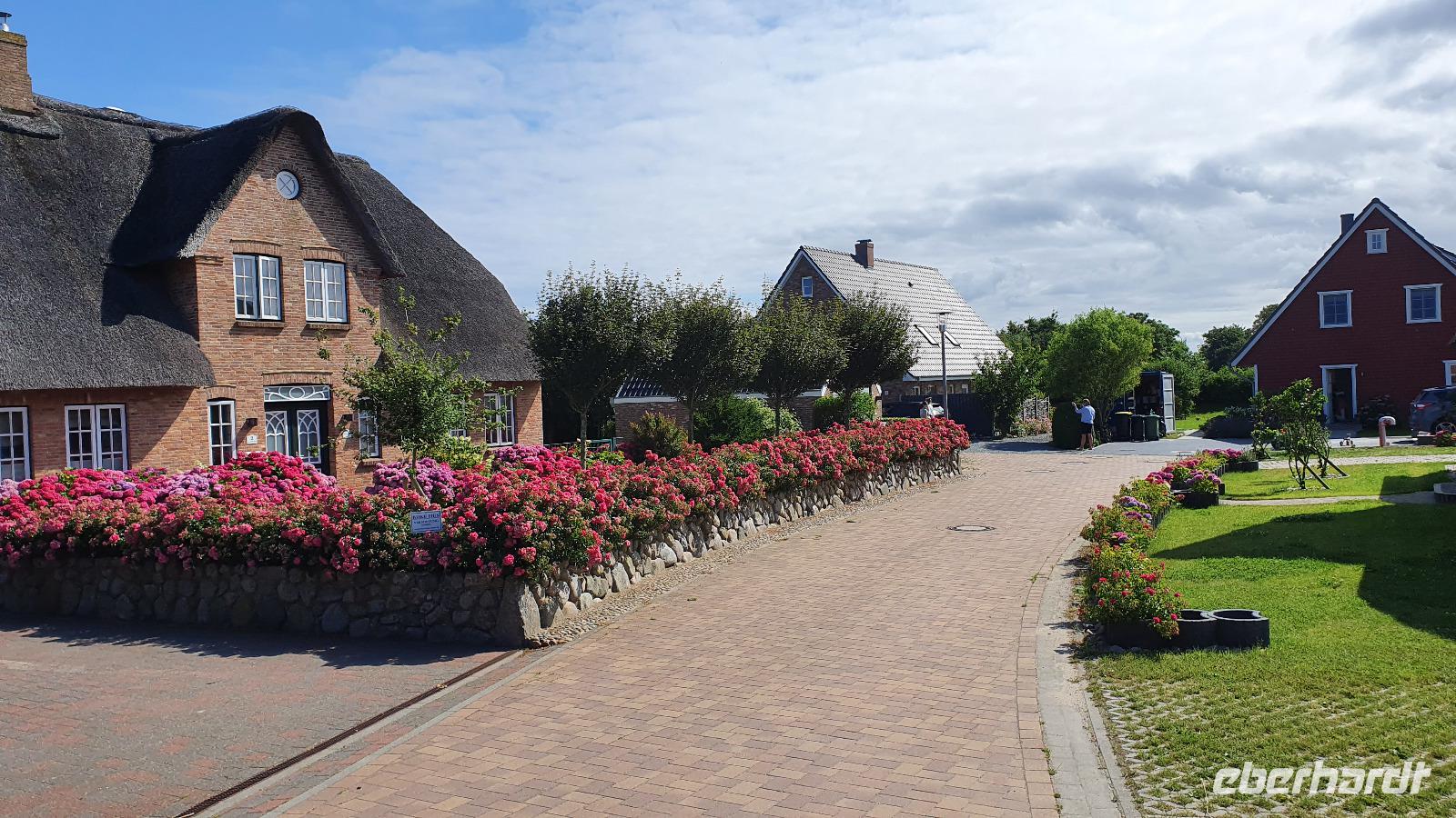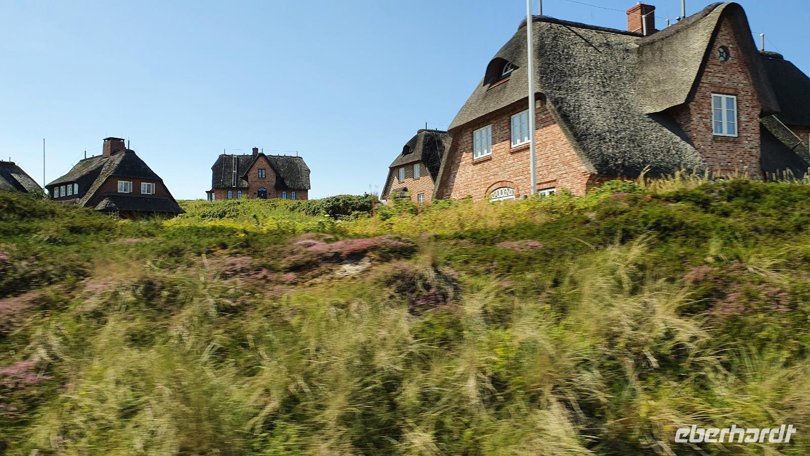 Hier gibt es ausschließlich Häuser im Friesenstil. Alle haben ein Reetdach, sogar Bushaltestellen und auch die Feuerwehr. Am Leuchtturm geht es vorbei und an den Hügelgräbern. Von einstmals 200 sind heute nur noch ca. 40 erhalten. Durch Munkmarsch (was übersetzt "Mönchswiese" heißt)geht es weiter nach