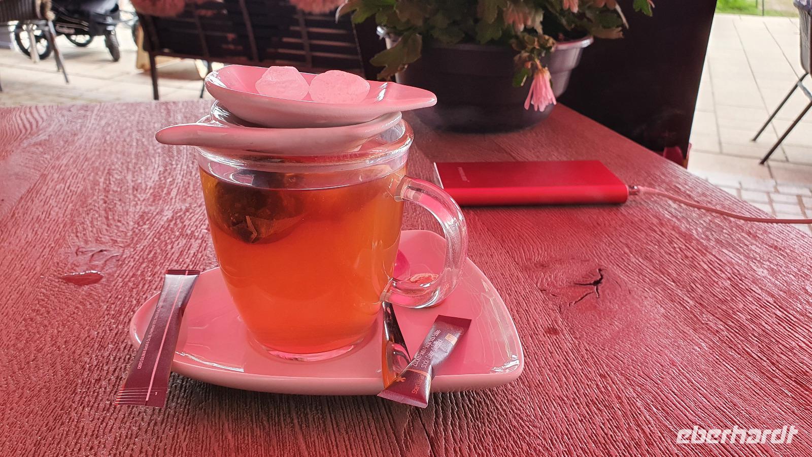 Sei es beim Baden am Strand (was günstig ist, denn es ist Flut und das Wasser ist da), beim Spazieren an der Promenade, beim Bummeln durch die Läden oder beim Genießen in einem der Cafes. So verfliegt der Nachmittag und wir treffen uns an der Fähre wieder. Mit ein wenig Verspätung bringt uns diese wieder zurück nach Dagebüll und Maik bringt uns sicher nach Husum zu unseren Hotels. Zum Abendessen werden wir wieder verwöhnt: einer Tomatensuppe mit Pesto folgten leckerer Fisch und Schweinemedaillons. Was wollten wir mehr? Ein rundum gelungener Tag geht zu Ende und wir freuen uns auf morgen.