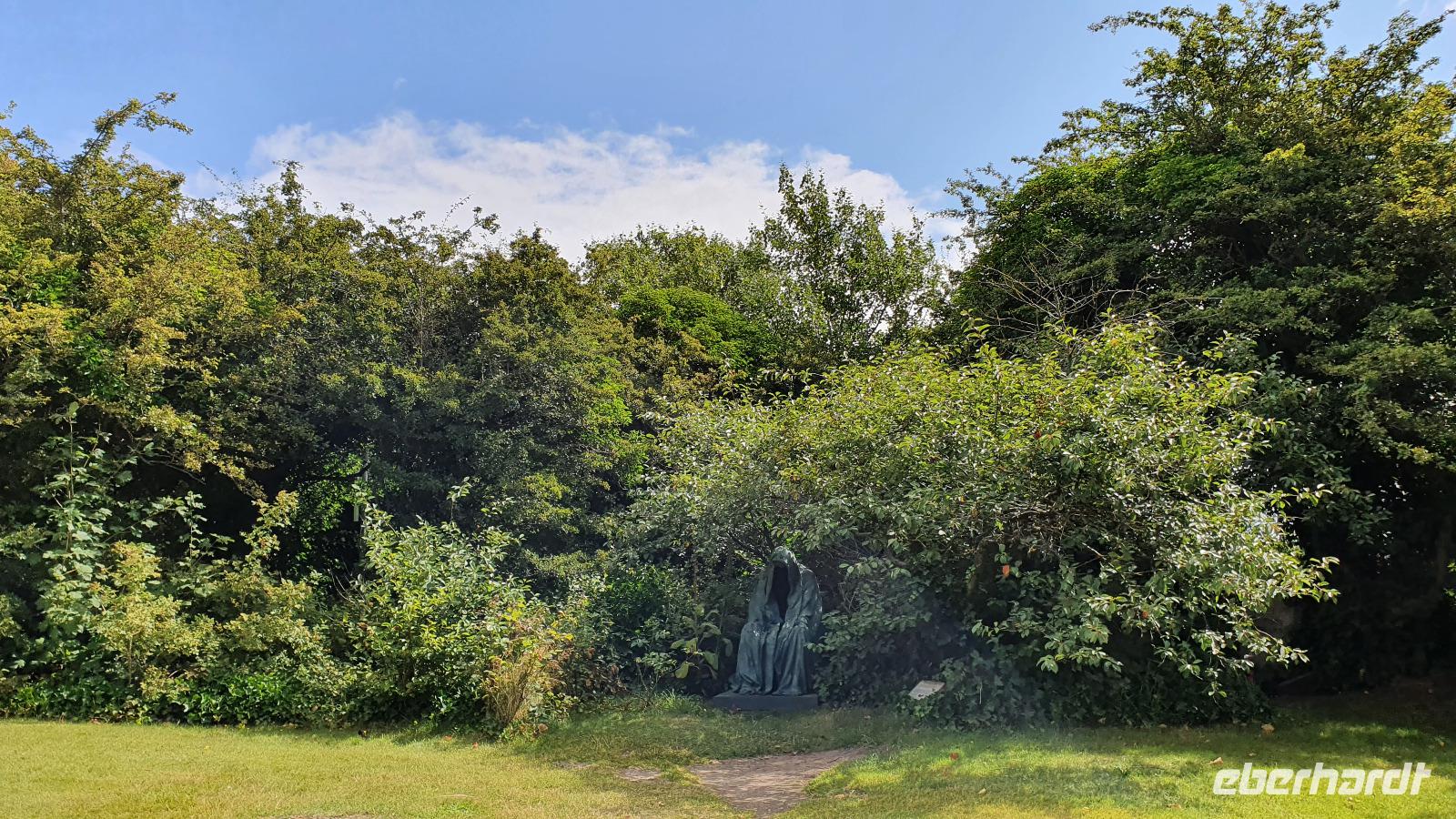 Hier ist die Severinkirche einen Fotostopp wert. Auch wenn sie leider geschlossen ist, so kann man doch einen Blick ins Innere erhaschen. Skulpturen herum laden ein wenig zum Verweilen ein und auch die sprechenden Grabsteine. Sie erzählen die Geschichten der Menschen, die hier begraben wurden. Hilke erzählte, dass es früher zu Lebeiten nicht üblich war, groß über sein Leben zu reden- dann tat man das eben nach dem Tode. Natürlich darf auch