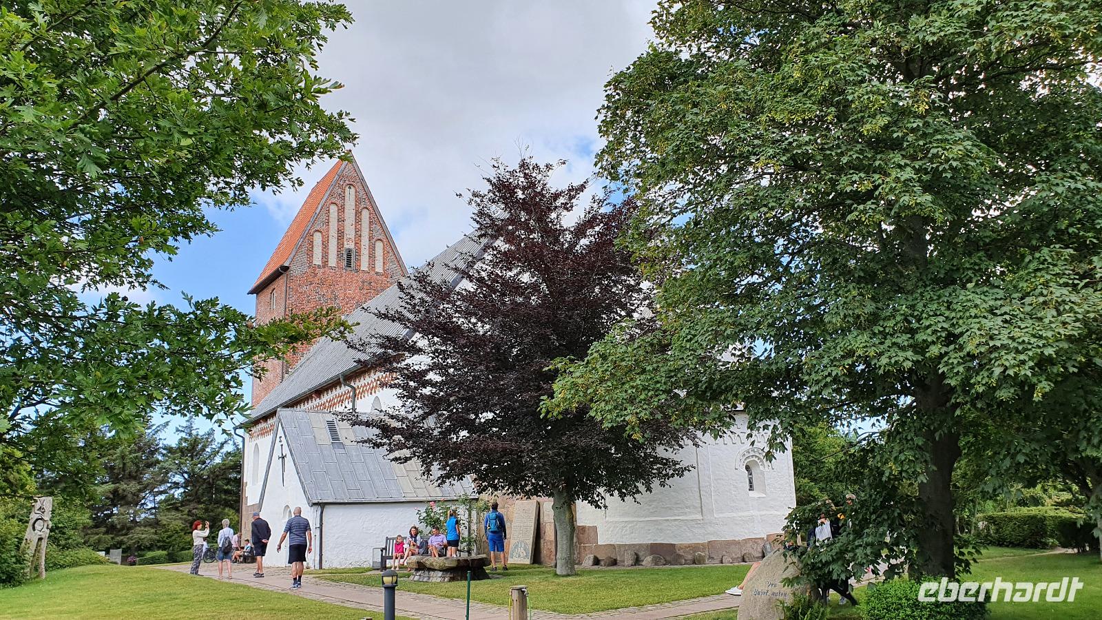 Hier steht die St. Johanniskirche. Sie erzählt von den großen Fluten, in denen Hunderte ertranken, Häuser und Kirchen zerstört wurden. Was das Wasser wieder hergab wurde gesammelt und wiederverwendet. So stammen Taufbecken und Kanzel aus der in der großen Mandrenke 1634 zerstörten Osterwohlder Kirche. Umgeben ist die Kirche von einem Friedhof, dessen Grabsteine ebenfalls interessante Geschichten erzählen. Auf der