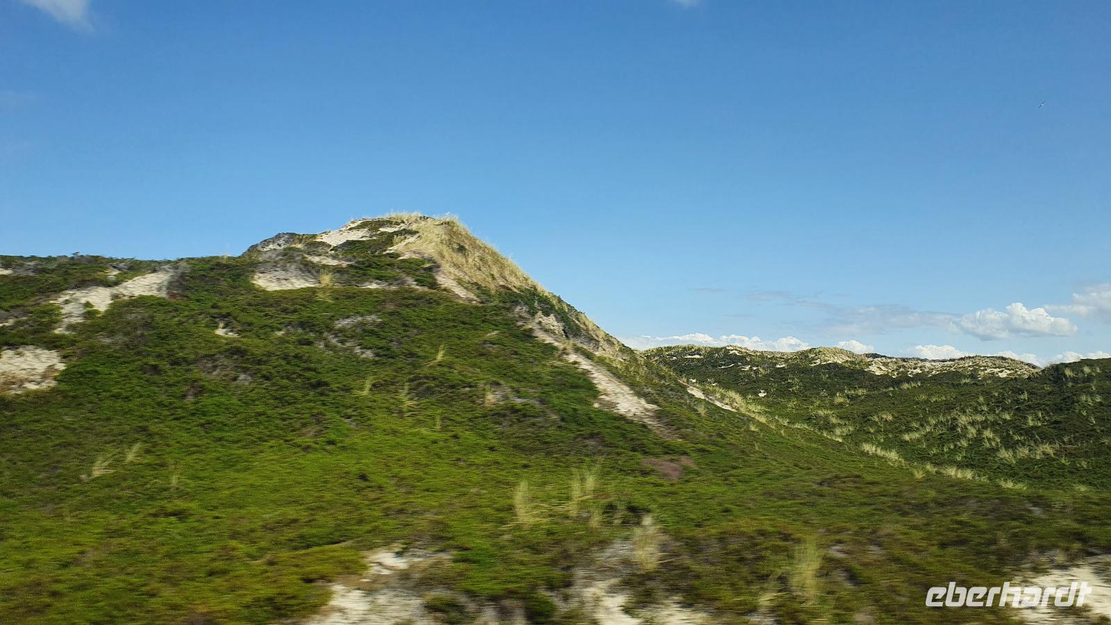 Schon heißt es wieder: alle Einsteigen. Wir verlassen die Fähre und Hilke zeigt uns das Lister Land. 1/8 der Insel ist Naturschutzgebiet, dazu zählen die Dünen hier. Sie wurden erst Mitte des 19. Jahrhunderts befestigt. Der Strandhafer wurzelt bis zu 14 Meter tief und hält den Sand fest. Einzelne Dünen sind jedoch nicht befestigt. Als Wanderdünen bewegen sie sich 2-4 Meter pro Jahr. Die höchste der Dünen hier ist 52 Meter hoch und heißt: Uwe-Düne. Dieser Mann hatte sich gegen die hohen Steuern stark gemacht und wurde vom dänischen König kurzerhand geköpft. Wir fahren am längsten Haus Deutschlands vorbei- 600 Meter lang wurde es einst als Windschutz gebaut. Zum Ellenbogen können wir leider nicht, das ist für Busse gesperrt und so hören wir nur vom Königshafen an seiner Spitze. Es sollte dem dänischen König damals Schutz vor den Sturmfluten bieten. Auch eine Austern- Zucht gibt es, die Austern filtern das Wasser, dass- wäre der Salzgehalt nicht- durchaus Trinkwasserqualität hätte. Immerhin filtert eine Auster bis zu 20 Liter Wasser pro Stunde. So erreichen wir
