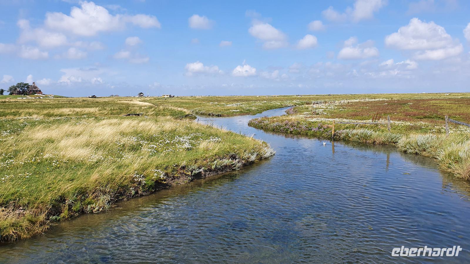 - kann man sich im Sturmflutkino von der Macht des Wassers eindrucksvoll überzeugen lassen, der Königspesel (heißt so, weil hier der dänische König übernachtete bei einer Flut) lädt ein, das Leben und die Bedingungen auf einer Hallig kennenzulernen, die Schutzstation Wattenmeer informiert über die Besonderheiten, die Galerie hat eine einzigartige Sammlung: Schuhe, angeschwemmt auf der Hallig, Cafes und Imbiß laden zur Pause ein. Wer möchte spaziert oder fährt zur