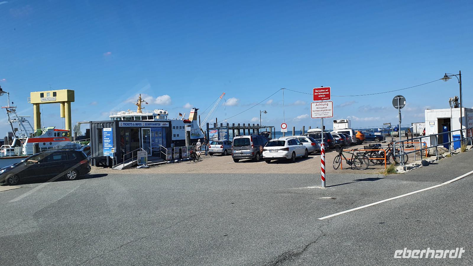 Hier ist auch der Anleger und wir verlassen die Fähre. Siegessicher marschiere ich zu einem Bus an der Haltestelle, der uns eine Runde um die Insel fahren sollte. Leider hatte ich den falschen erwischt- unser Bus mit Kalli- seinem Fahrer- hatte es gut gemeint und direkt unterhalb der Anlegestelle geparkt. Also alle wieder zurück und erst einmal ein herzliches "Moin Moin". Kalli erzählte vom neuen Hafen, der 1965-1970 gebaut werden mußte. Die Inselversorgung erfolgte größtenteils über die Fähren und dafür war der "alte" einfach zu klein. Der ist nun ein