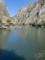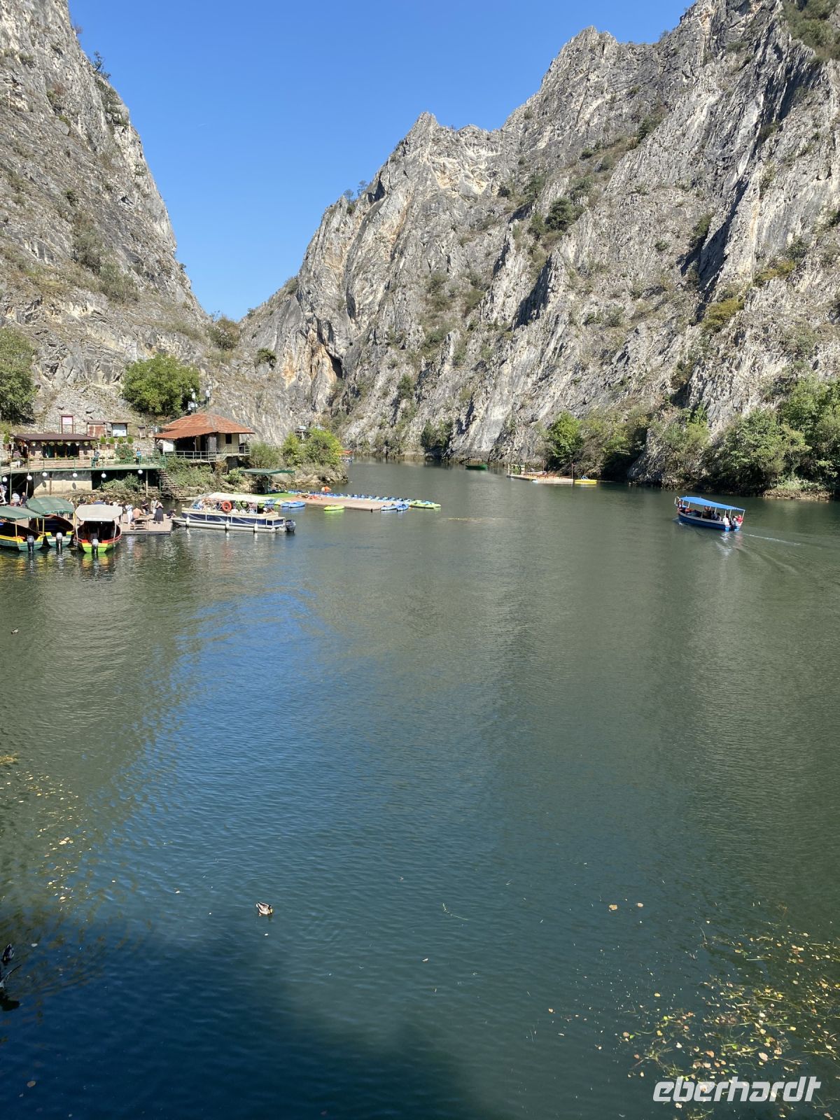 Zunächst besuchen wir ein beliebtes Ausflugsziel der Hauptstädter, die Matka-Schlucht und den Stausee. Nach einem kurzen Spaziergang gelangen wir an die Bootsanlegestelle. Es sind noch andere Gruppen da, wir vertreiben uns die Wartezeit mit Fotografieren und kleinen Abstechern in die Umgebung.