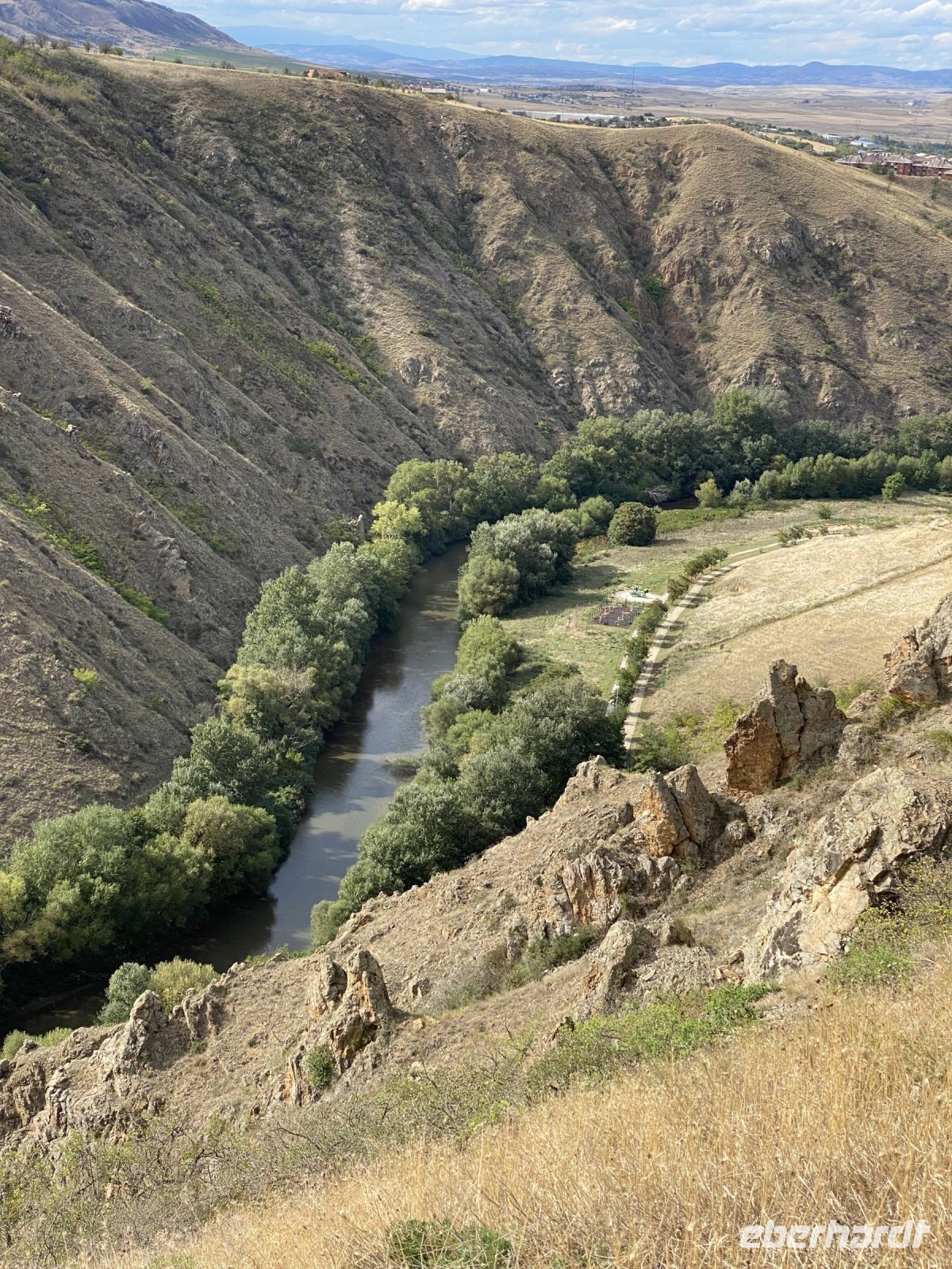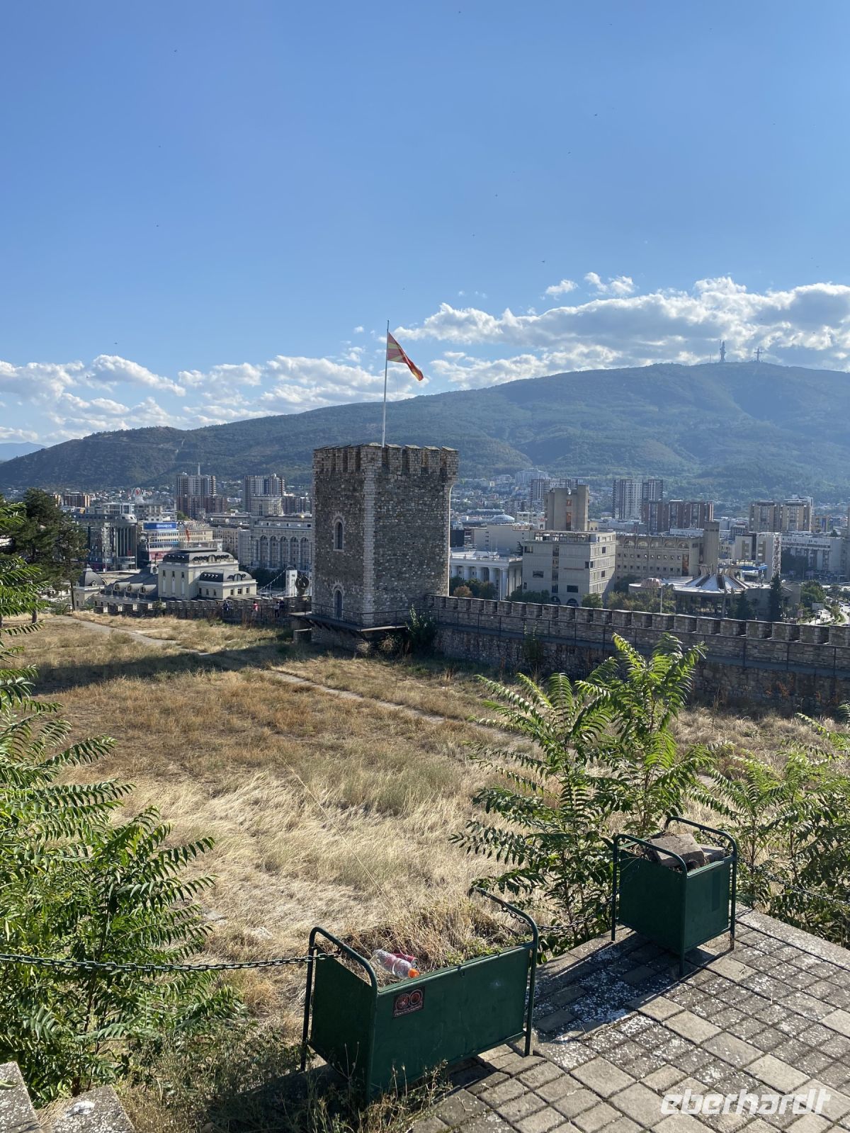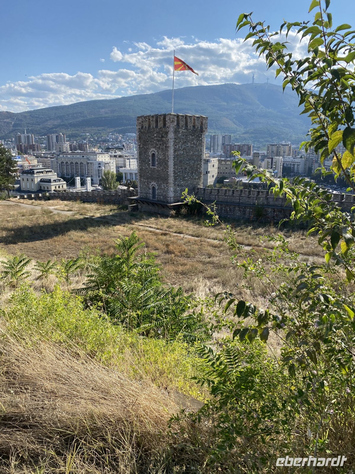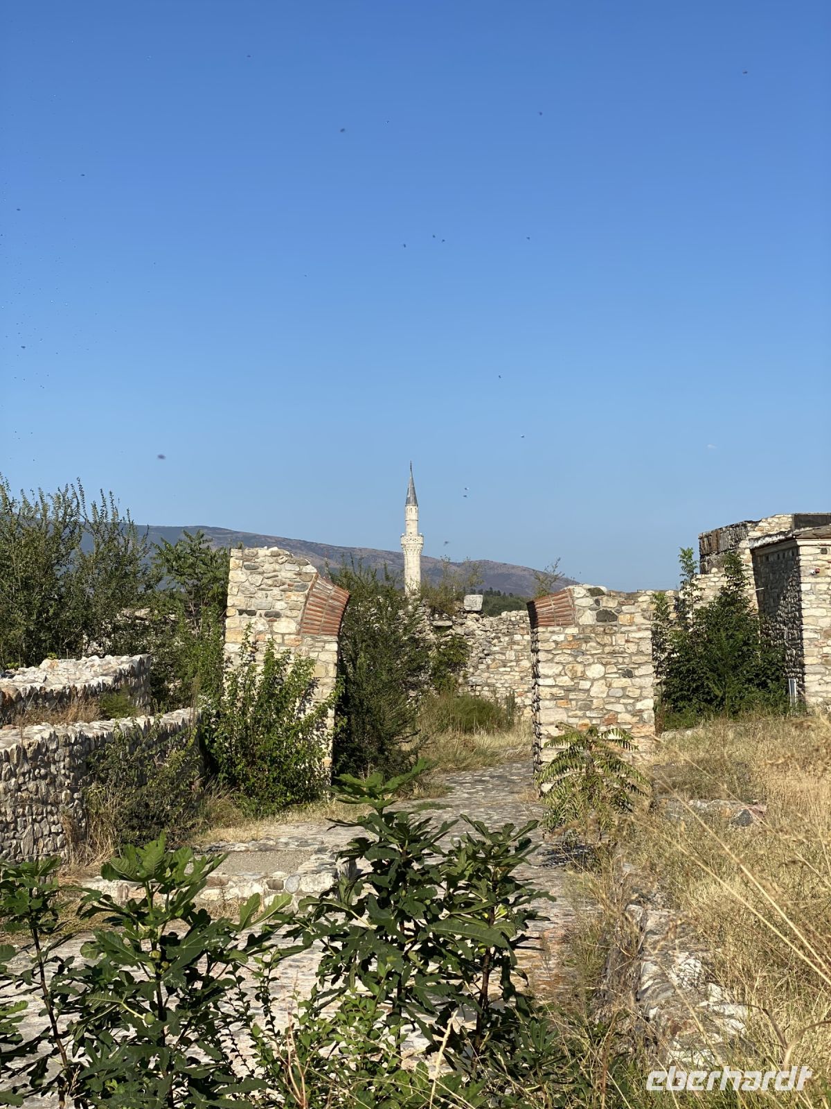Solcherart erfrischt fahren wir nun in die Stadt Stip, früher wegen seiner umfangreichen Textilindustrie auch jugoslawisches Manchester genannt. Unser Ziel ist allerdings nicht die Industrie, sondern es sind die Reste der Burg Isar. Sie befinden sich auf einem Hügel, der mit ziemlich vielen Stufen zu erklimmen ist. Die Mauerreste sind unspektakulär, aber der Blick von oben auf die Stadt und den Fluss Bregalnica ist beeindruckend.