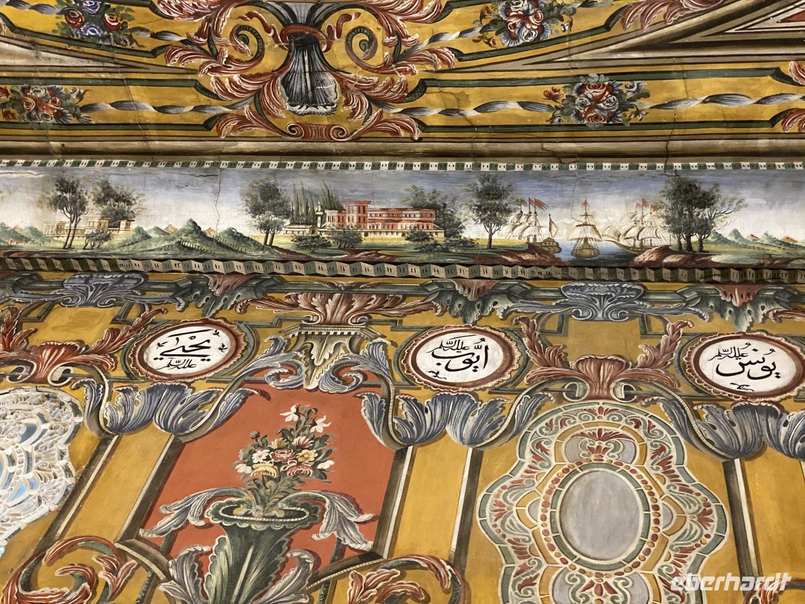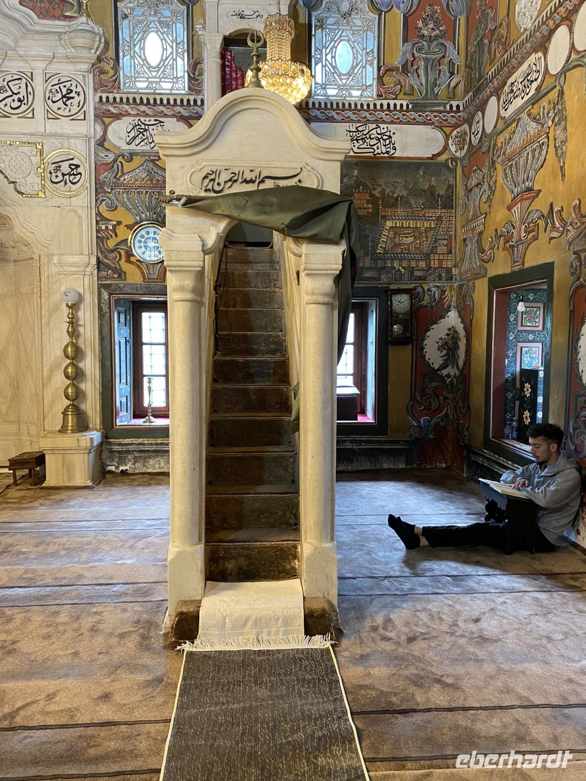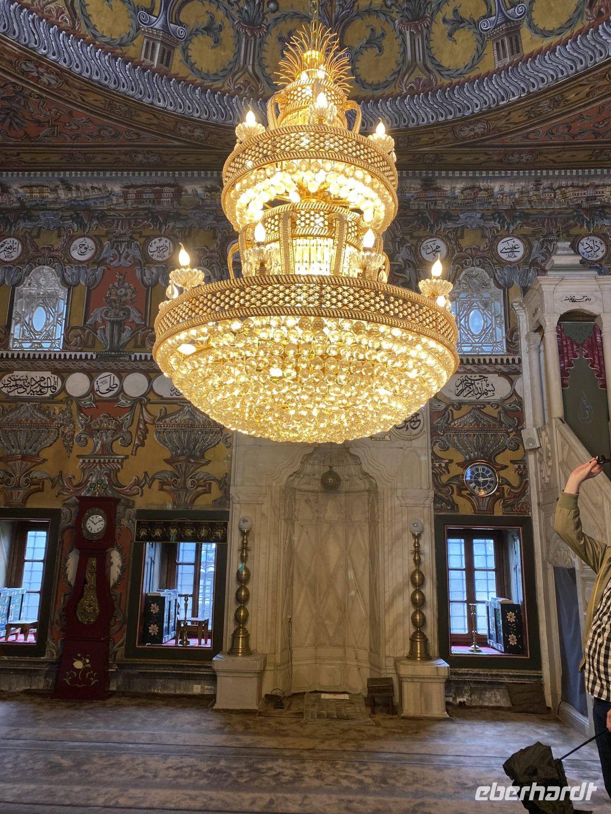 Leider zeigt sich das Wetter heute nicht von seiner freundlichsten Seite, es regnet. Aber wir lassen uns die Laune nicht verderben und steuern mutig unser erstes Ziel an, die Stadt Tetovo. Das ist ein Zentrum der albanischen Bevölkerung und besitzt einen interessanten Komplex aus Moschee, Derwischkloster und Hamam. Wir besichtigen die Sarena-Moschee, wegen ihrer reichen farbigen Bemalung innen und außen wird sie auch Bunte Moschee genannt. Es wird berichtet, dass man für die Tempera-Farben 30.000 Eier verarbeitete.