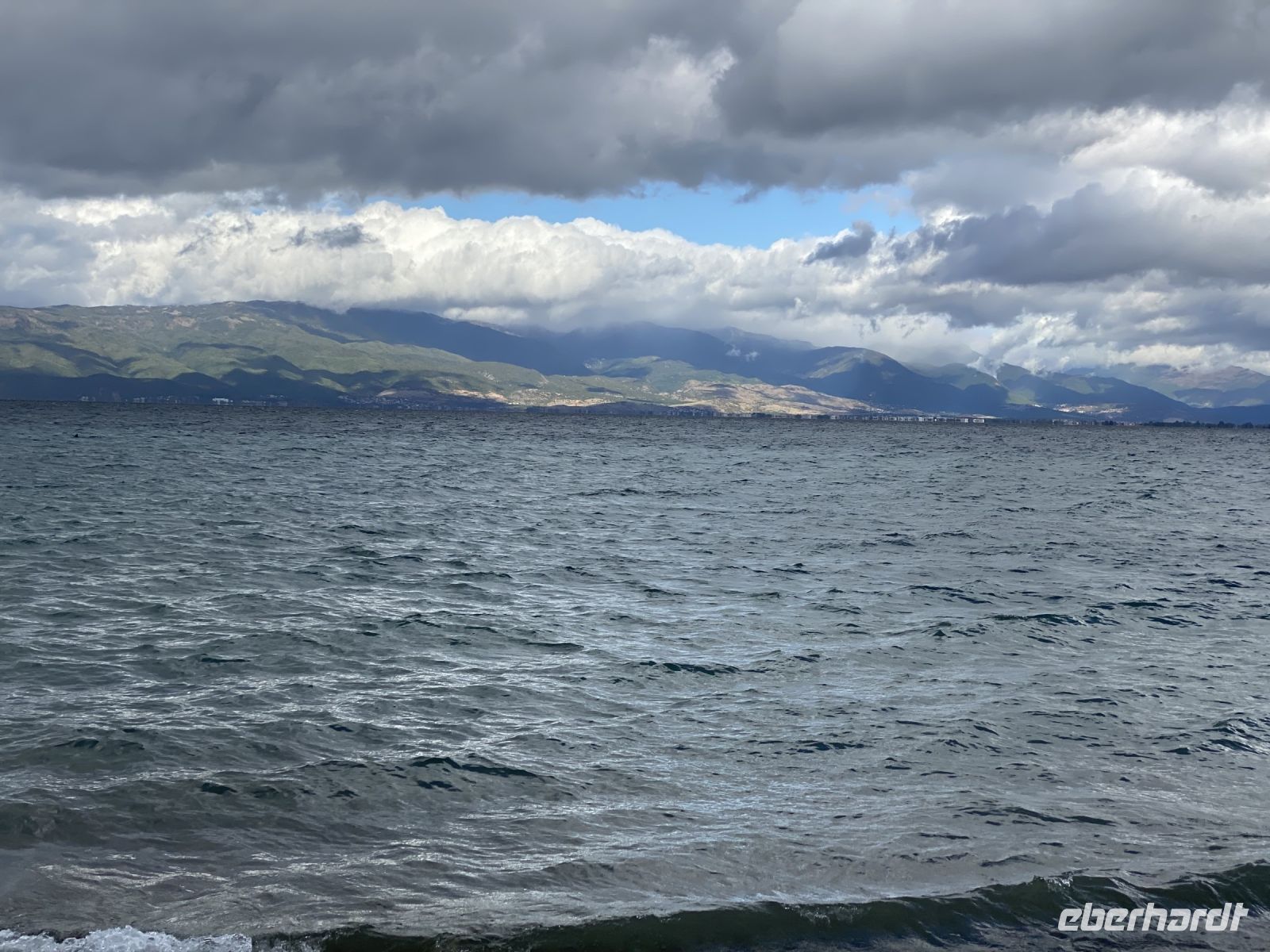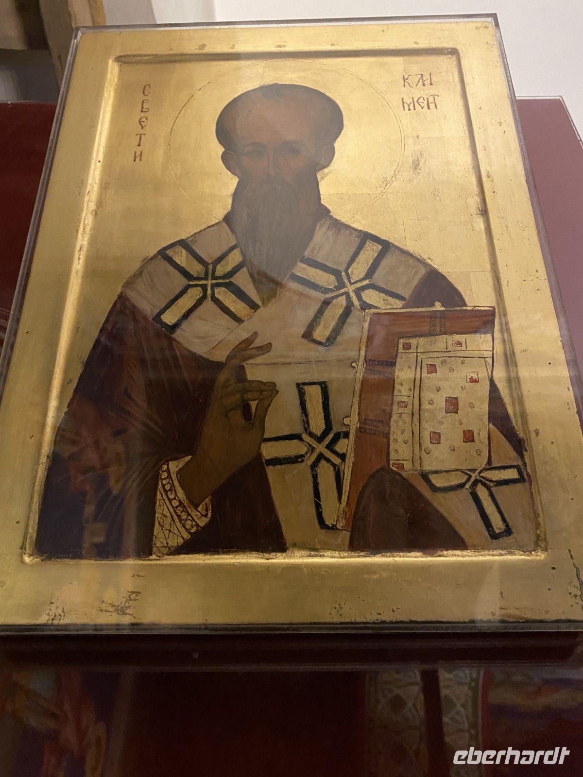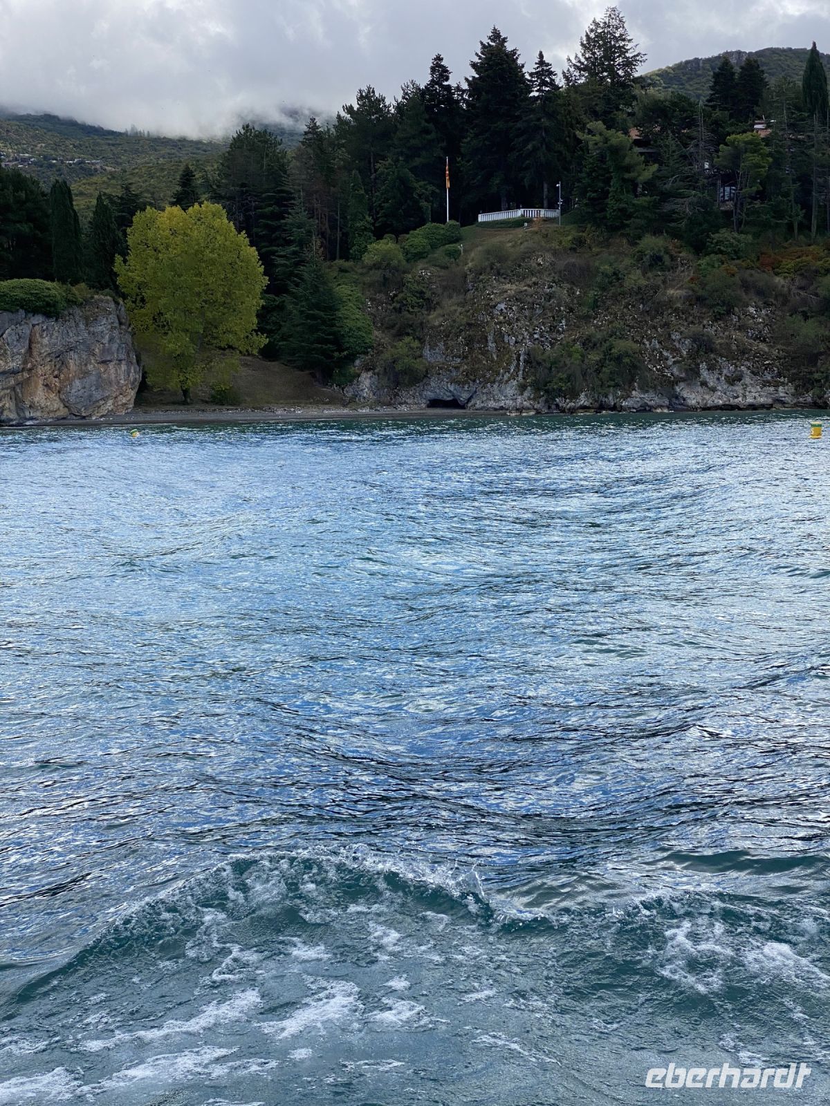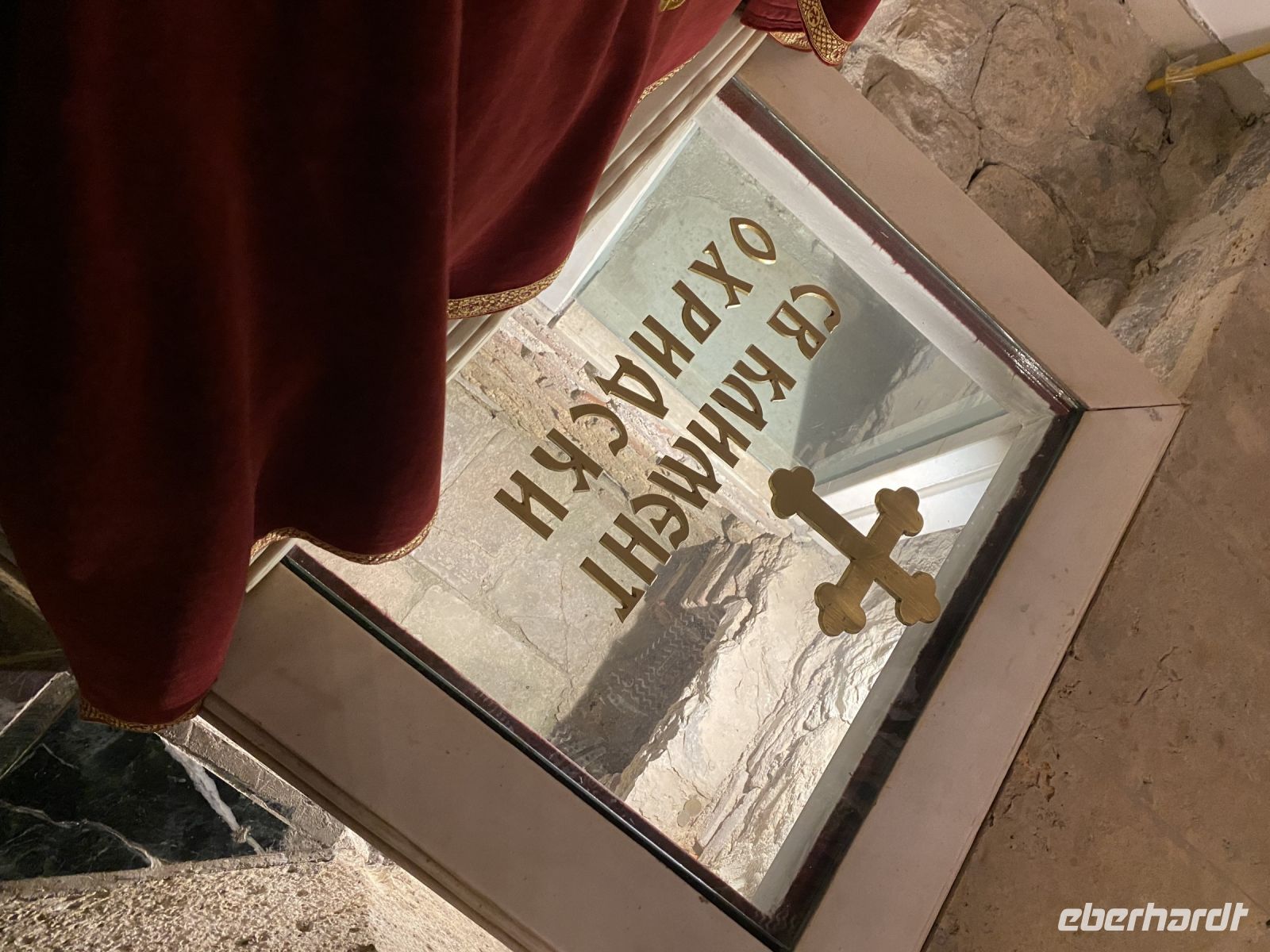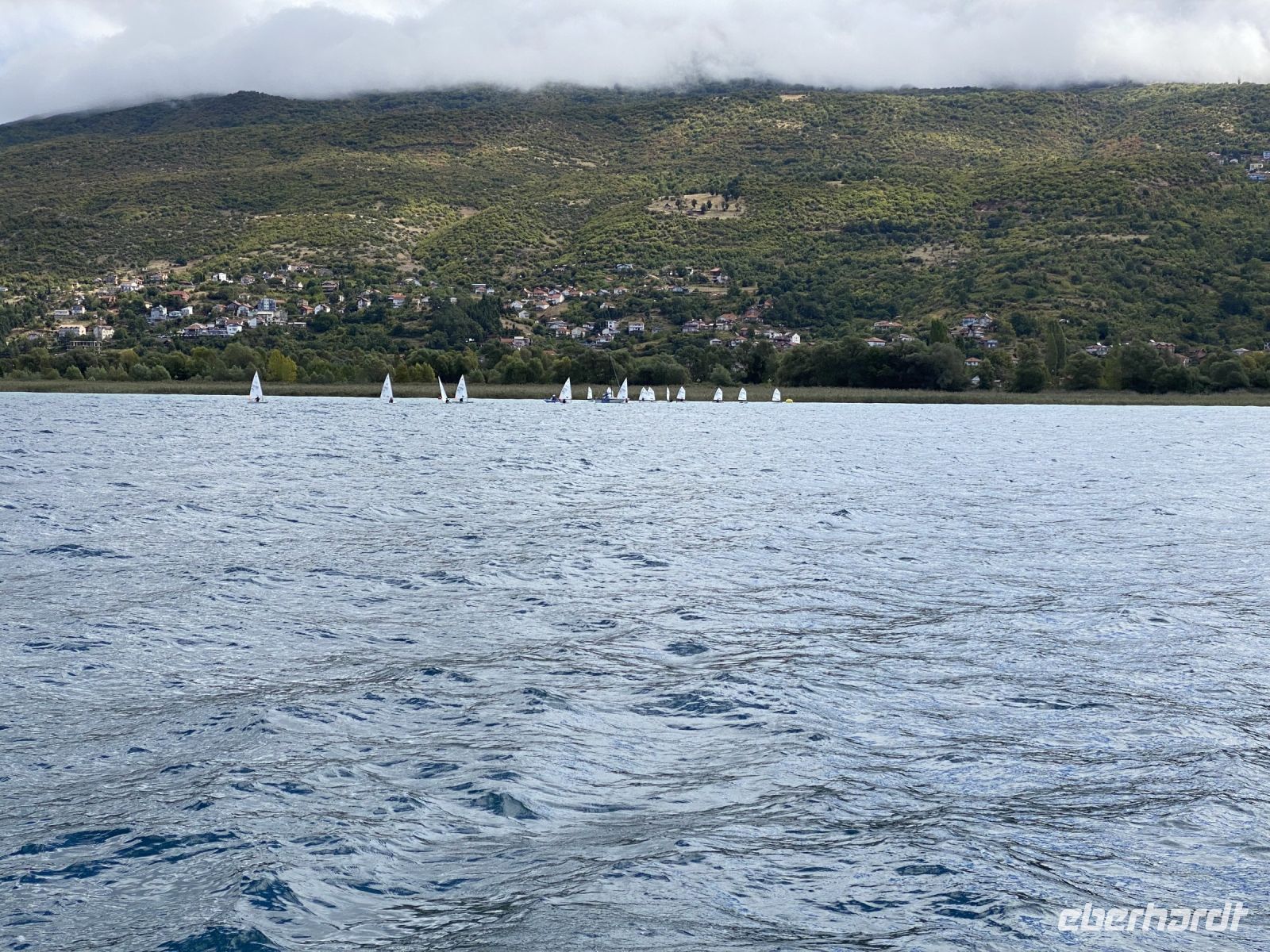Noch weiß der Himmel nicht recht ob er lachen oder weinen soll, aber wir stechen dennoch frohgemut in den See und unser Mut wird belohnt, es hellt sich auf und wir können die Fahrt zum Kloster Sv. Naum genießen. Das Kloster beherbergt die sterblichen Überreste des heiligen Naum. Da er zu Lebzeiten als Wunderheiler galt, glaubt man noch heute an seine Kräfte und hofft, nach einer Berührung seines Sarges einen Wunsch erfüllt zu bekommen. Wichtiger als die Wunderkräfte waren Naums Bemühungen um die Schaffung der slawischen Schriftsprache, gemeinsam mit Kyrill und Method entwickelten sie die kyrillischen Buchstaben.