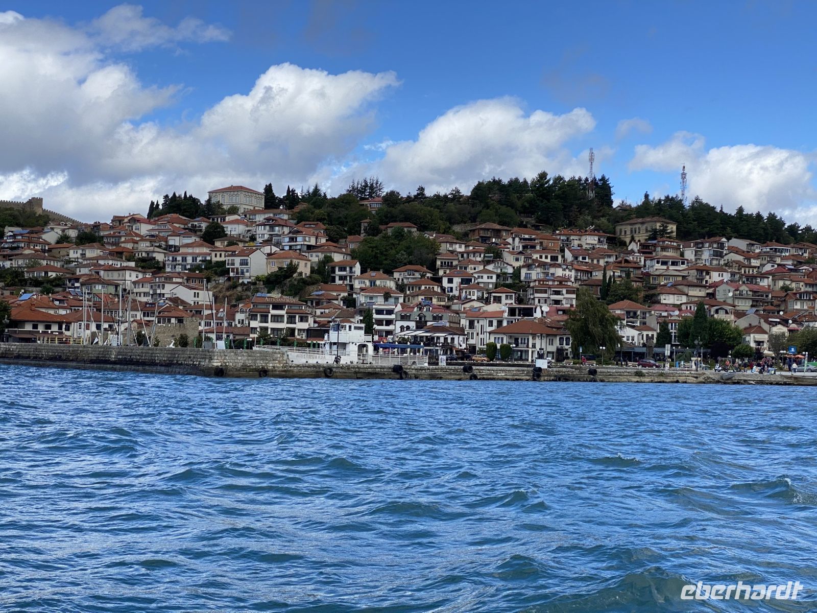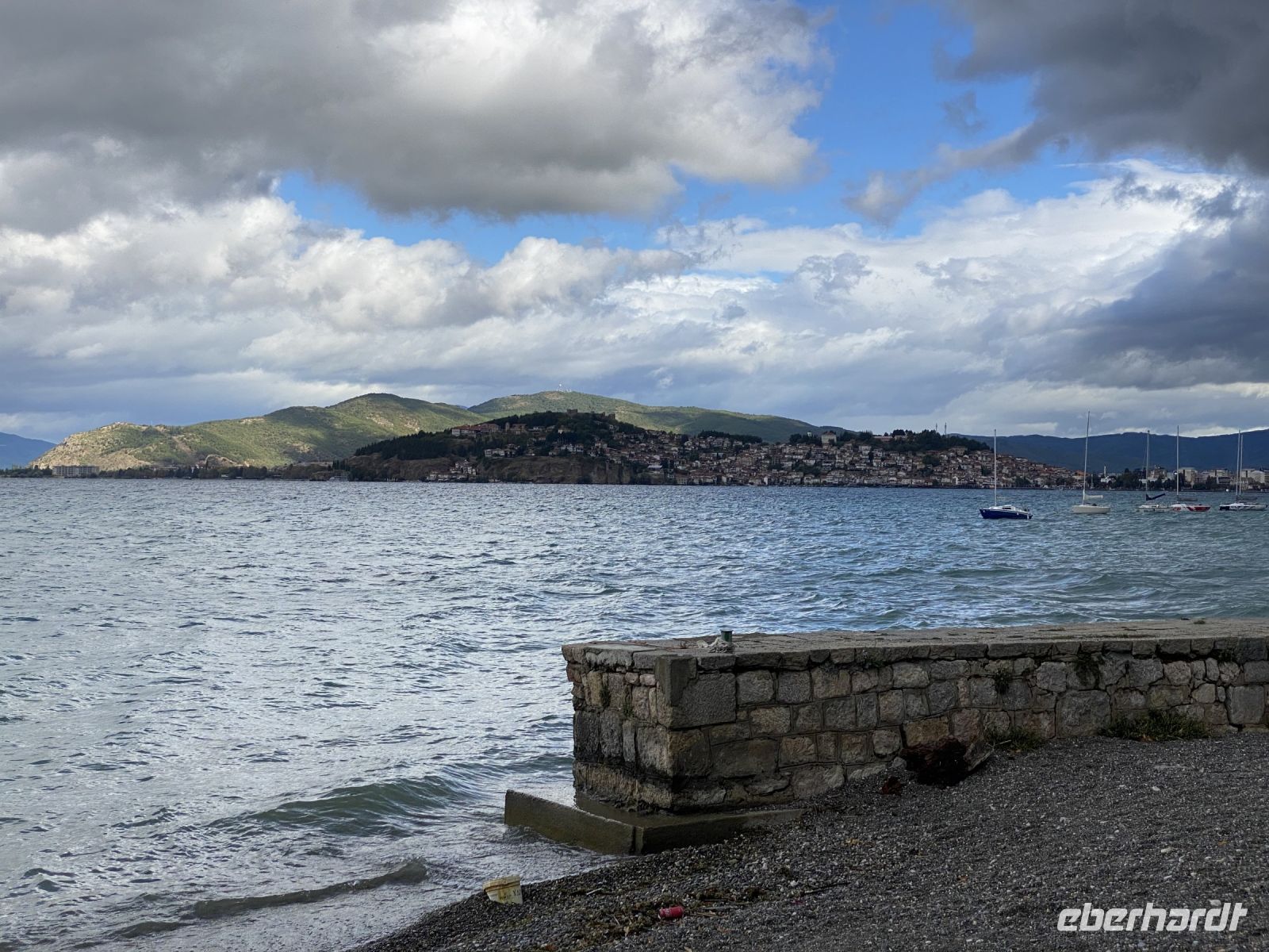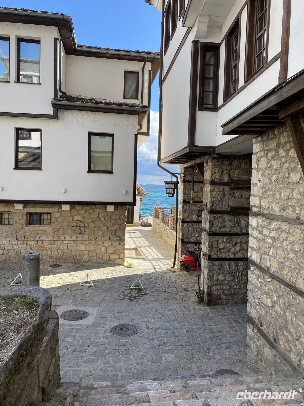 Das antike Theater hat leider keinen Seeblick mehr, ist aber dennoch hübsch anzusehen. Von außen sehen wir noch die Kathedrale Sv. Sophia mit dem doppelstöckigen Narthex, dann sind wir wieder in der Unterstadt. Alte Kaufmannshäuser zeugen vom früheren Erwerb und Reichtum der Stadt, die zusammen mit dem See UNESCO Welterbe ist.