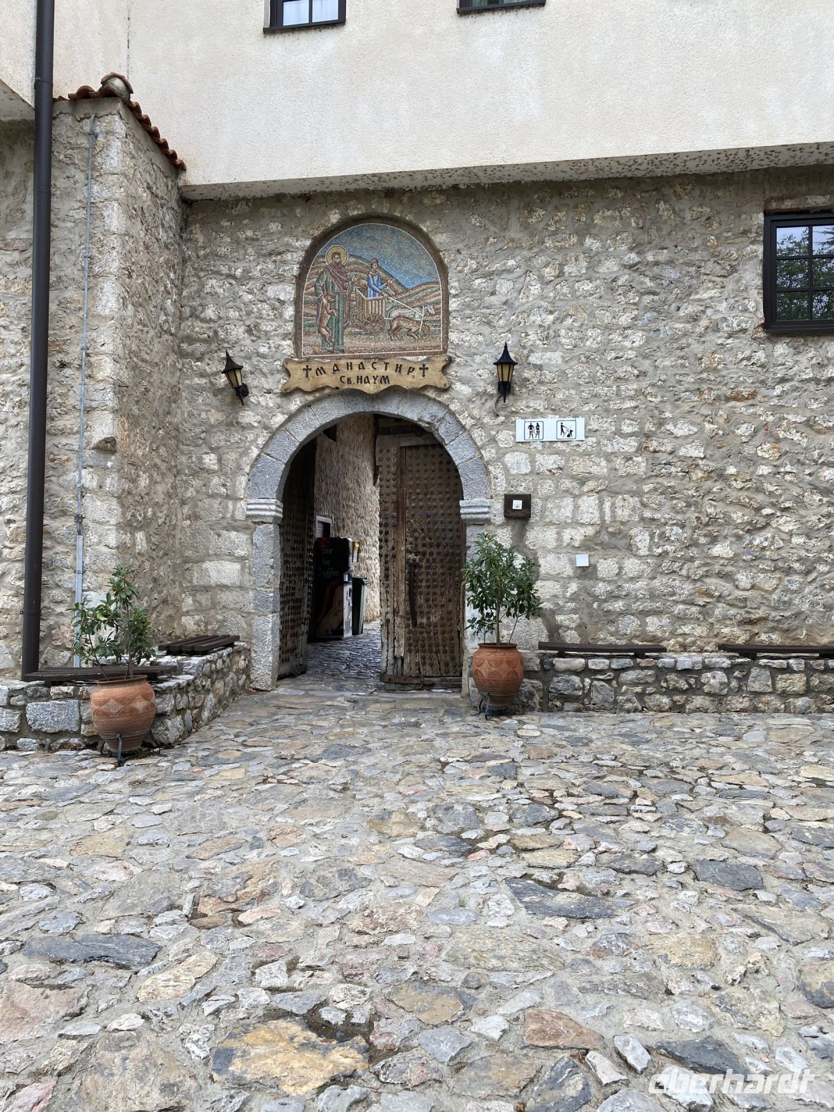 Neben dem Kloster befindet sich ein hübsches Restaurant und so nutzen wir die Möglichkeit für einen Mittagsimbiss, bevor wir unsere Fahrt nach Ohrid fortsetzen. Dort kommen wir gegen 17:00 Uhr an und beziehen unser Hotel, zwar am See, aber recht weit vom Zentrum der