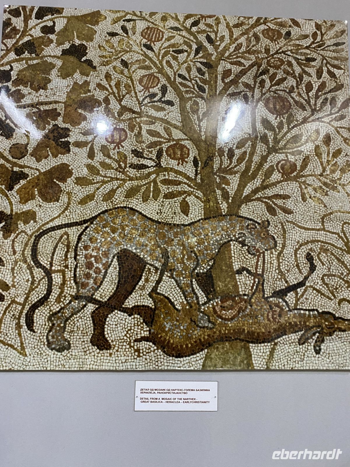 Unsere Fahrt durch die fruchtbare Ebene Pelagonien, oft auch als Kornkammer Mazedoniens bezeichnet. Das erste Ziel ist Herakleia Lyncestis, wahrscheinlich im 4. Jahrhundert vor Christus von Philipp II. gegründet. Später fiel sie an die Römer und wurde zu einer Station auf der Via Egnatia. Erdbeben und der Niedergang des rmischen Reiches führten zum Verfall der Stadt und sie wurde verlassen. Heute kann man ein mehr als 100 m² großes Mosaik bewundern, es zierte einst den Boden des Narthex eine großen Basilika. Im Museum sieht man weitere einzelne Fundstücke, die vom Leben der Römer berichten.