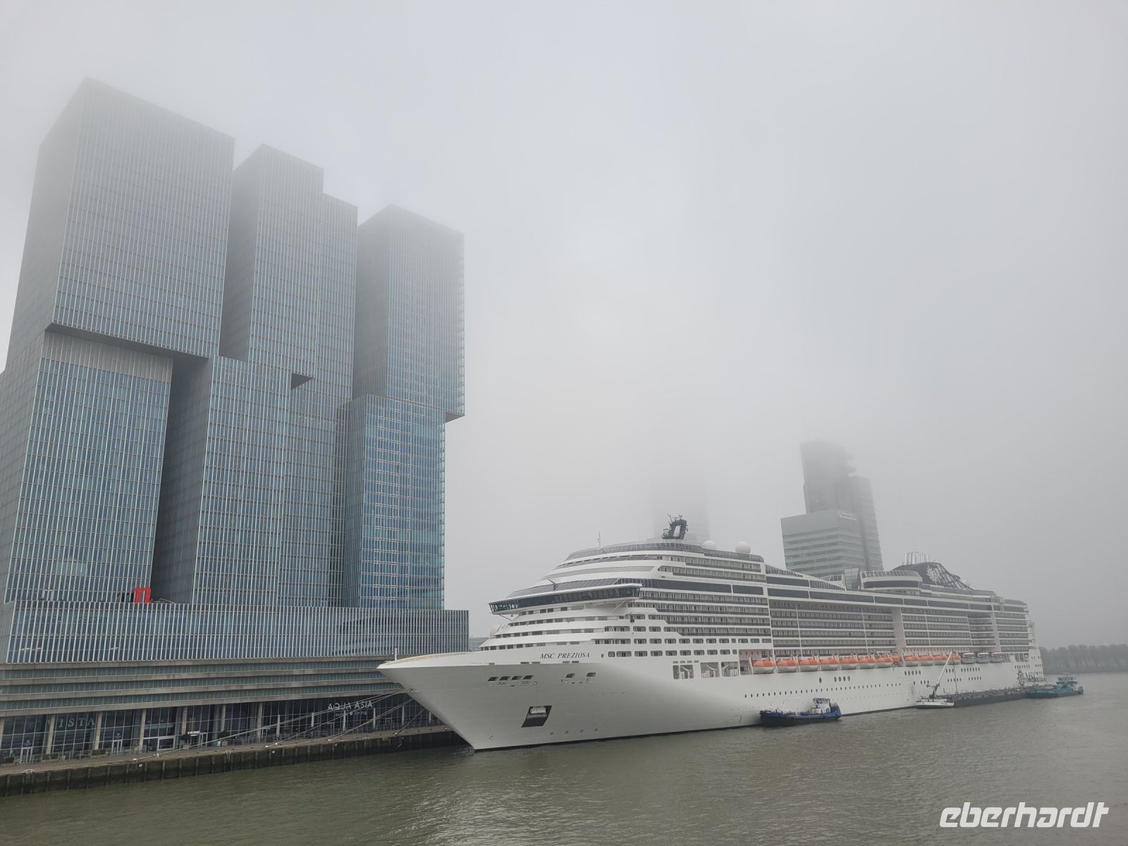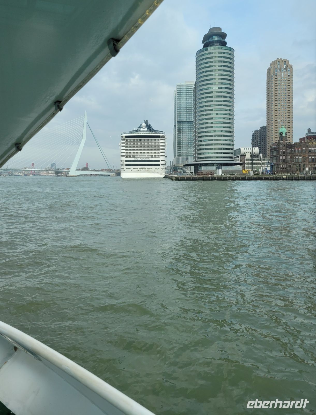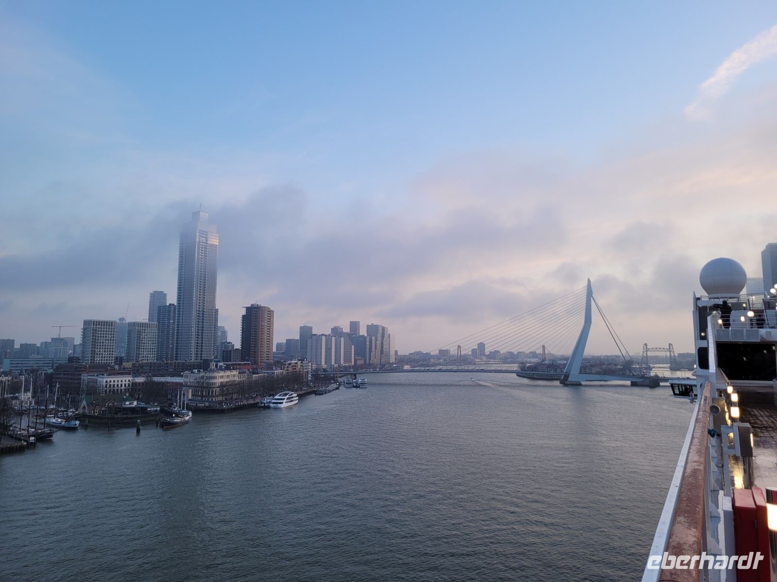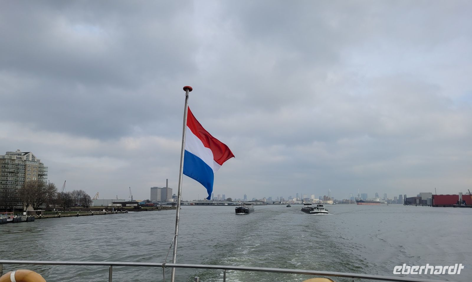Schon früh am Morgen fährt das Schiff über das Hoek van Holland auf der Oude Maas durch die gigantischen Hafenanlagen der niederländischen Metropole zum Zentrum. Hier wird direkt an der Erasmusbrug angelegt. Bequem lässt sich so das Zentrum mit der modernen Markthalle, den Kubus-Häusern und dem sehenswerten Museumshafen errollen. Nach einer Kaffeepause lernen wir dann bei einer Hafenrundfahrt den größten Hafen Europas noch näher kennen, bevor nach einem erlebnisreichen Tag wieder an Bord unseres Schiffes gehen. Die meisten von uns nutzen heute für das Abendessen das aussichtsreiche Büffetrestaurant in einem der obersten Decks um hautnah das Auslaufen und die Passage entlang der Maas zurück in die Nordsee zu erleben.