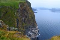 Am hohen Vogelfelsen angekommen sehen wir Basstölpel und Papageientaucher brüten. Zwei Seeadler umfliegen den Vogelfelsen.