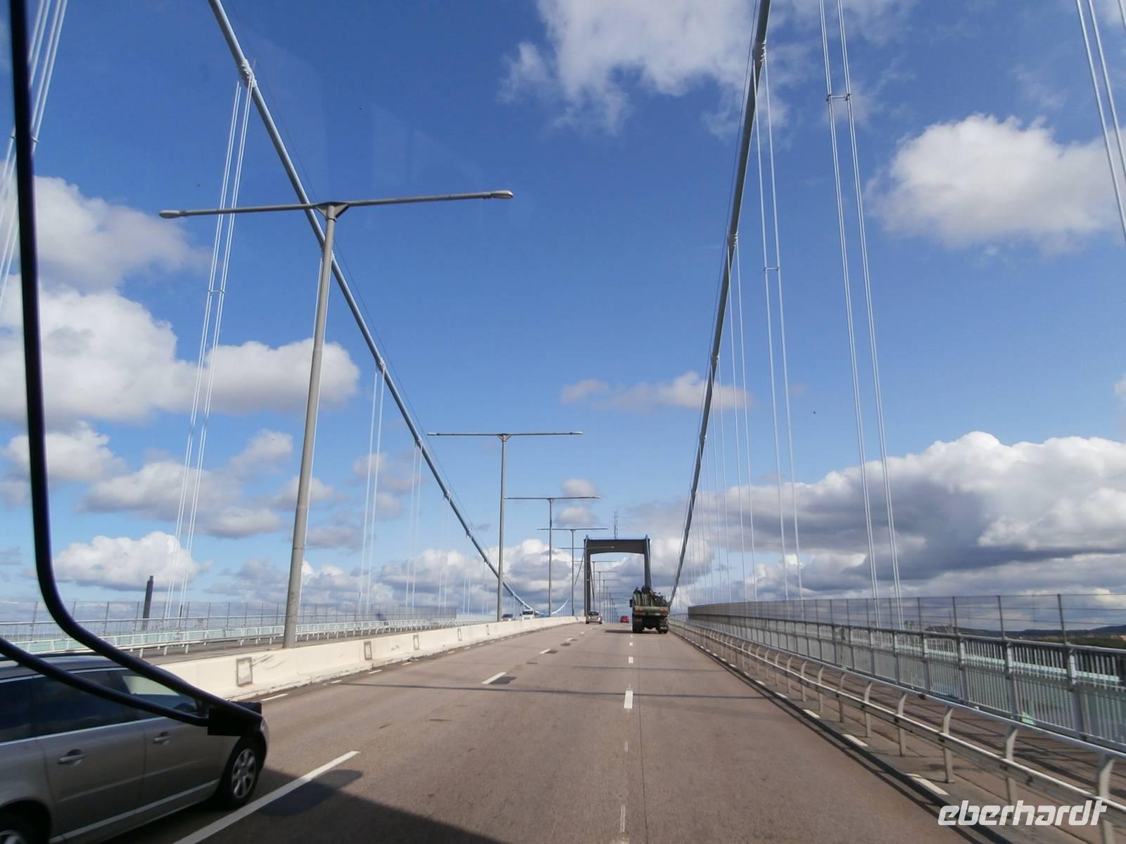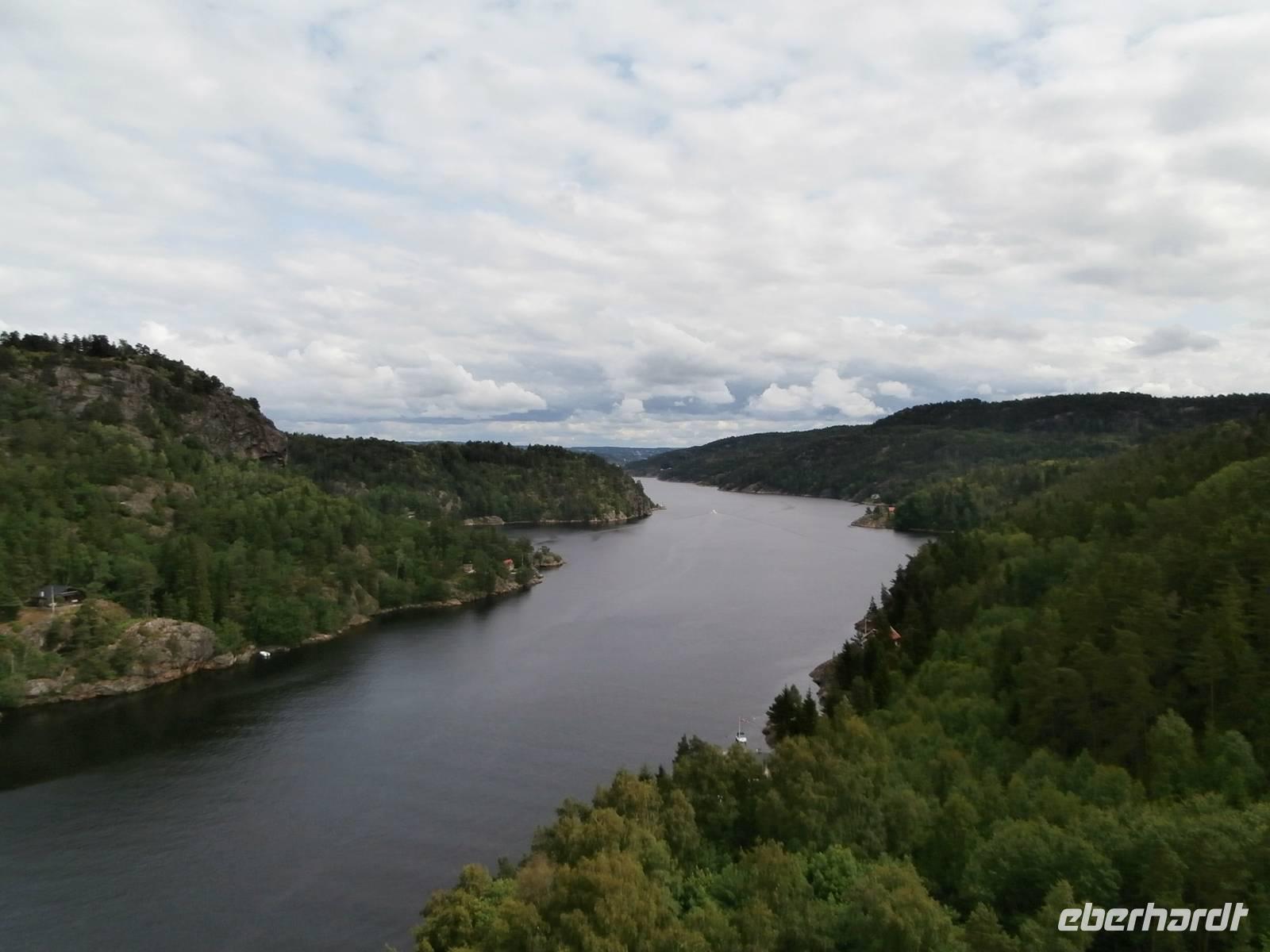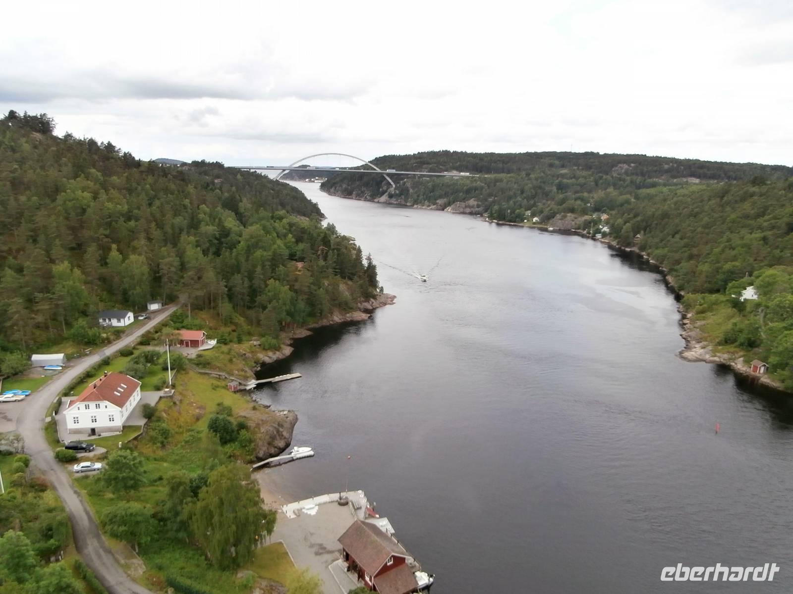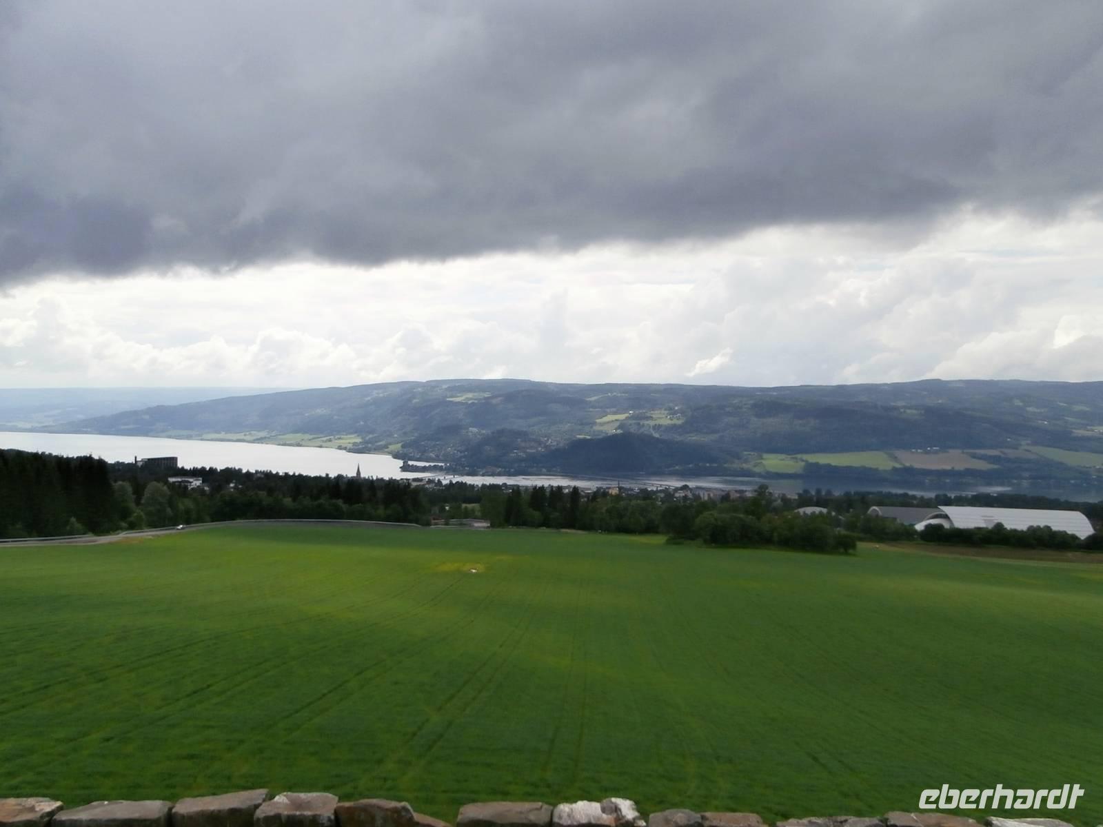 Pünktlich legt unsere Fähre in Göteborg an und gemeinsam gehen wir von Bord und Frank, unser Chauffeur, kommt mit unserem Bus auch schnell vom Schiff. Erste Fotos von der fantastischen Älvsborgbron werden geschossen und im Anschluss fahren wir auch über diese schöne Brücke von Göteborg weg. Entlang der schwedischen Küste über Sarpsborg bis hinein nach Oslo geht unsere Fahrt. Kurz vor der Neuen Svinesundbrücke biegen wir ab und nehmen Kurs auf die alte Brücke, über sie laufen wir zu Fuß-ein schönes Erlebnis. In der Mitte markiert ein Schild die norwegische Grenze. Einen schönen Blick auf die neue Brücke und den Svinesund können wir haben und im Bild festhalten. Gemeinsam überqueren wir dann im Bus die Grenze zu Norwegen.In Halden legen wir nochmal einen Stopp ein, hier gibt es Mittag und in der Tourist Info gutes Prospektmaterial. Die norwegische Hauptstadt am Oslofjord umfahren wir, es geht heute gleich hinauf zum Holmenkollen, denn bei dem Wetter wollen wir die neue Schanze sehen und die herrliche Aussicht auf den Oslofjord und das Scherengebiet genießen. Wir verlassen die Stadt und setzen unsere Fahrt in Richtung Nord, am größten See Norwegens dem Mjösasee, fort. Auch hier auf der Strecke wird tüchtig am Ausbau der E6 gebaut, aber bis zum Quality Hotel Strand in Gjovik kommen wir ohne große Verzögerung gut voran. Heute wird hier übernachtet und bei Anfahrt zum Hotel sehen wir auch den alten Dampfer, den weißen Schwan des Mjösasee, im Wasser liegen.