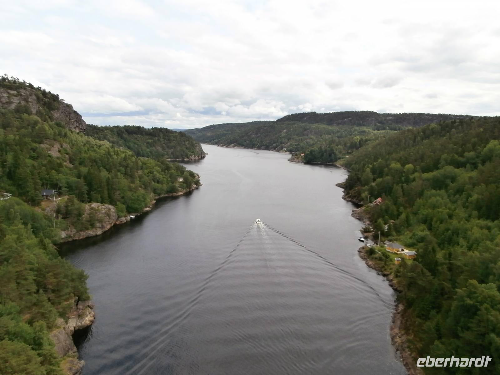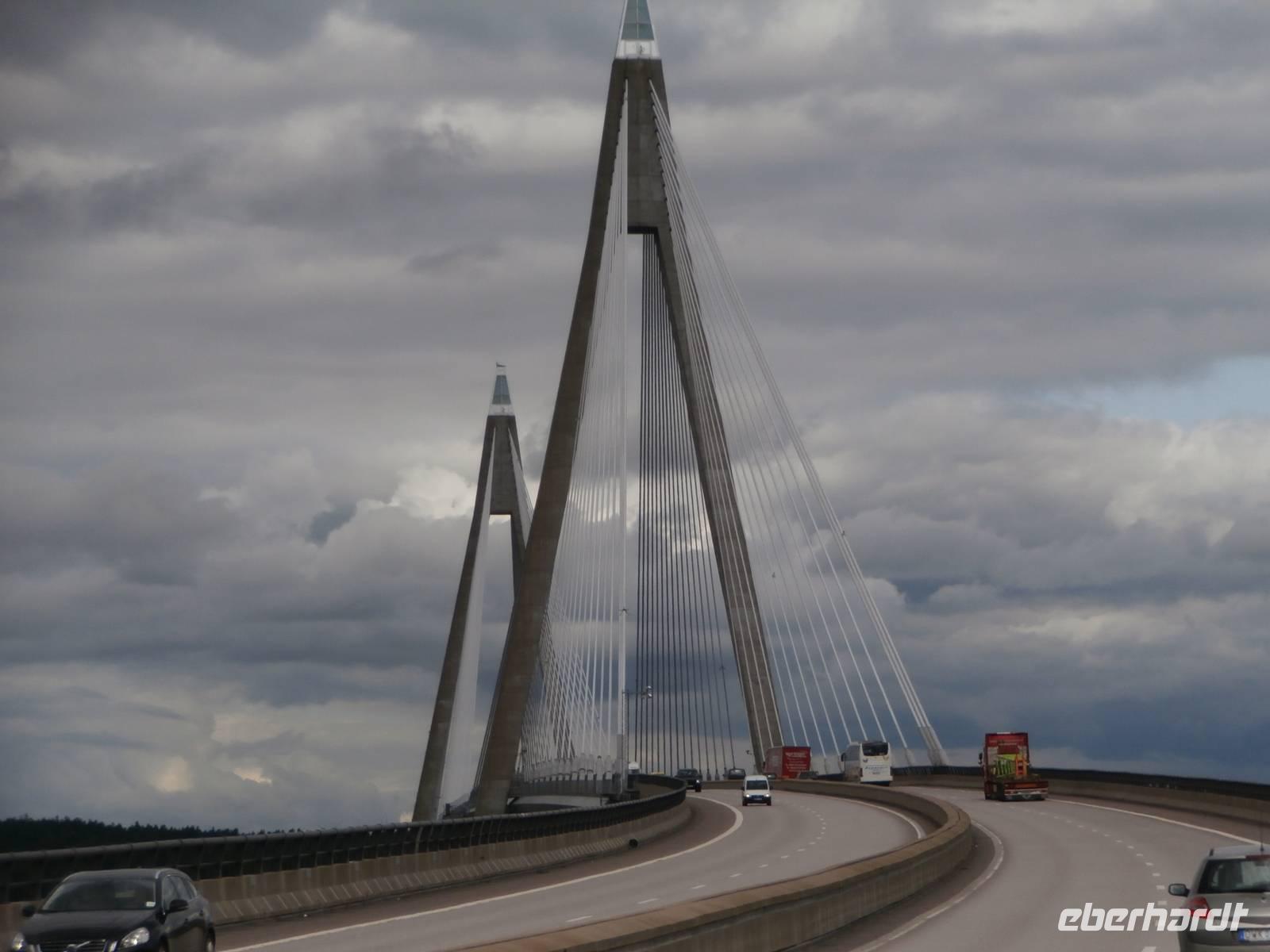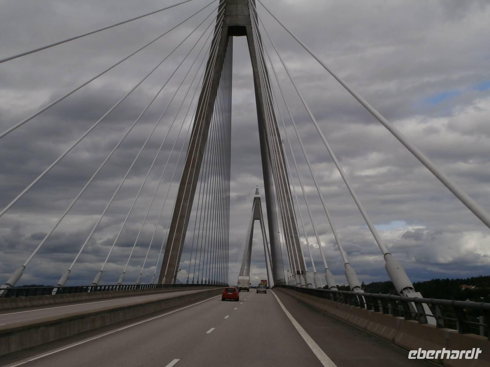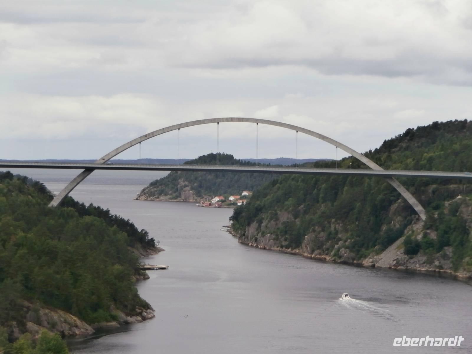 Pünktlich legt unsere Fähre in Göteborg an und gemeinsam gehen wir von Bord und Frank, unser Chauffeur, kommt mit unserem Bus auch schnell vom Schiff. Erste Fotos von der fantastischen Älvsborgbron werden geschossen und im Anschluss fahren wir auch über diese schöne Brücke von Göteborg weg. Entlang der schwedischen Küste über Sarpsborg bis hinein nach Oslo geht unsere Fahrt. Kurz vor der Neuen Svinesundbrücke biegen wir ab und nehmen Kurs auf die alte Brücke, über sie laufen wir zu Fuß-ein schönes Erlebnis. In der Mitte markiert ein Schild die norwegische Grenze. Einen schönen Blick auf die neue Brücke und den Svinesund können wir haben und im Bild festhalten. Gemeinsam überqueren wir dann im Bus die Grenze zu Norwegen.In Halden legen wir nochmal einen Stopp ein, hier gibt es Mittag und in der Tourist Info gutes Prospektmaterial. Die norwegische Hauptstadt am Oslofjord umfahren wir, es geht heute gleich hinauf zum Holmenkollen, denn bei dem Wetter wollen wir die neue Schanze sehen und die herrliche Aussicht auf den Oslofjord und das Scherengebiet genießen. Wir verlassen die Stadt und setzen unsere Fahrt in Richtung Nord, am größten See Norwegens dem Mjösasee, fort. Auch hier auf der Strecke wird tüchtig am Ausbau der E6 gebaut, aber bis zum Quality Hotel Strand in Gjovik kommen wir ohne große Verzögerung gut voran. Heute wird hier übernachtet und bei Anfahrt zum Hotel sehen wir auch den alten Dampfer, den weißen Schwan des Mjösasee, im Wasser liegen.