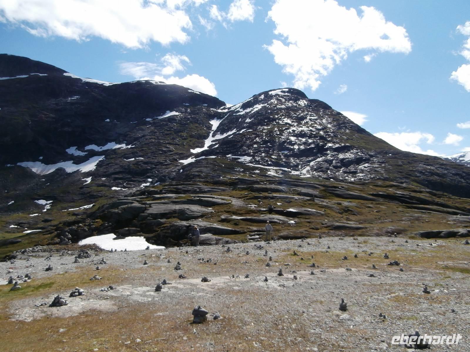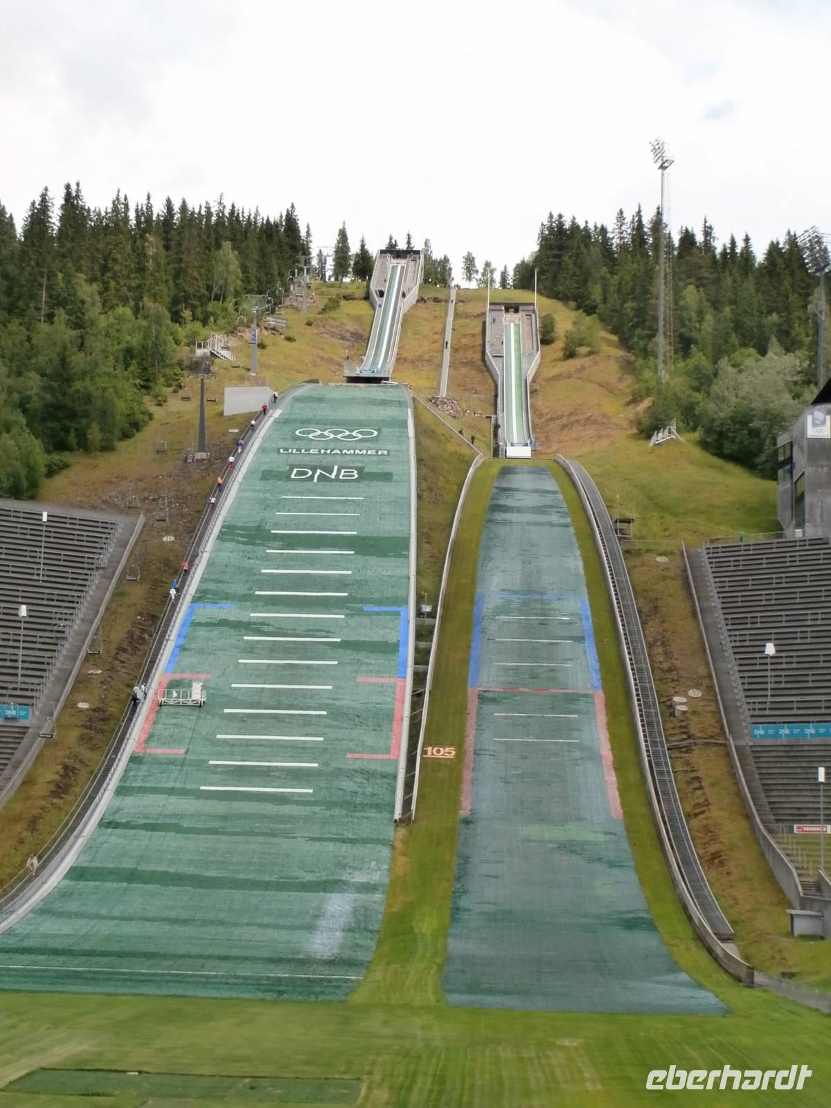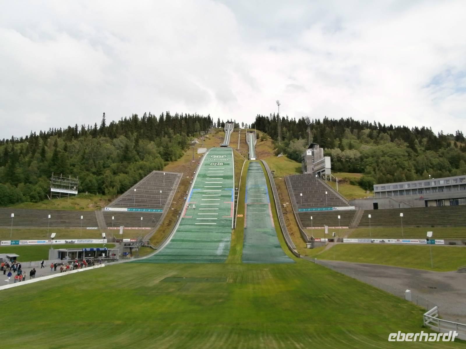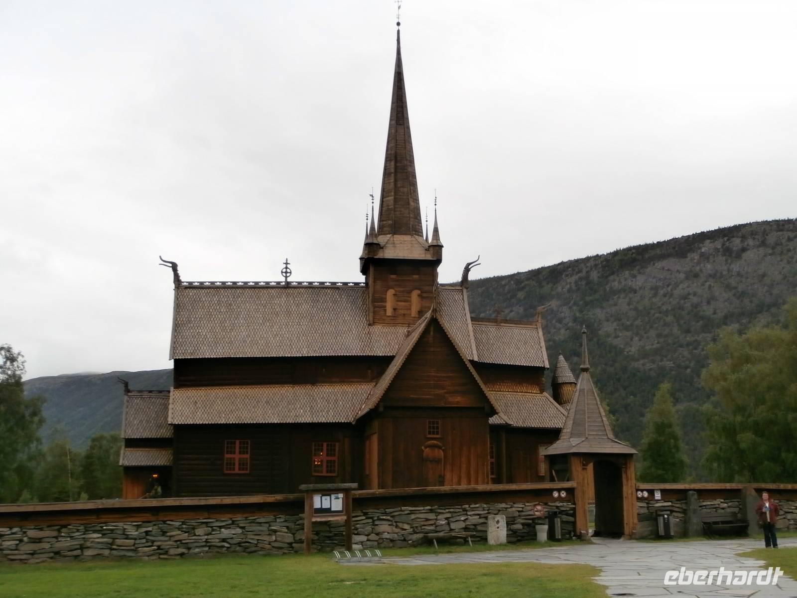 Als Erstes fahren wir von Gjovk wieder nach Hamar, um hier an der Olympiahalle Wikingship ein Foto zu schießen. Erster großer Höhepunkt unserer Reise ist heute der Besuch des Eisenbahnmuseums Norsk Jernbanemuseum in Hamar. Mit unserem fachkundigen Führer, der viele Eisenbahnstationen Deutschlands kennt, erleben wir zwei fantastische Stunden. Der schmalspurige Dampfzug, mit dem wir zu Beginn fahren wollten, war grad entgleist und so wurden wir Zeuge, wie man am Schienenstrang auch großen Schaden auslösen kann. Im Museumspark blicken wir in die Geschichte der Eisenbahn in Norwegen. Hier steht auch die Lok Dovregubben, gebaut von Krupp in Deutschland. In die Stadt der Olympiade 1994, nach Lillehammer, fahren wir im Anschluss. Wir erkunden die Schanzenanlagen und können auch noch Skispringer bei trockenem Wetter in Aktion erleben. Weiter geht es auf der E6 in Richtung Norden durch Norwegens bekanntes Tal, das Gudbrandsdal, es ist Schauplatz vieler alter Legenden, von Kunst und Kultur, hier verläuft auch der Peer Gynt Veggen. In Otta verlassen wir die nordwärts führende E6 und richten unseren Blick gen West, in Lom legen wir einen Fotostopp an der fantastischen Stabkirche ein. Über Dönfoss und das Grotligebirge erreichen wir am Abend Geiranger und heute nächtigen wir vor der Kulisse des Geirangerfjordes inmitten dieser beeindruckenden Bergwelt.