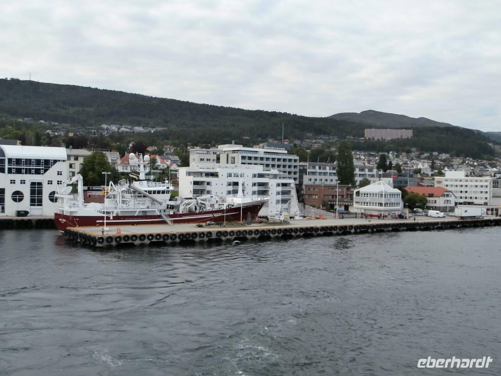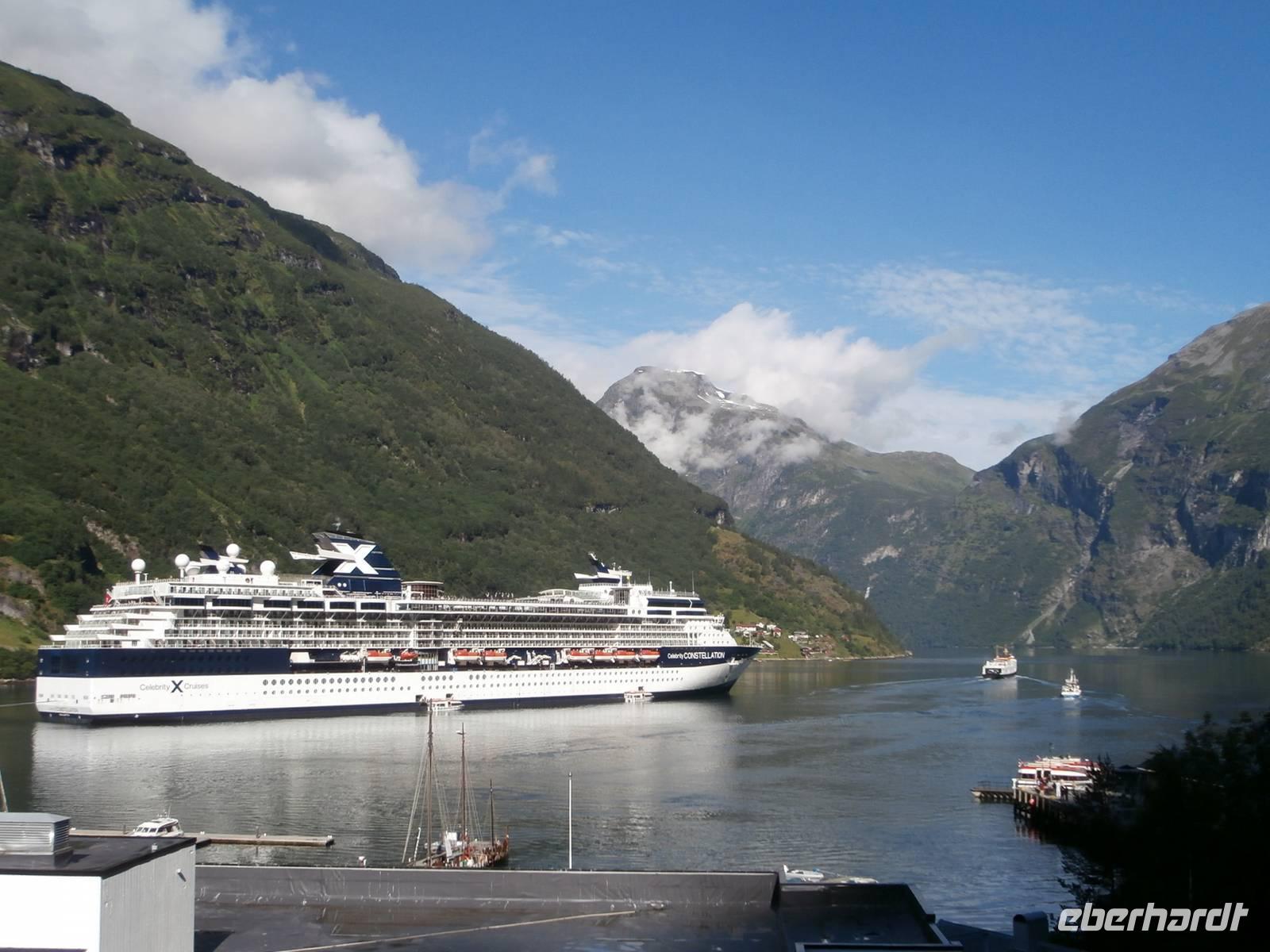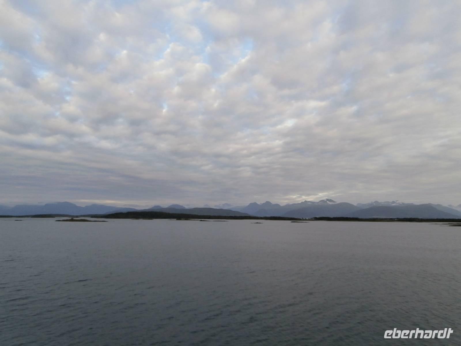 Nach einer etwas unruhigen Nacht mit bewegter See und Geräuschen aus dem Motorraum treffen wir uns zum ausgiebigen Frühstück an Bord. Nun haben wir bis zum Nachmittag Zeit zum Relaxen, genießen die Atmosphäre an Bord und lassen die beeindruckenden Küsten und das weite, offene Meer an uns vorüber ziehen. Die Sonne hat sich verkrochen, es regnet und ein kalter Wind weht uns um die Nase. Vom Bus mit Frank, unserem Buschauffeur, werden wir noch vor 15 Uhr in Bergen erwartet und auch die örtl. Reiseleitung, Frau Gudrun, steht für die Stadtbesichtigung bereit. Bergen, gelegen auf mehreren Inseln und gerahmt von 7 Bergen, glänzt mit Regen, was ja so typisch für diese Stadt ist. Im Hafen haben mehrere Kreuzfahrtschiffe angelegt und bieten uns ein schönes Bild bei der Einfahrt. Nach der Rundfahrt und Führung im Hanseatischen Viertel gehen die Gäste noch kurz auf den Fischmarkt. Für eine Entdeckungstour durch die Stadt bleibt uns wenig Zeit und auch der Regen macht nicht unbedingt Lust, aber viele Sehenswürdigkeiten dieser Hafenstadt sind bequem zu Fuß erreichbar. Zum Fløyen fahren wir nach dem Abendessen hinauf, er hüllt sich noch nicht in Wolken und bietet somit auch bei Regen einen schönen Blick hinunter auf die Stadt und in die Schärenwelt.