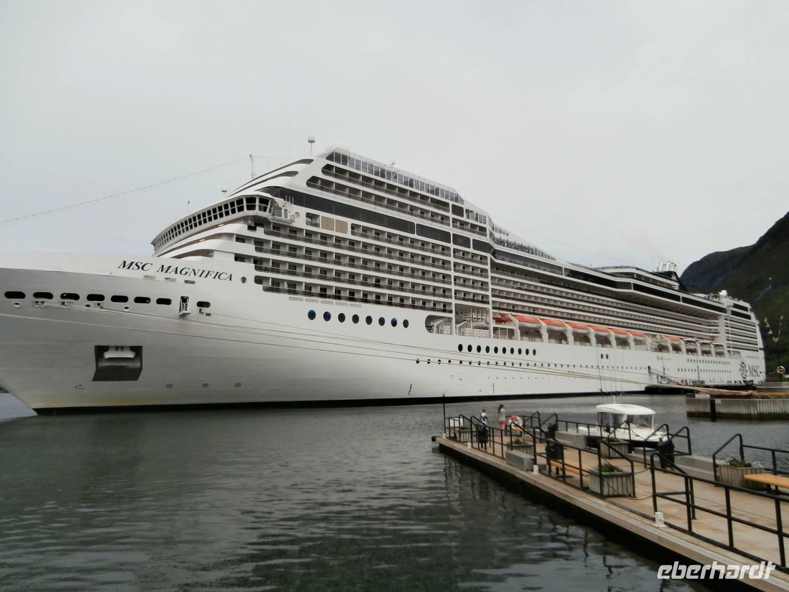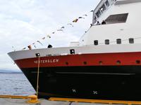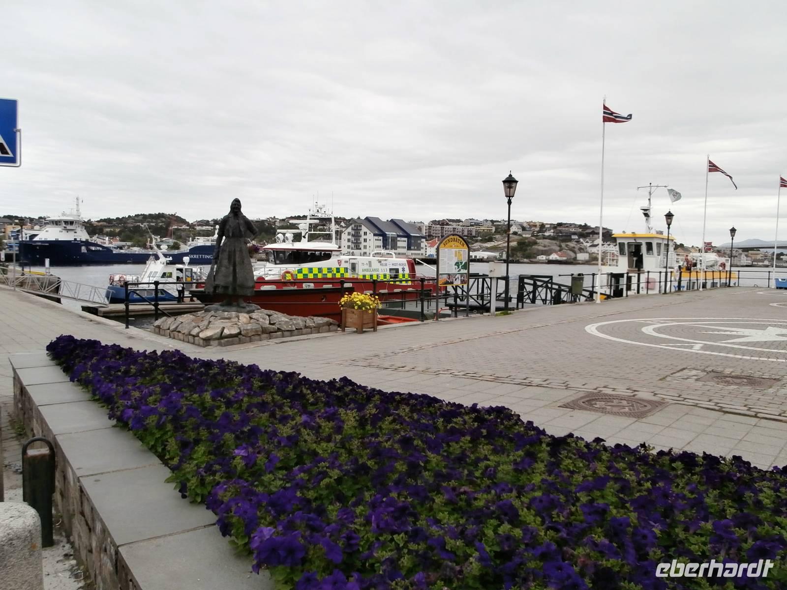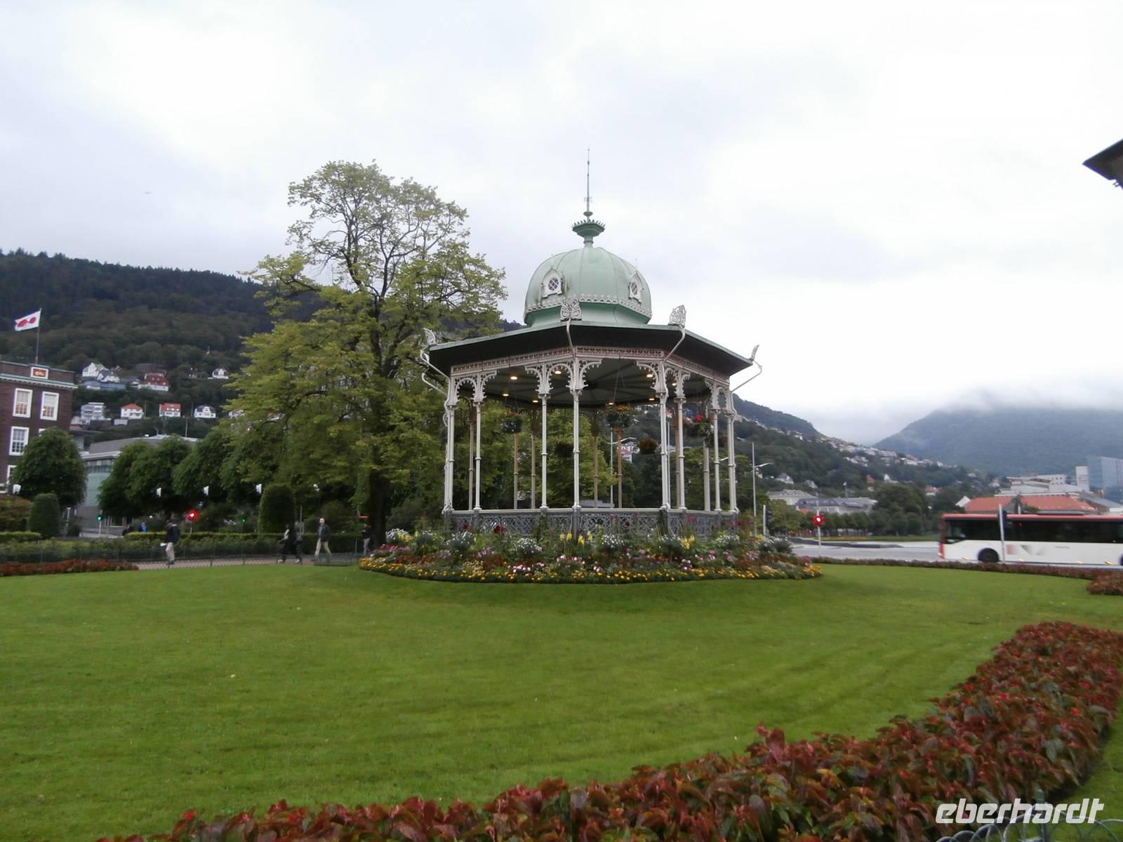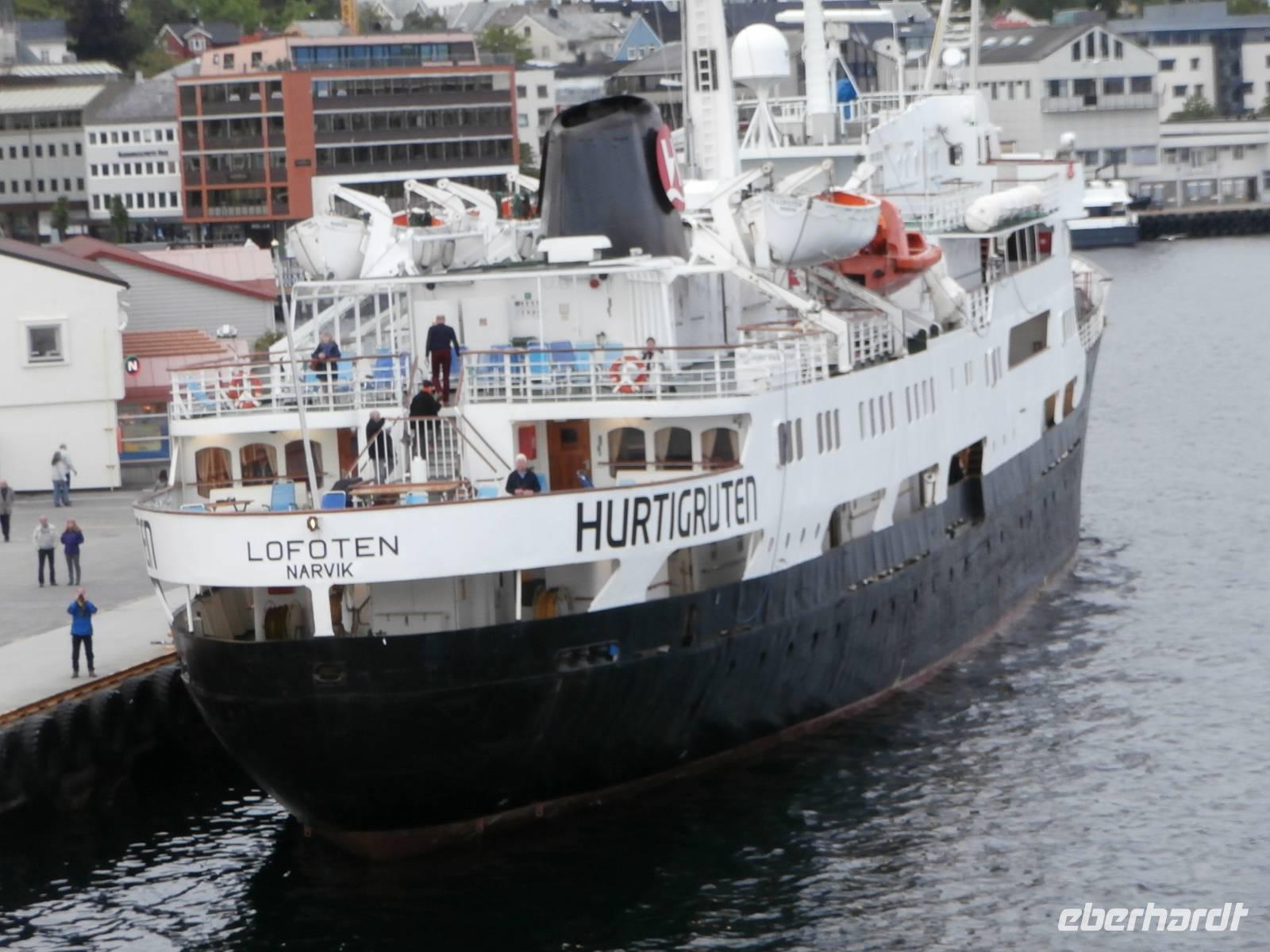Nach einer etwas unruhigen Nacht mit bewegter See und Geräuschen aus dem Motorraum treffen wir uns zum ausgiebigen Frühstück an Bord. Nun haben wir bis zum Nachmittag Zeit zum Relaxen, genießen die Atmosphäre an Bord und lassen die beeindruckenden Küsten und das weite, offene Meer an uns vorüber ziehen. Die Sonne hat sich verkrochen, es regnet und ein kalter Wind weht uns um die Nase. Vom Bus mit Frank, unserem Buschauffeur, werden wir noch vor 15 Uhr in Bergen erwartet und auch die örtl. Reiseleitung, Frau Gudrun, steht für die Stadtbesichtigung bereit. Bergen, gelegen auf mehreren Inseln und gerahmt von 7 Bergen, glänzt mit Regen, was ja so typisch für diese Stadt ist. Im Hafen haben mehrere Kreuzfahrtschiffe angelegt und bieten uns ein schönes Bild bei der Einfahrt. Nach der Rundfahrt und Führung im Hanseatischen Viertel gehen die Gäste noch kurz auf den Fischmarkt. Für eine Entdeckungstour durch die Stadt bleibt uns wenig Zeit und auch der Regen macht nicht unbedingt Lust, aber viele Sehenswürdigkeiten dieser Hafenstadt sind bequem zu Fuß erreichbar. Zum Fløyen fahren wir nach dem Abendessen hinauf, er hüllt sich noch nicht in Wolken und bietet somit auch bei Regen einen schönen Blick hinunter auf die Stadt und in die Schärenwelt.